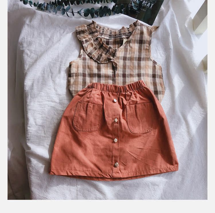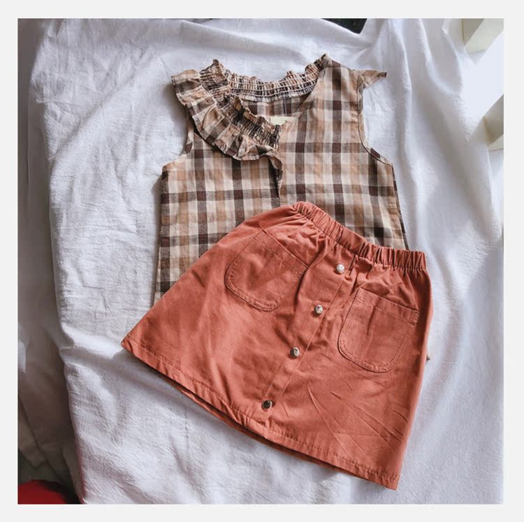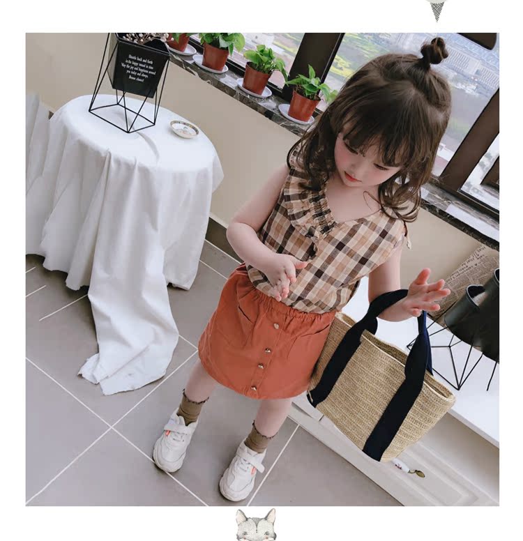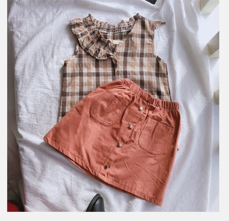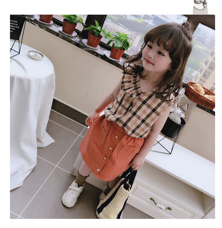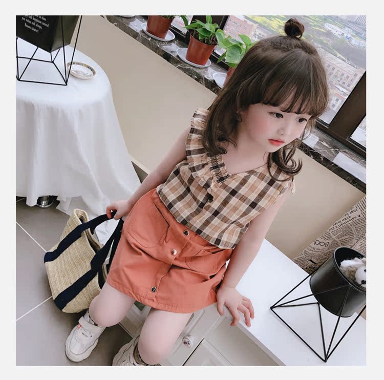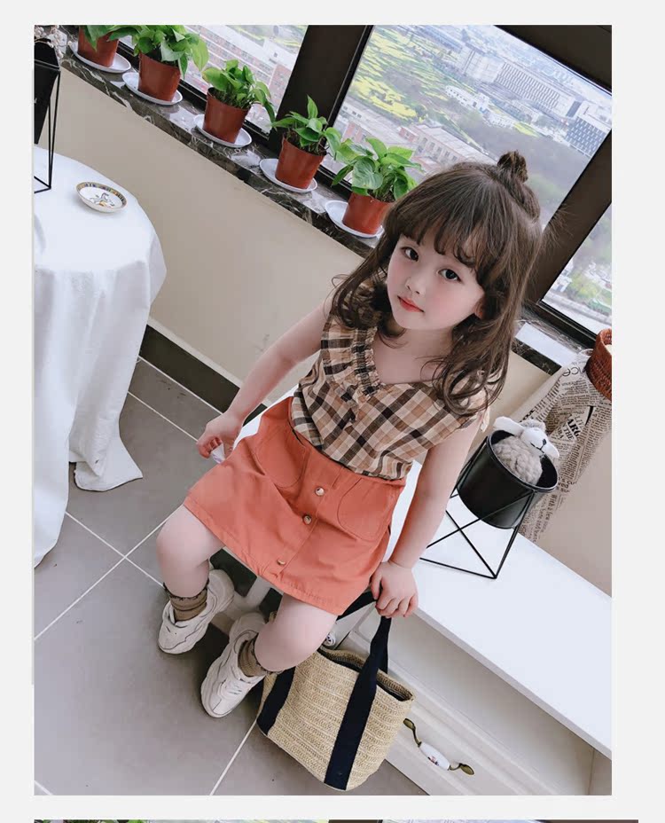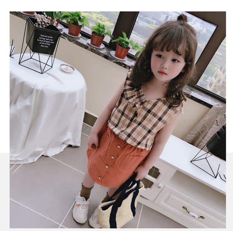 2019春夏裝童裝女童套裝格子中小童無袖背心加半身裙兩件套 潮1入
