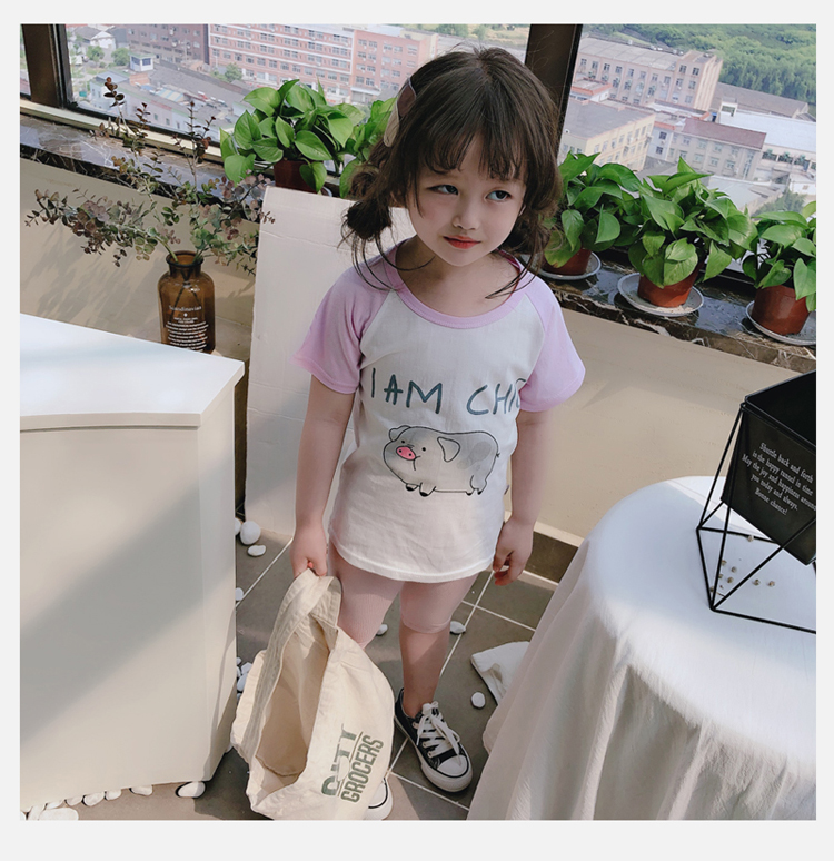 2019童裝夏季 女童寶寶短袖T恤 中小童圓領兒童套頭打底衫上衣1入
