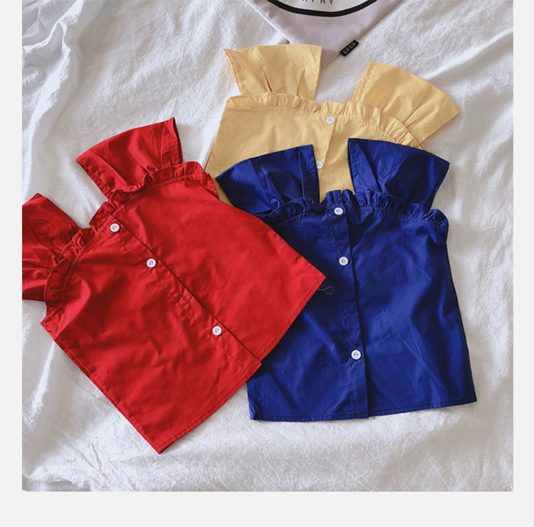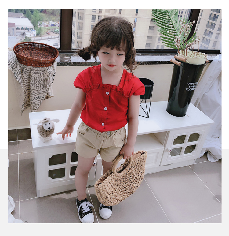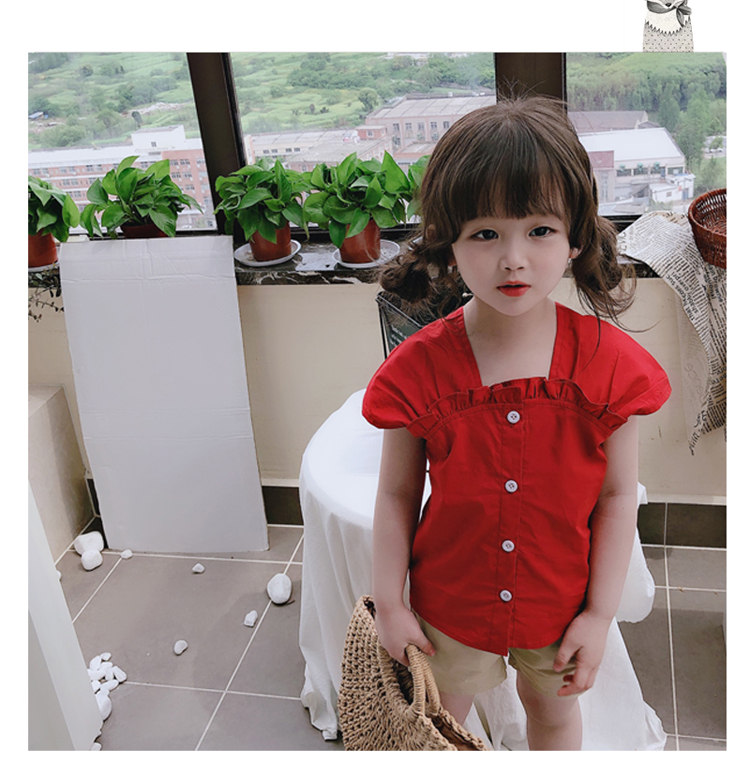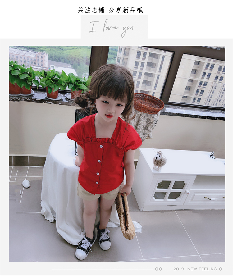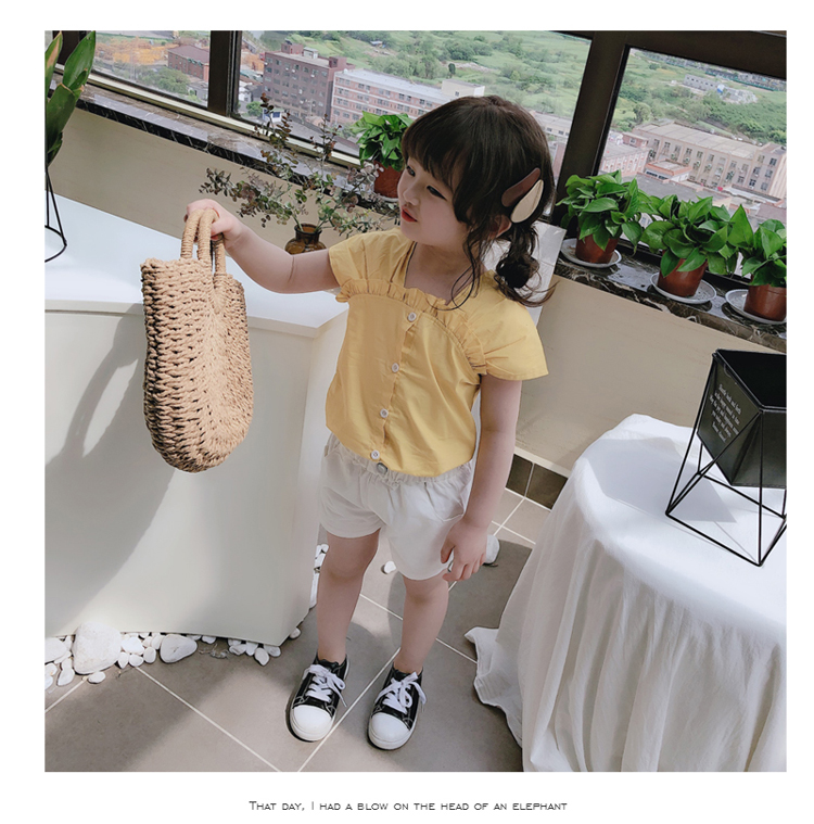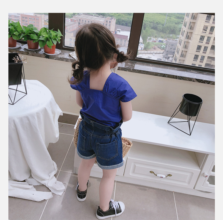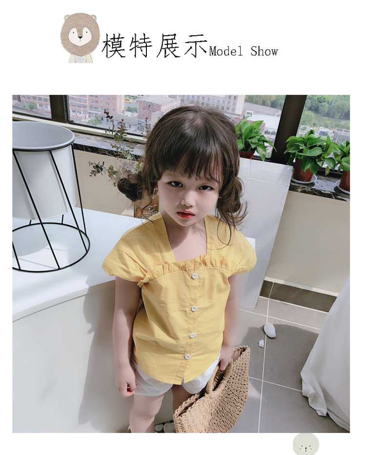 2019夏裝新款 兒童氣質休閑兒童上衣 女童洋氣t恤純色短袖娃娃衫1入