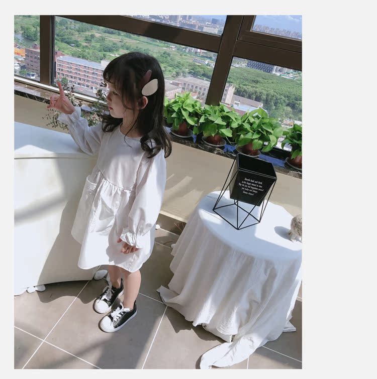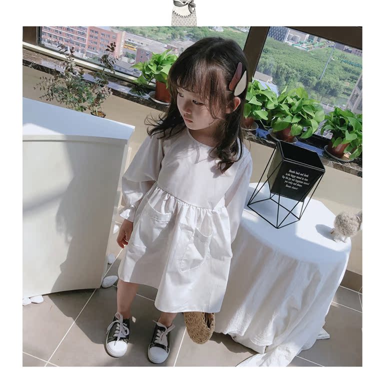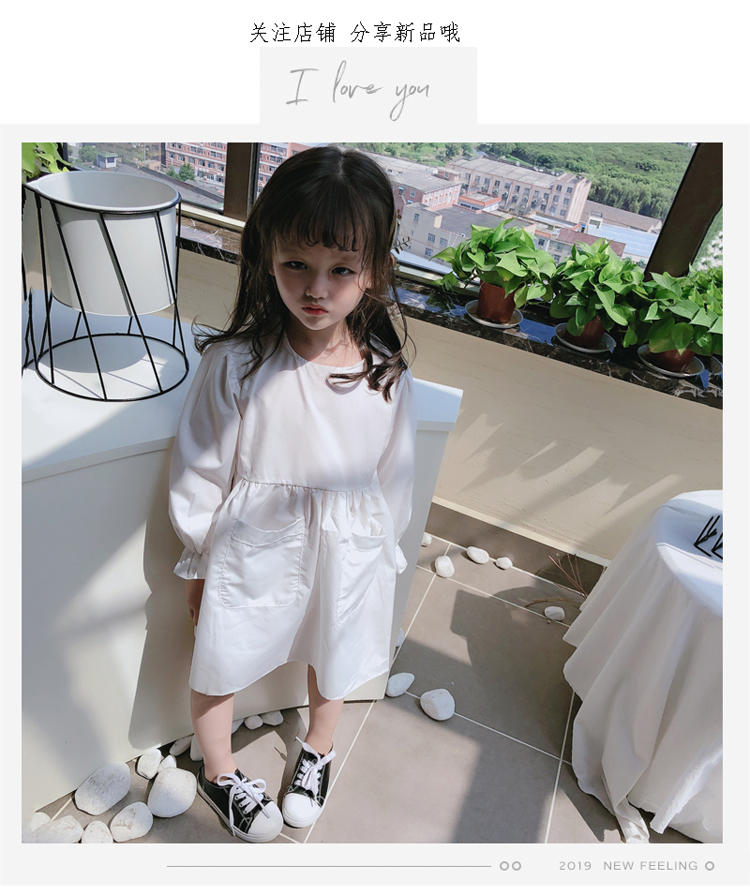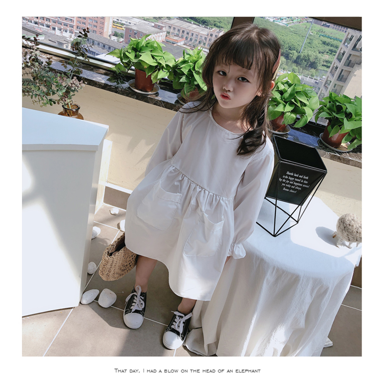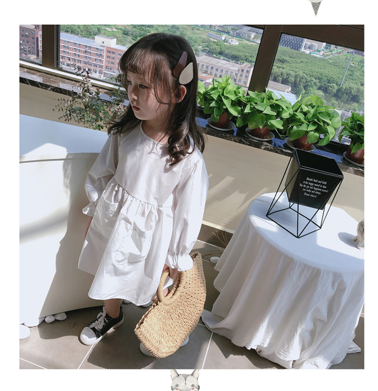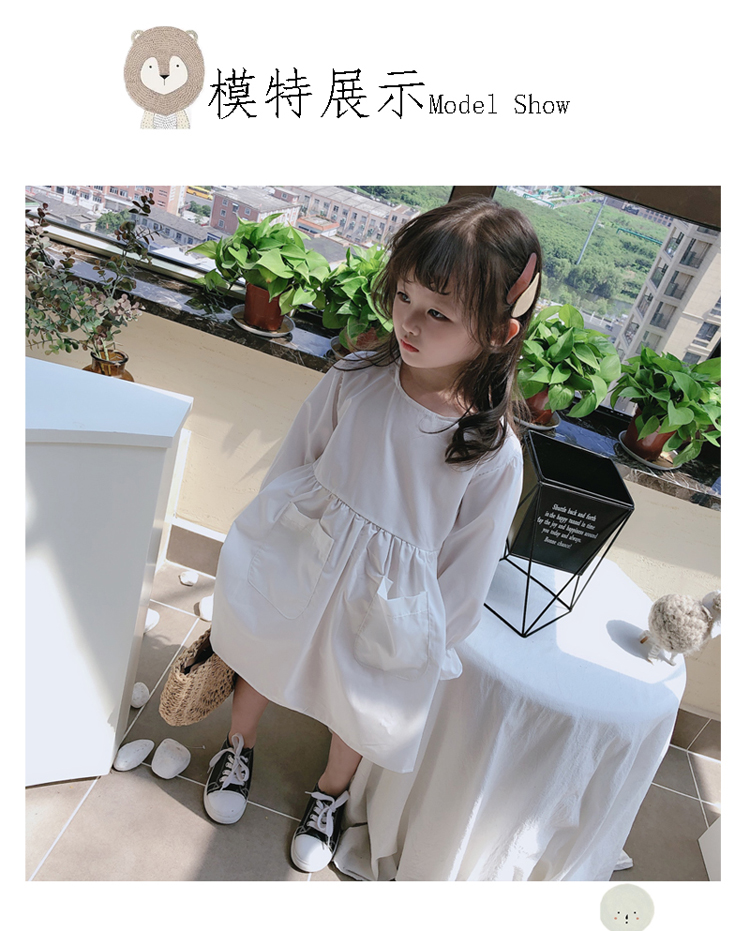 2019春秋季新款 女童可愛甜美純色連衣裙 兒童小清新長袖裙子1入