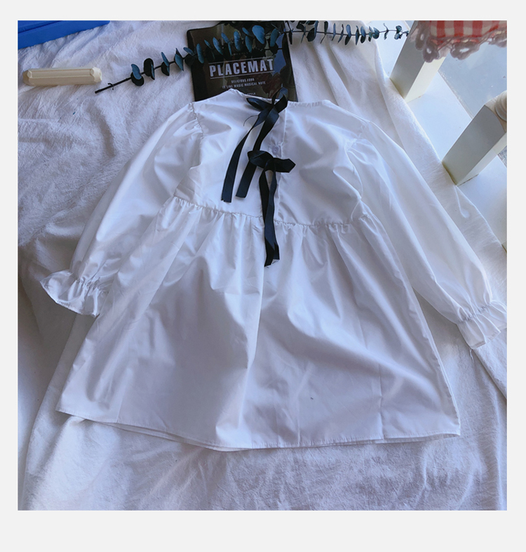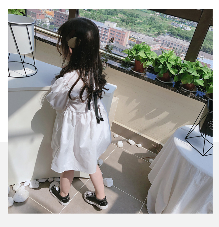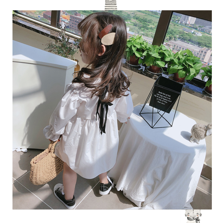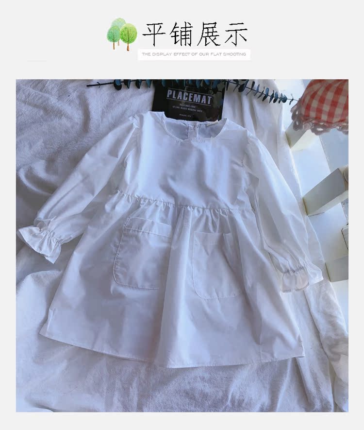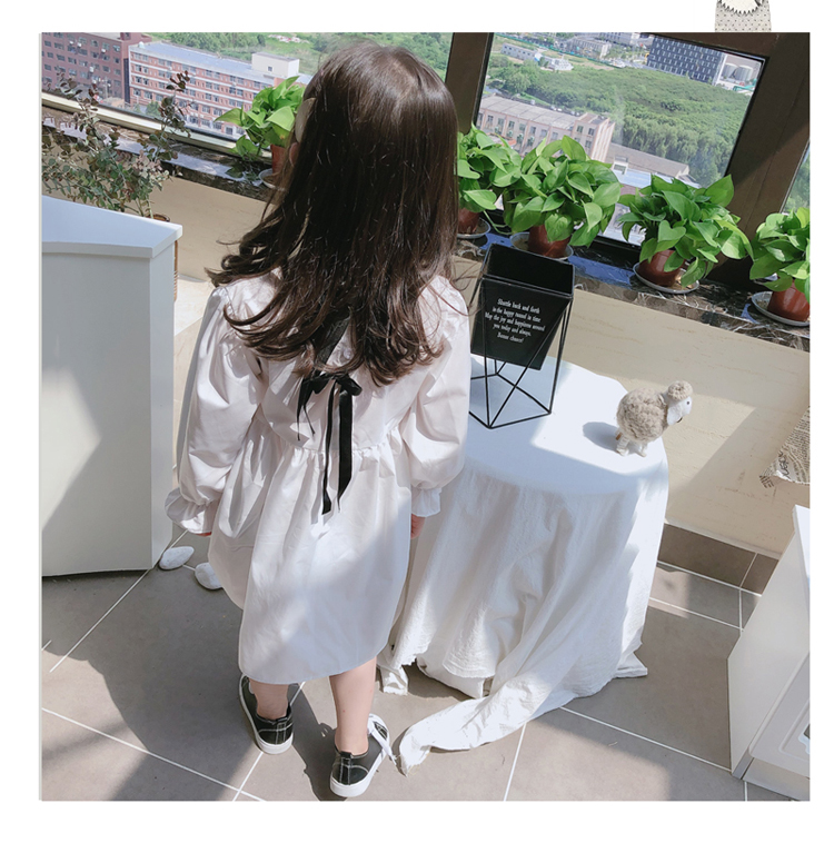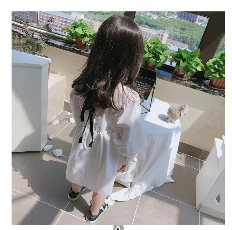 2019春秋季新款 女童可愛甜美純色連衣裙 兒童小清新長袖裙子1入