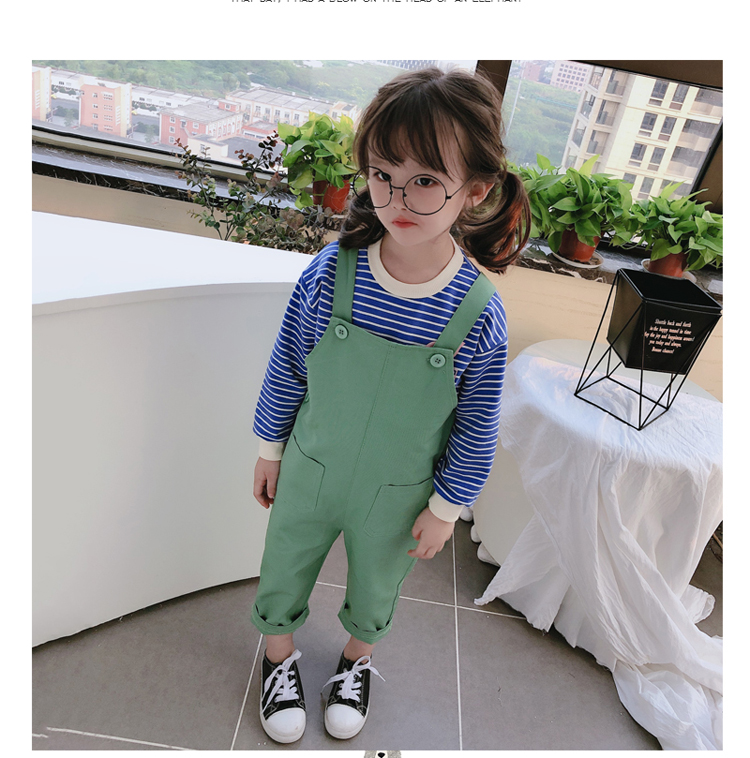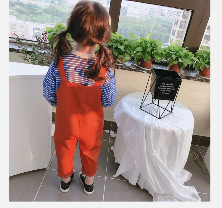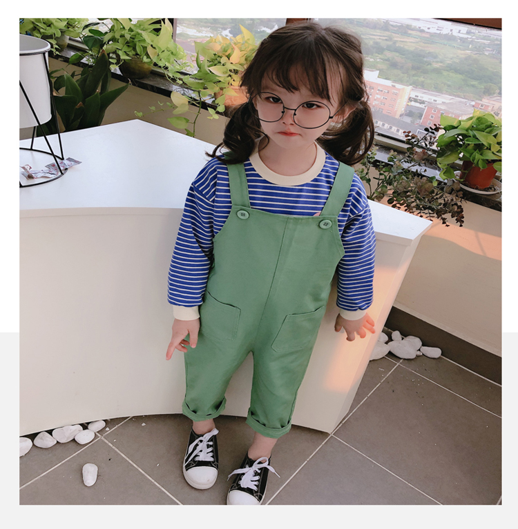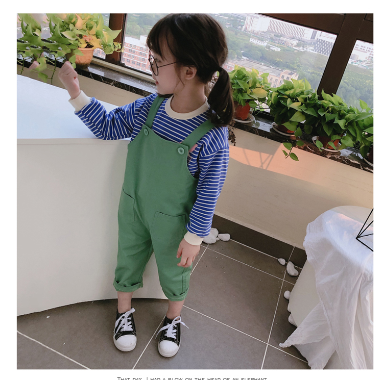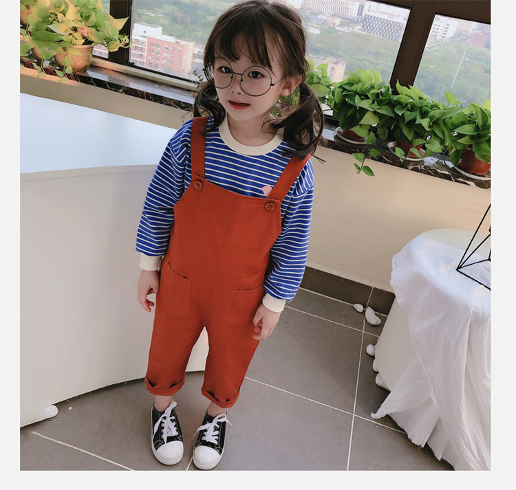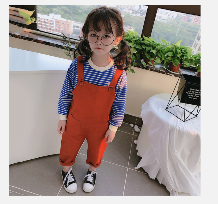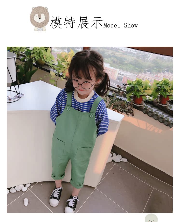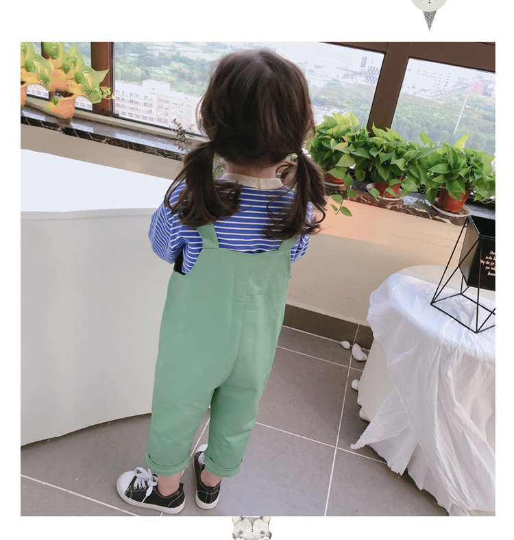 2019春秋季新款 兒童氣質舒適純色褲子 女童可愛簡約小口袋背帶褲1入