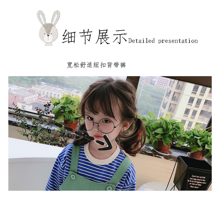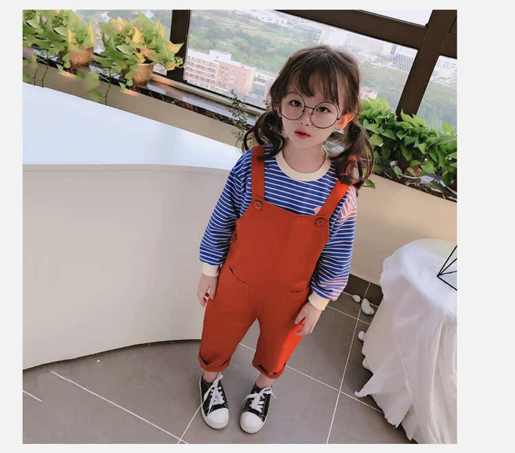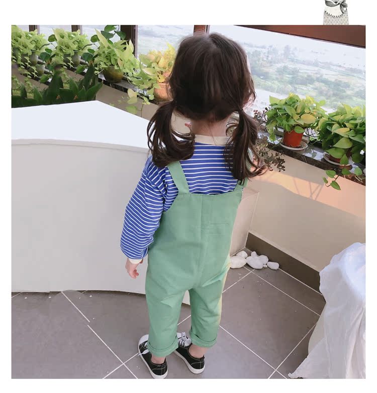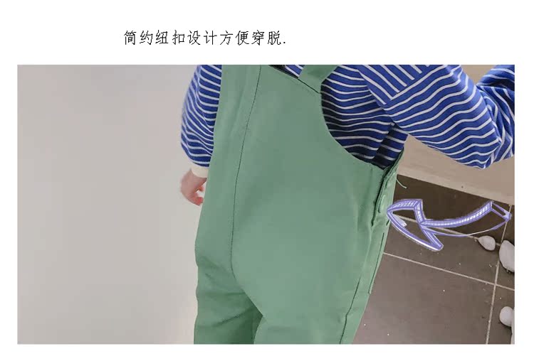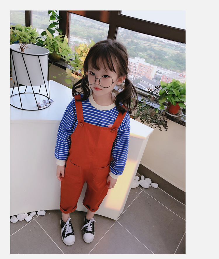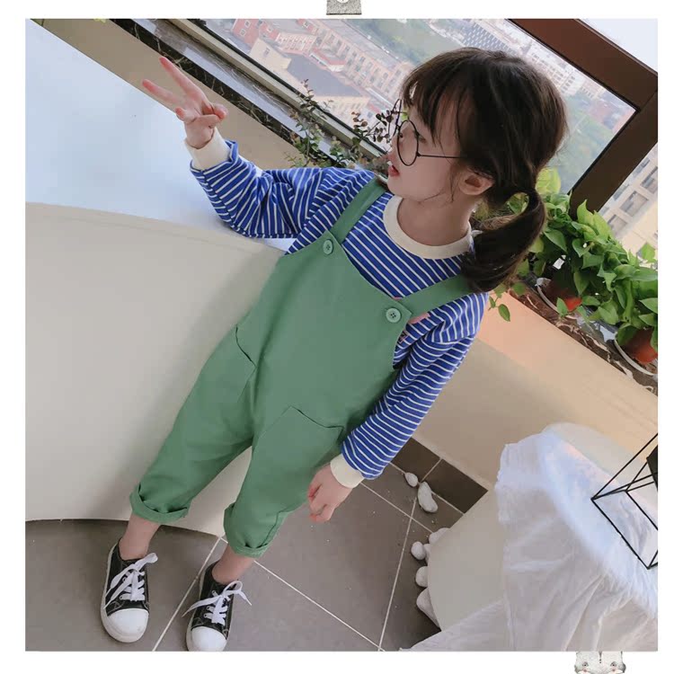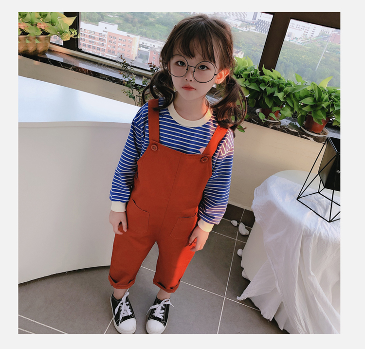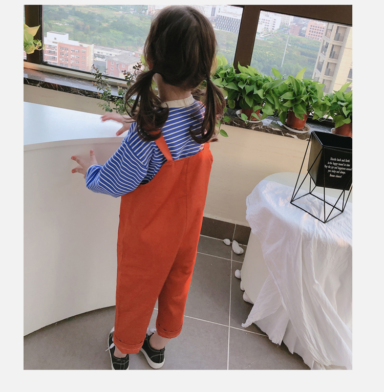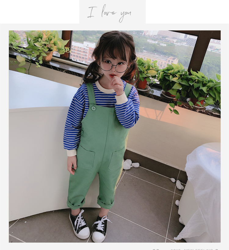 2019春秋季新款 兒童氣質舒適純色褲子 女童可愛簡約小口袋背帶褲1入