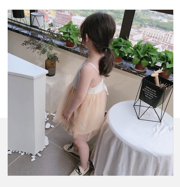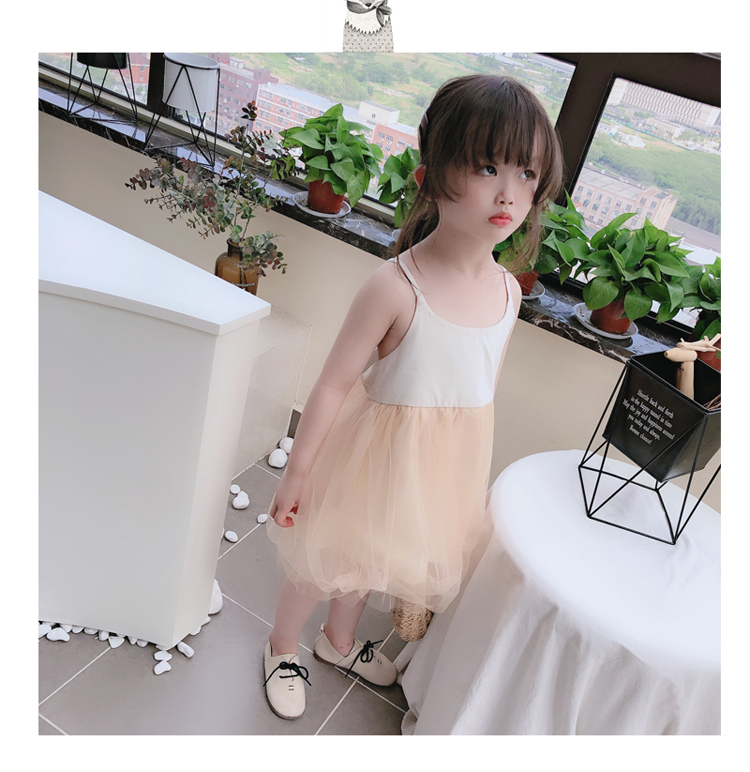2019夏季新款 中小童氣質網紗拼接連衣裙 女童寶寶舒適系繩吊帶裙1入