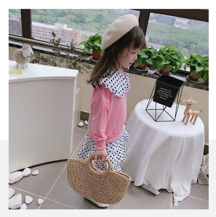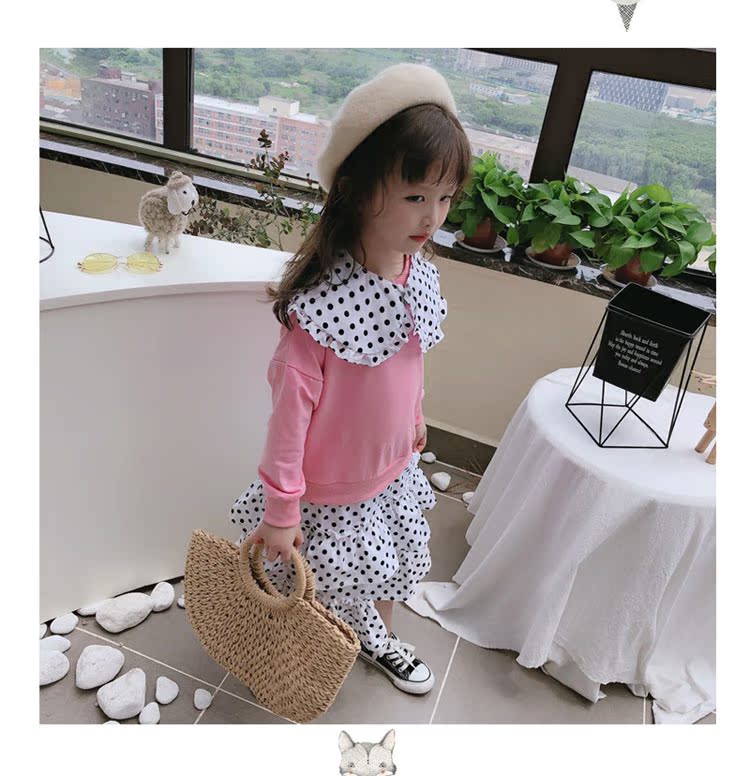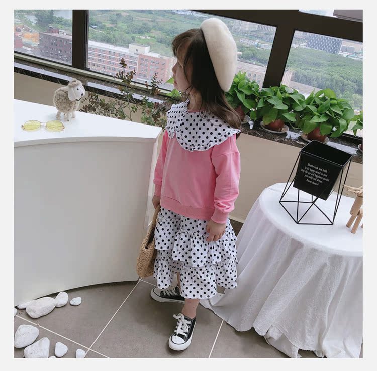 2019春秋季新款 女童洋氣翻領拼接蛋糕裙 中小童可愛甜美連衣裙1入