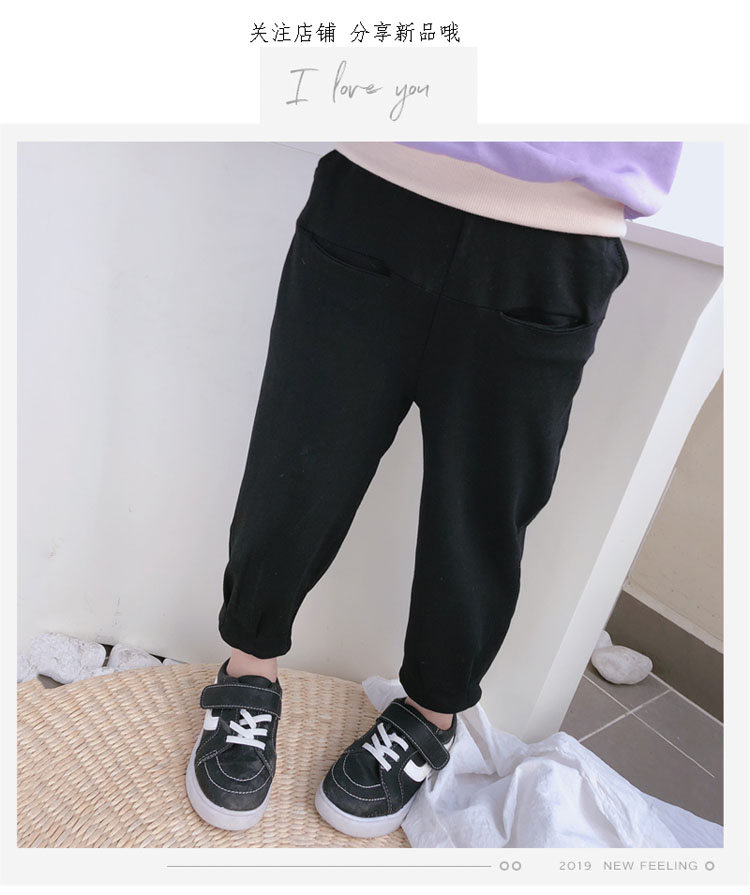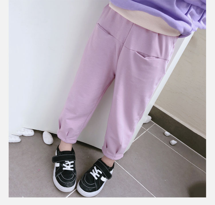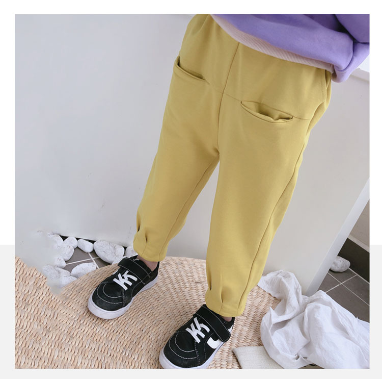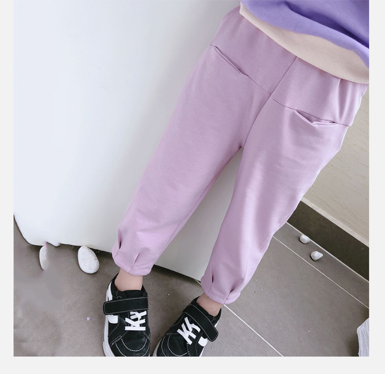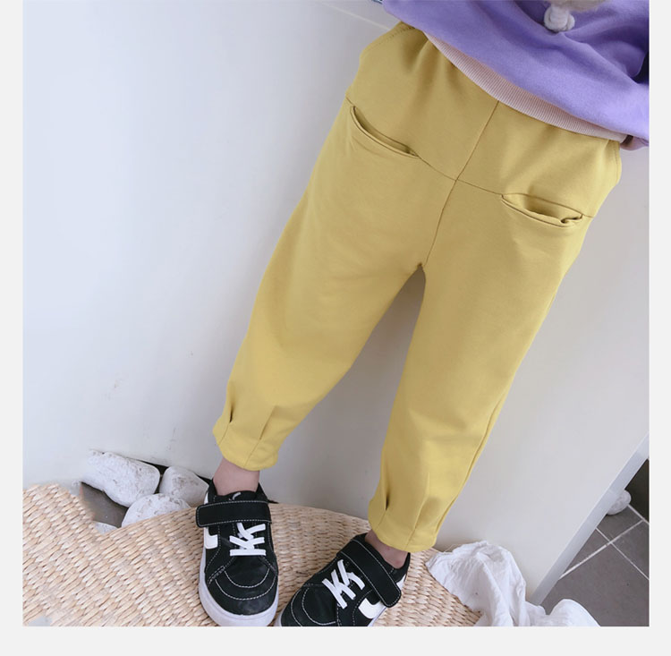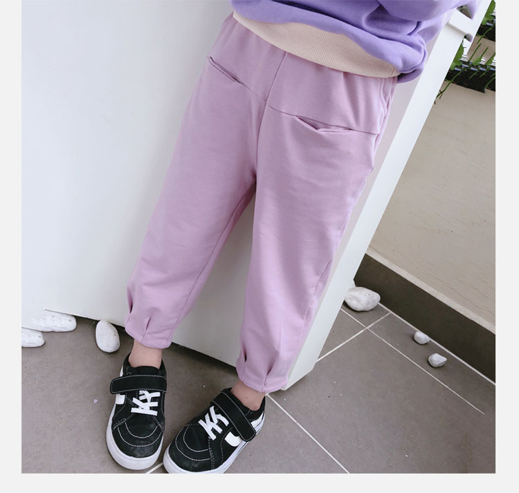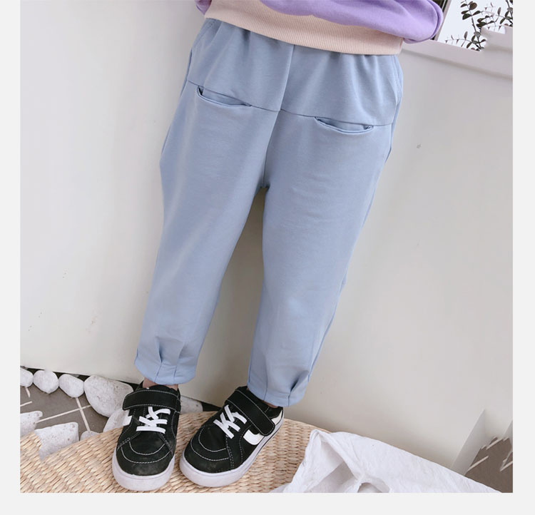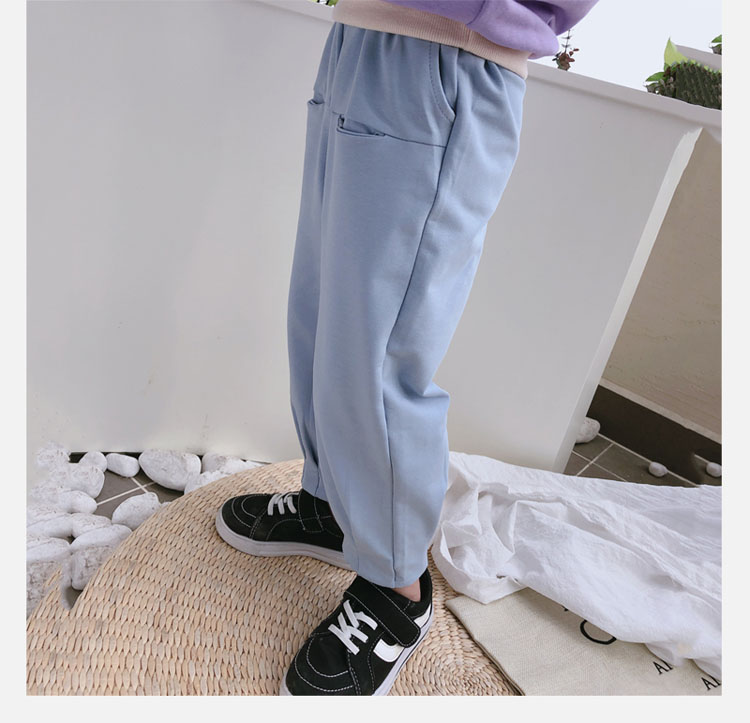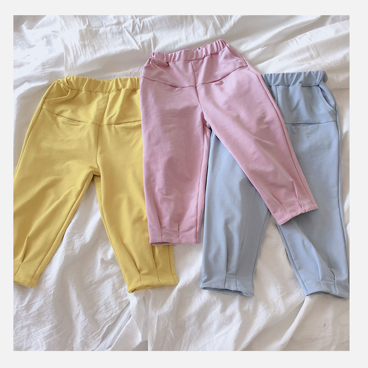 2019秋季新款 中小童氣質長褲 男女童可愛糖果色寬松褲腿休閑褲1入