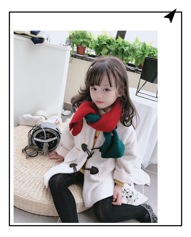 2019冬季新款 中小童氣質舒適翻領上衣 女童加厚純色中長款外套1入