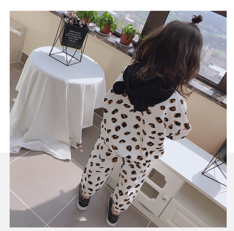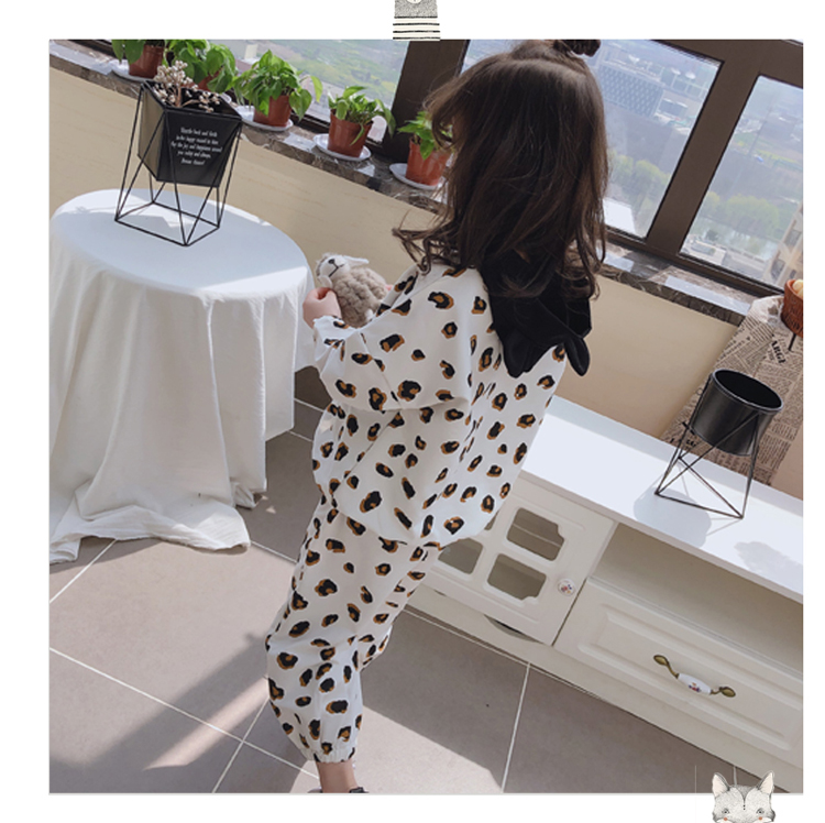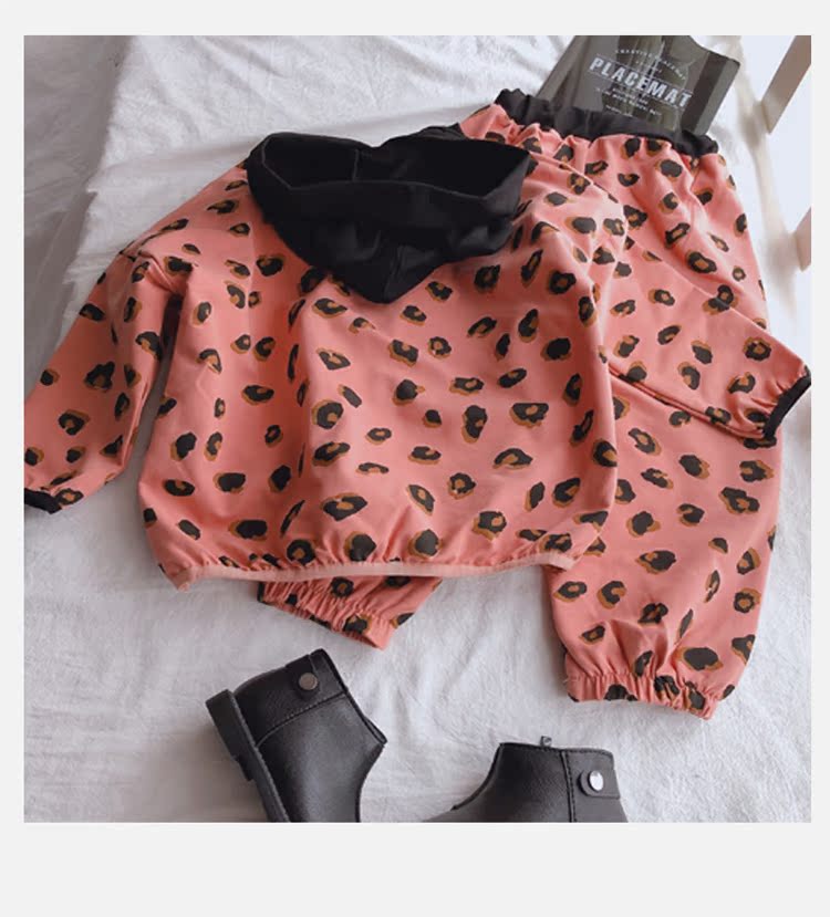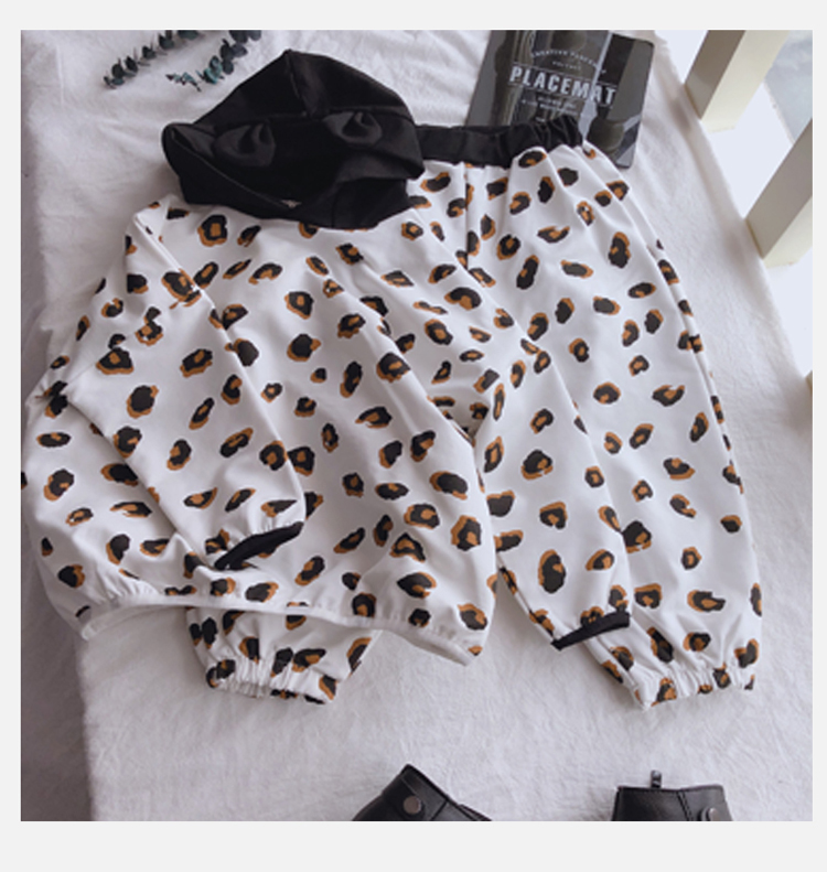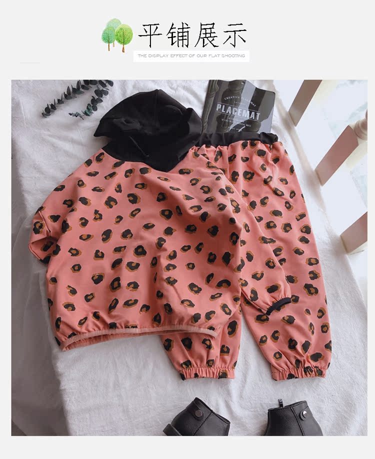 2019春季新款 兒童洋氣豹紋連帽套裝 男女童寶寶帥氣個性兩件套1入
