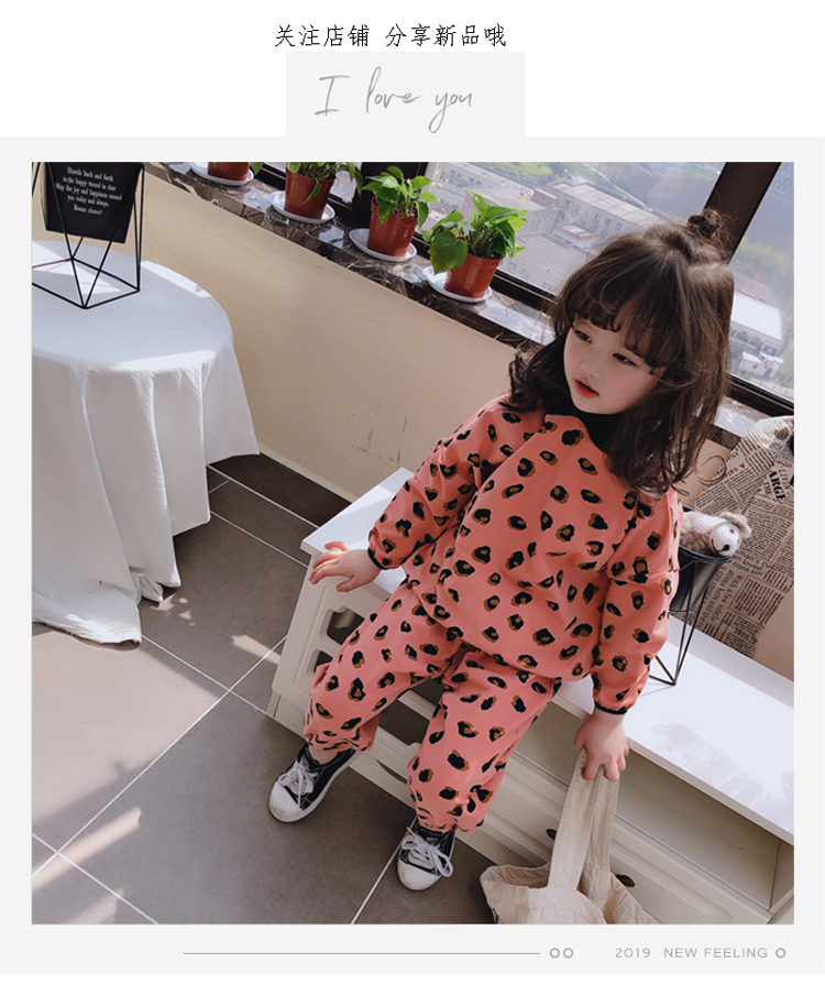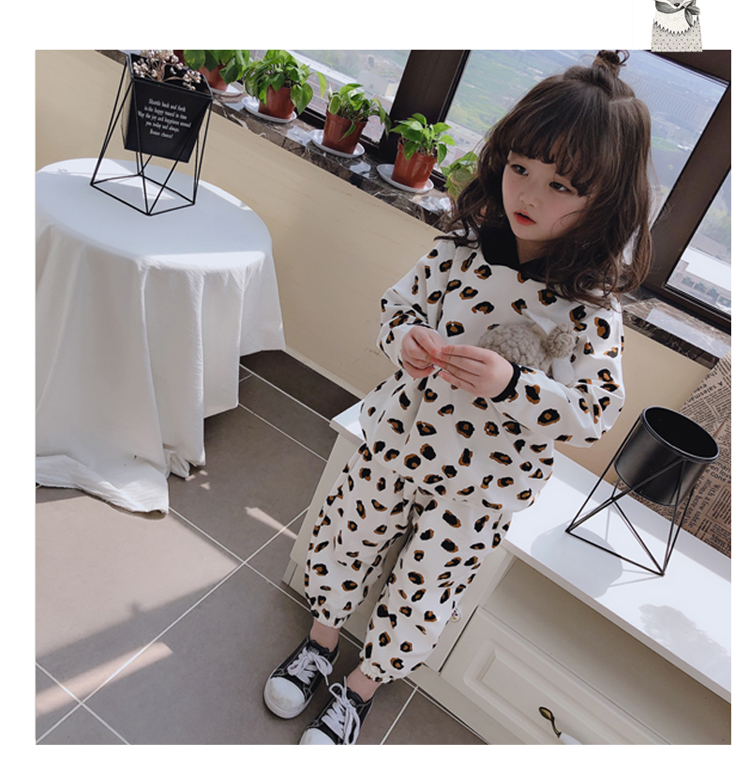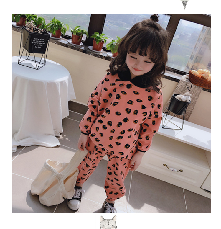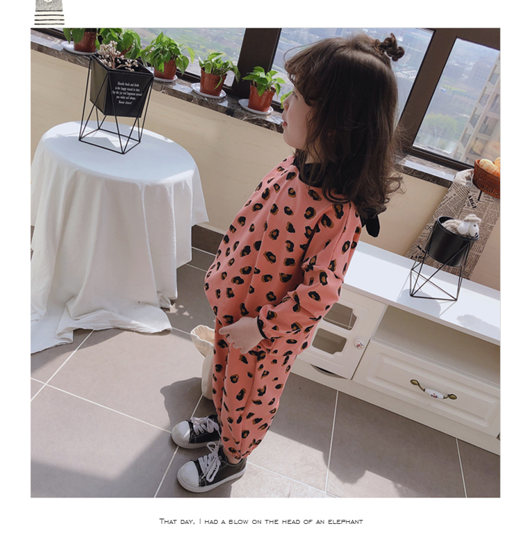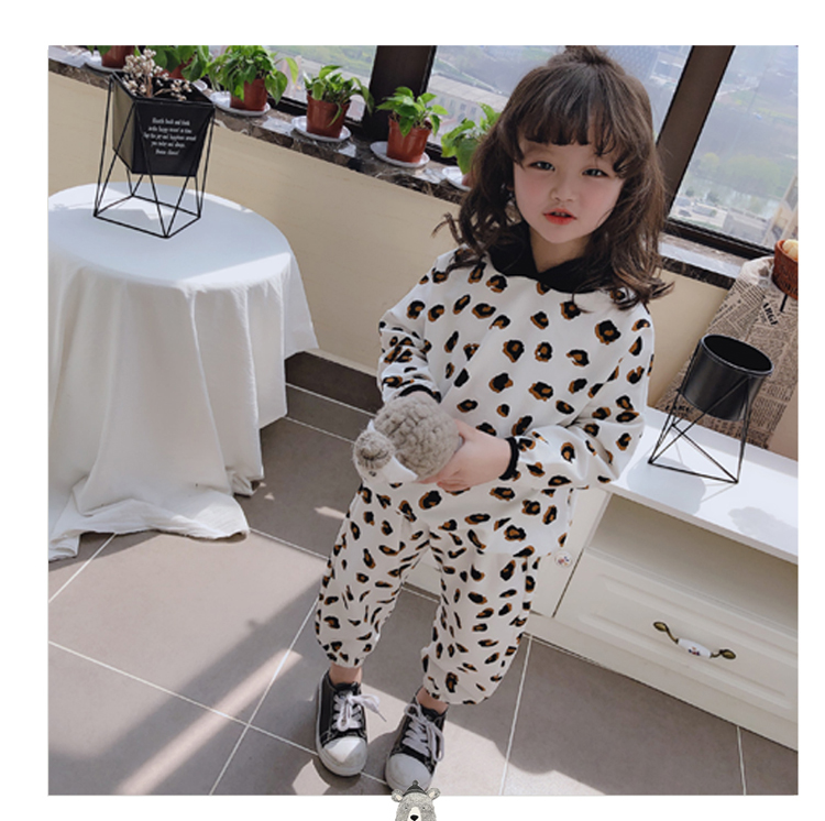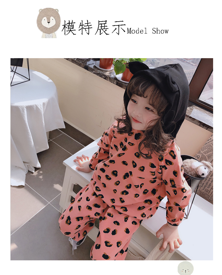 2019春季新款 兒童洋氣豹紋連帽套裝 男女童寶寶帥氣個性兩件套1入