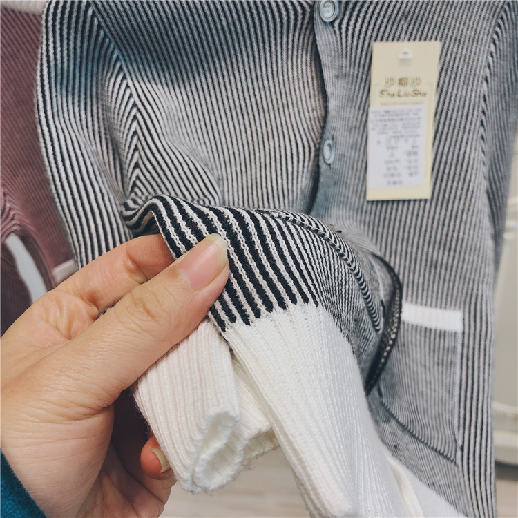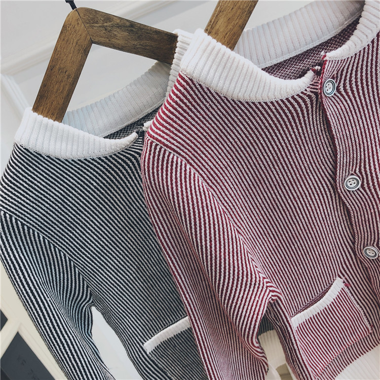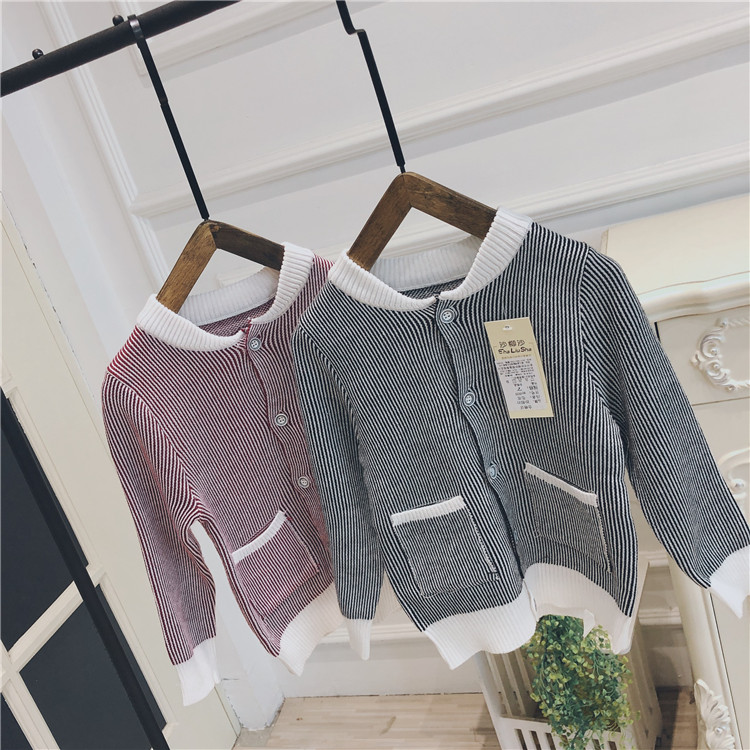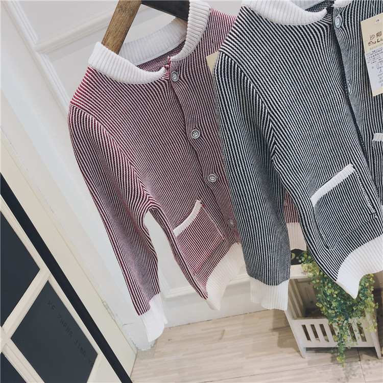 2018中小童春秋裝新款兒童條紋小清新氣質上衣 女寶寶毛衣線衫1入