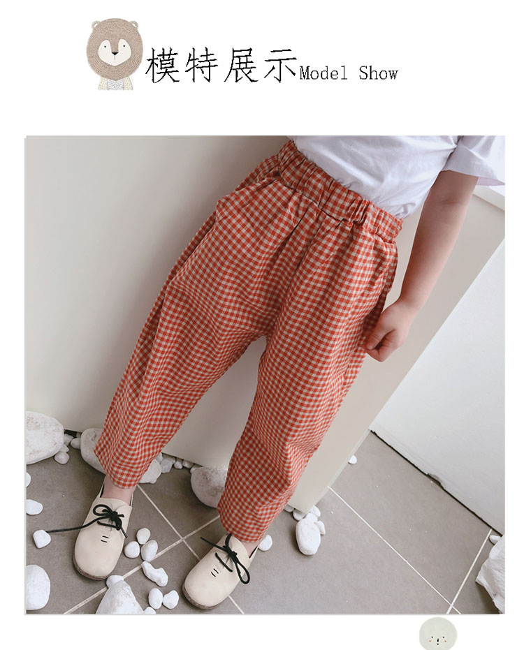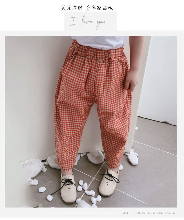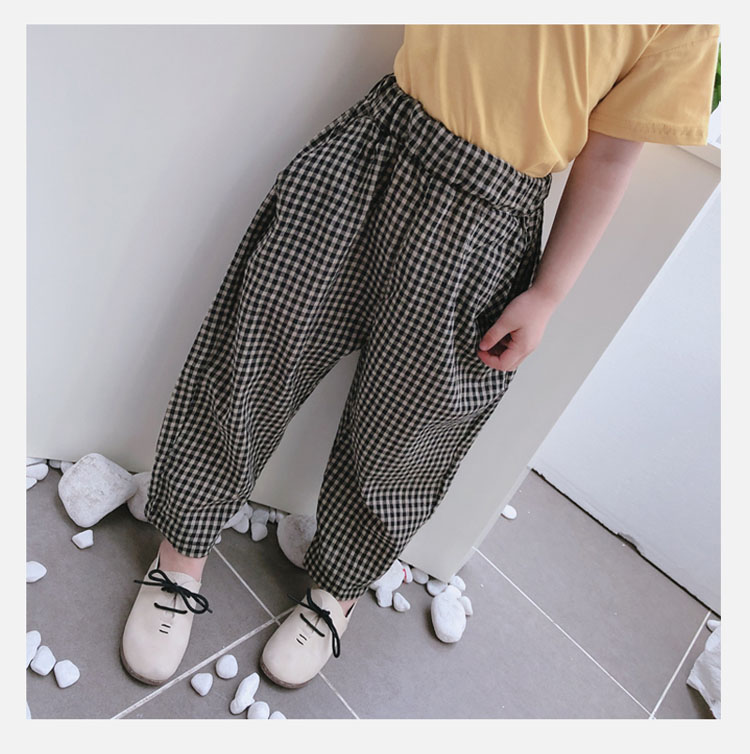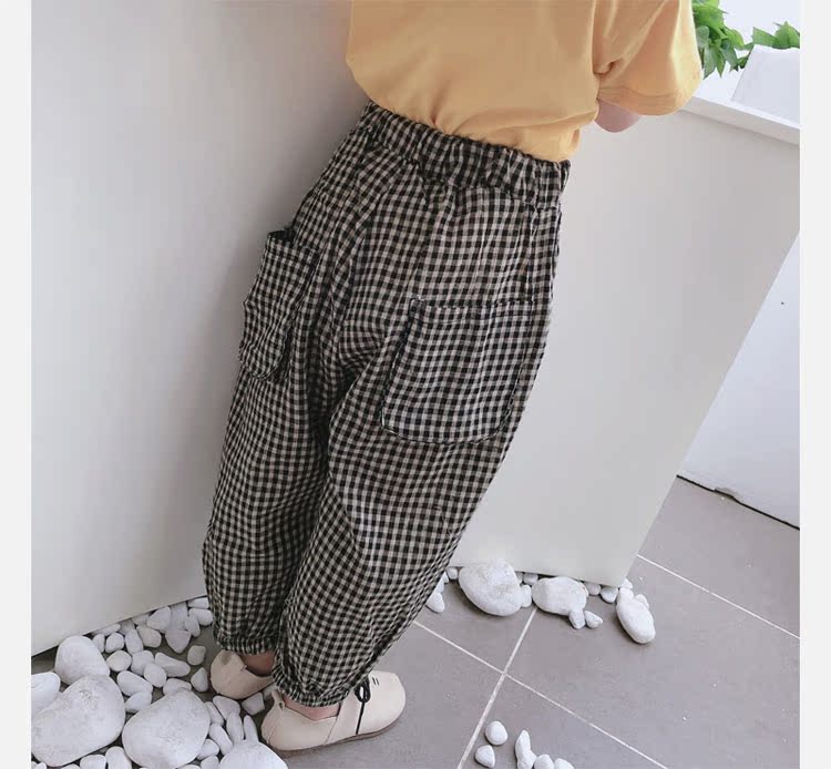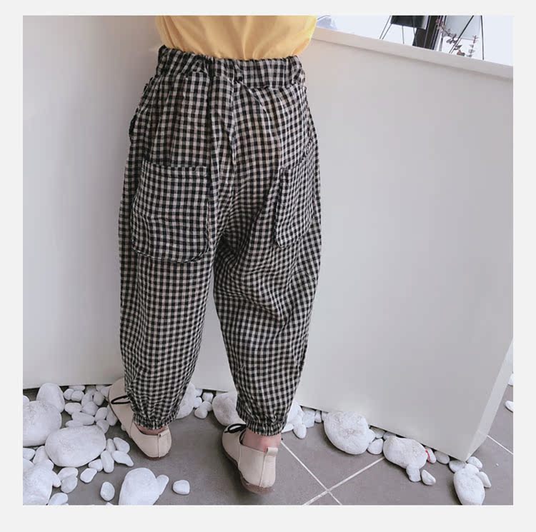 2019男女童夏季新款個性洋氣燈籠褲 中小童寬松舒適格子休閑褲潮1入