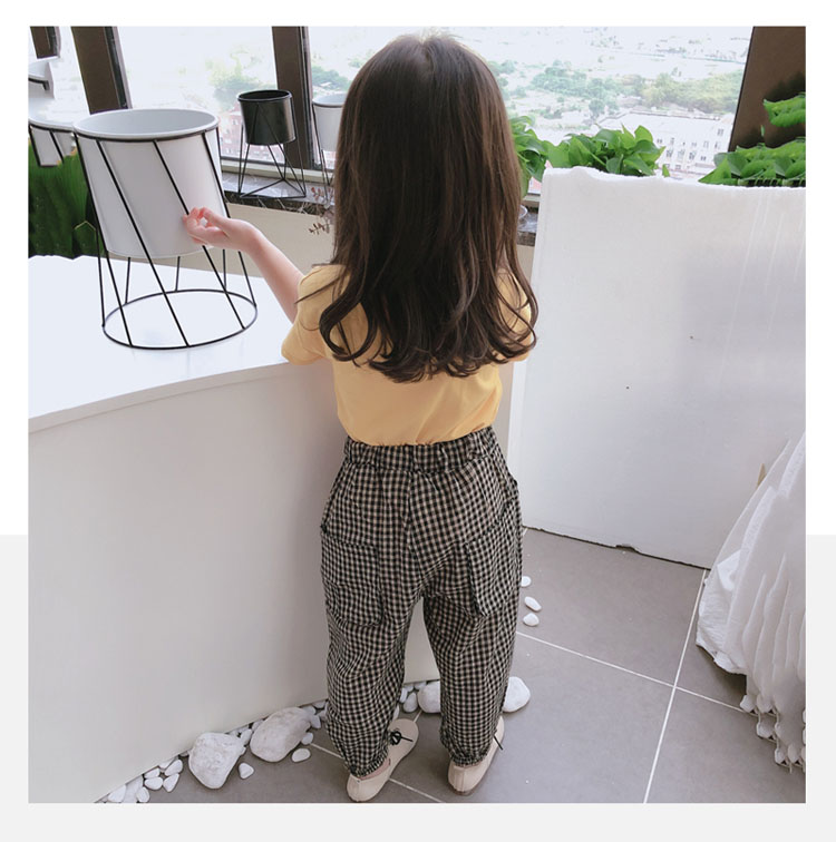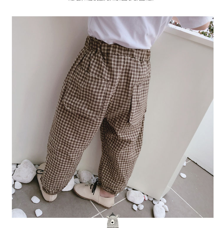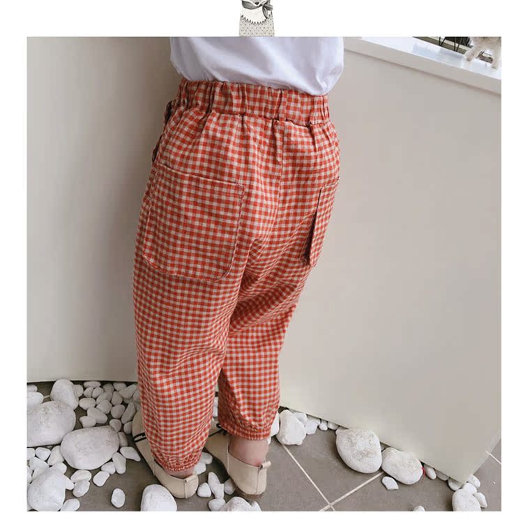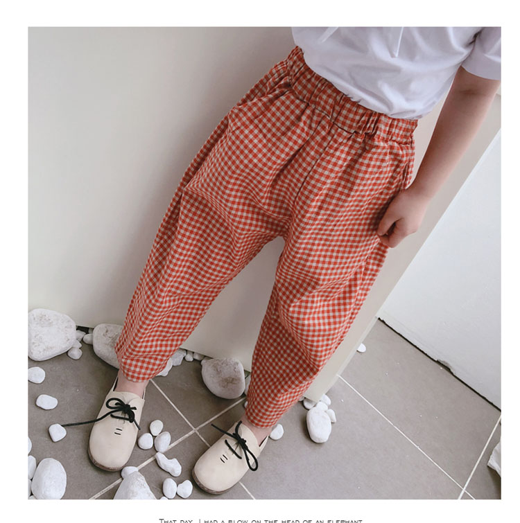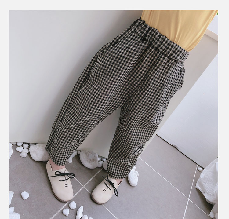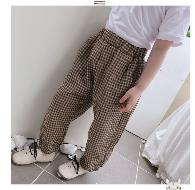2019男女童夏季新款個性洋氣燈籠褲 中小童寬松舒適格子休閑褲潮1入