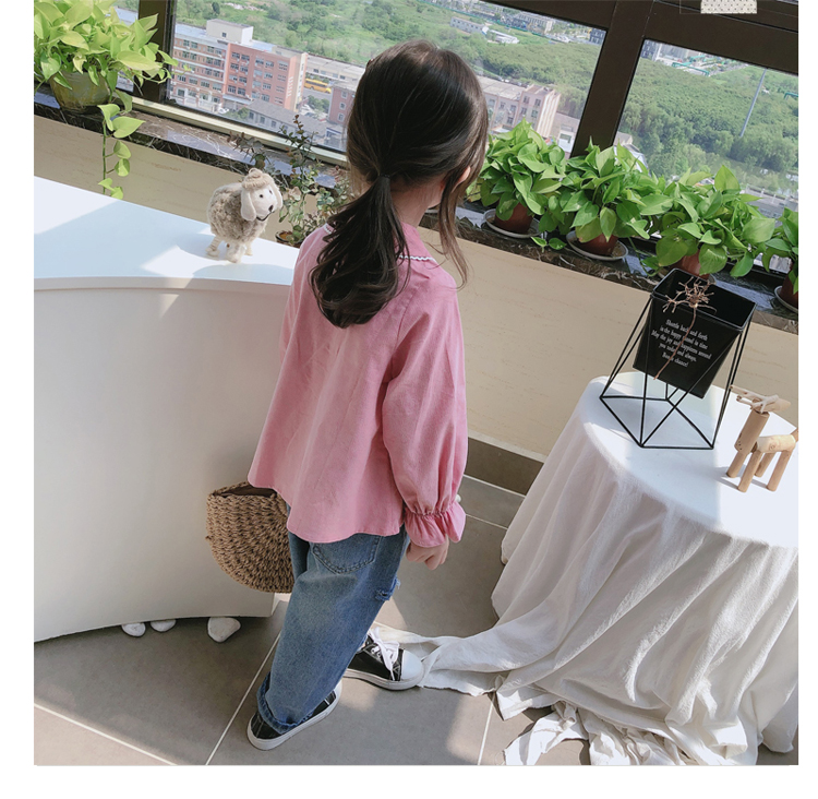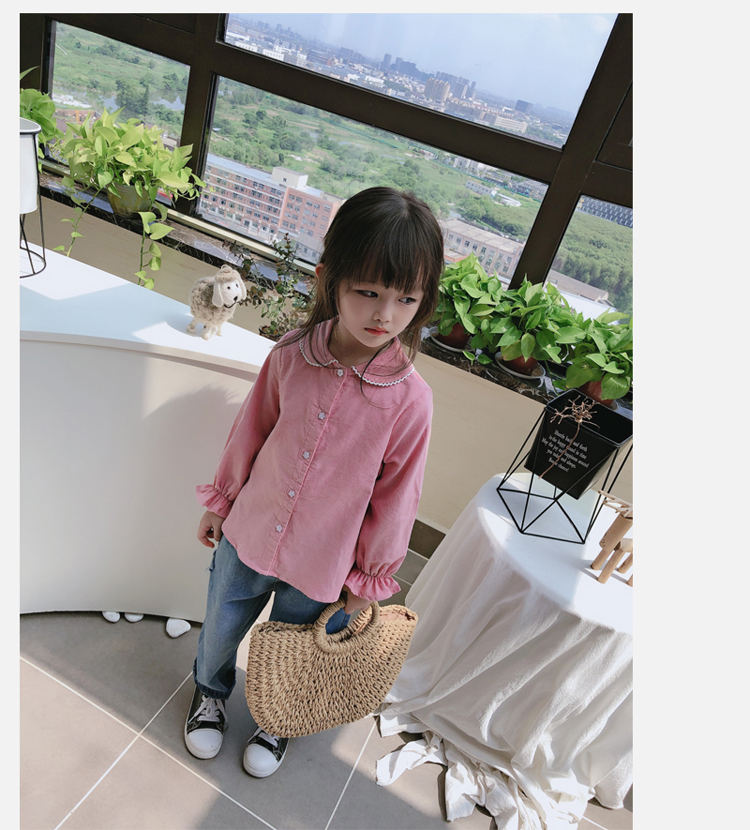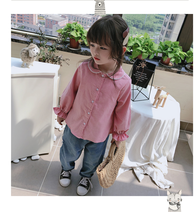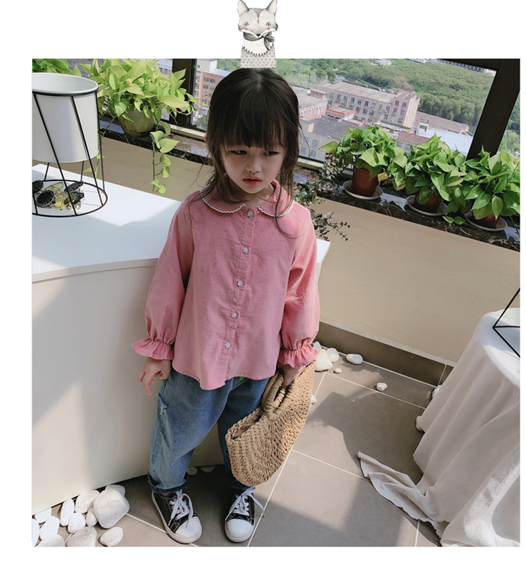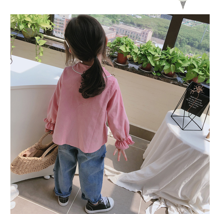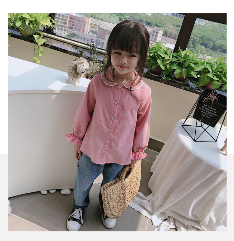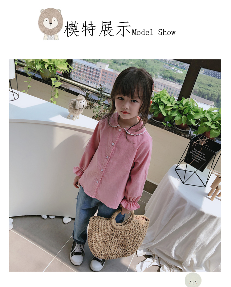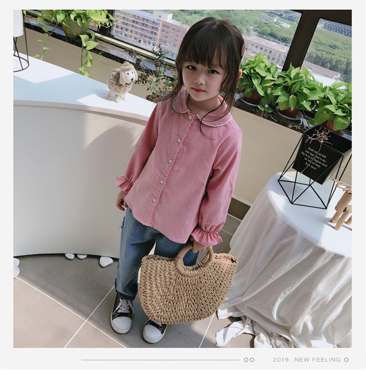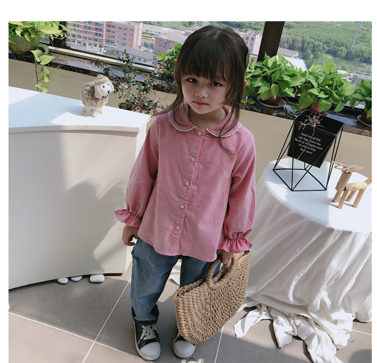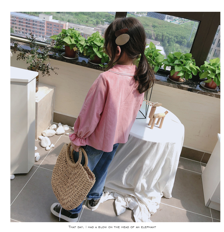 2019春秋季新款 中小童個性百搭襯衫 兒童可愛舒適花邊翻領上衣1入