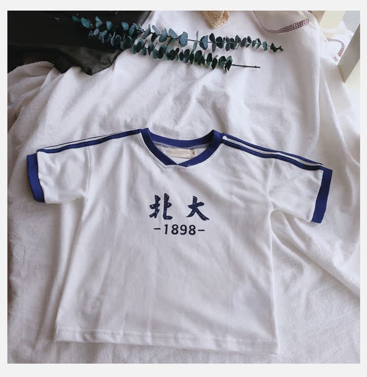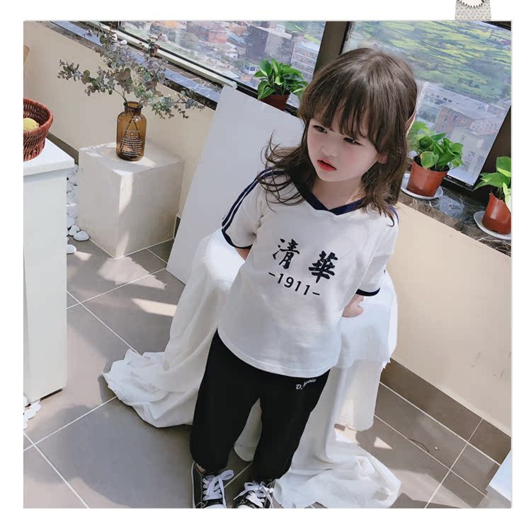 2019夏季中小童印花文字兒童T恤上衣 男女童寶寶圓領短袖打底衫1入
