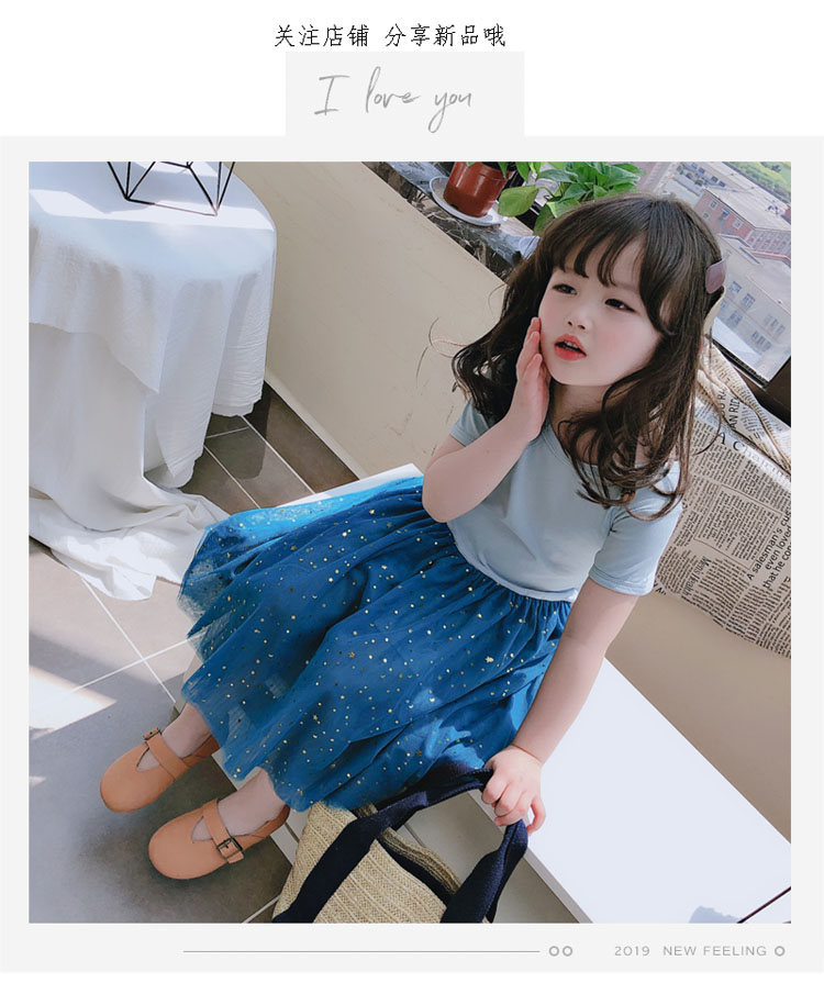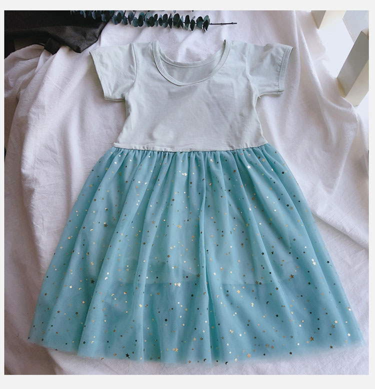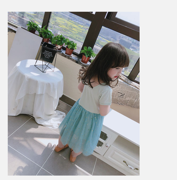 2019夏季新款 兒童大方網紗拼接撞色連衣裙 中小童氣質舒適裙子1入