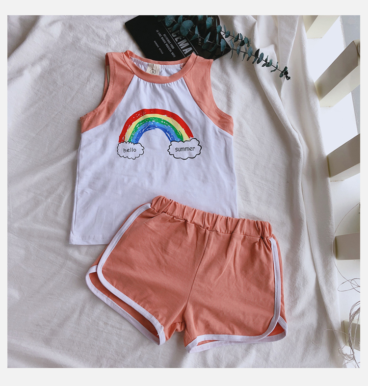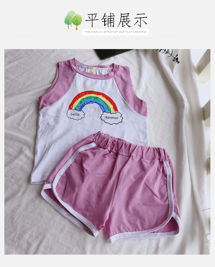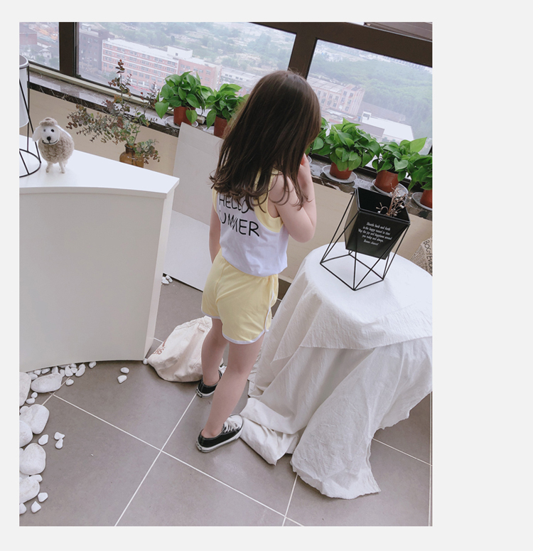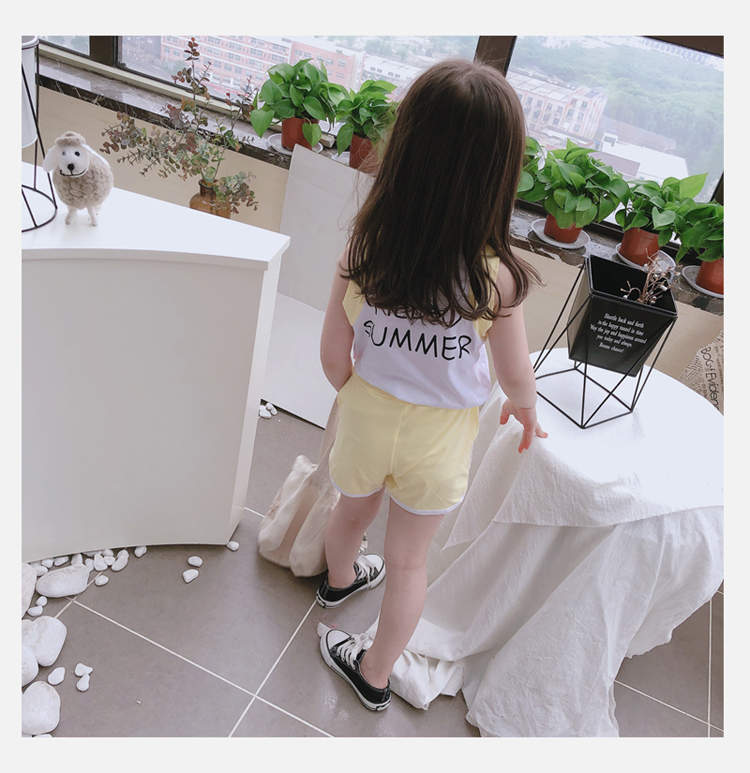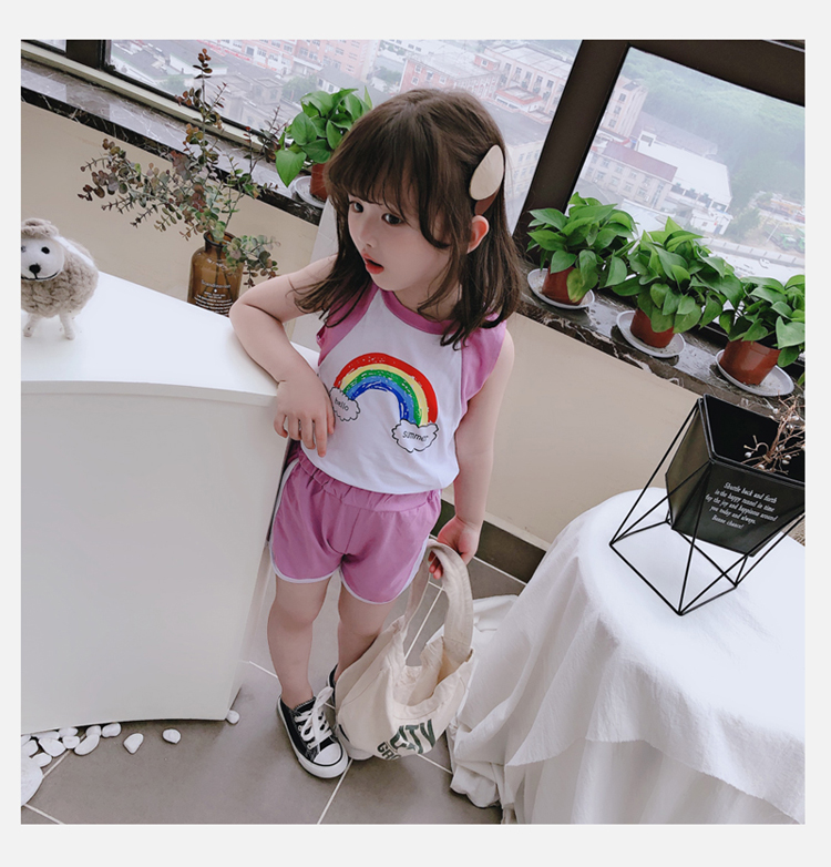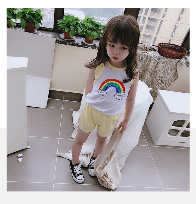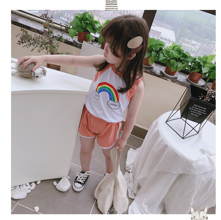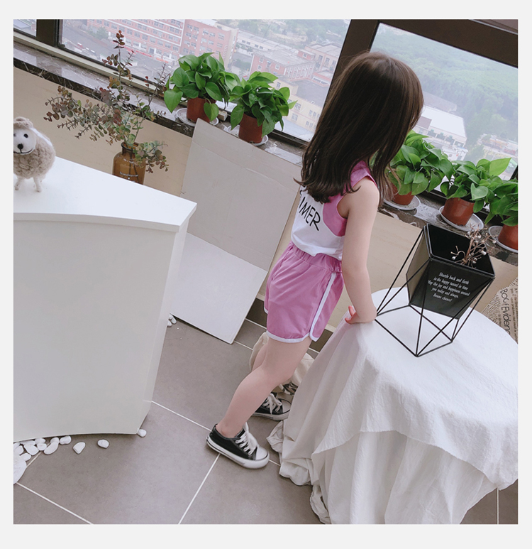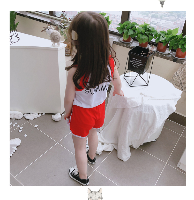 2019女童夏季新款運動套裝 中小童無袖背心T恤+舒適短褲兩件套潮1入