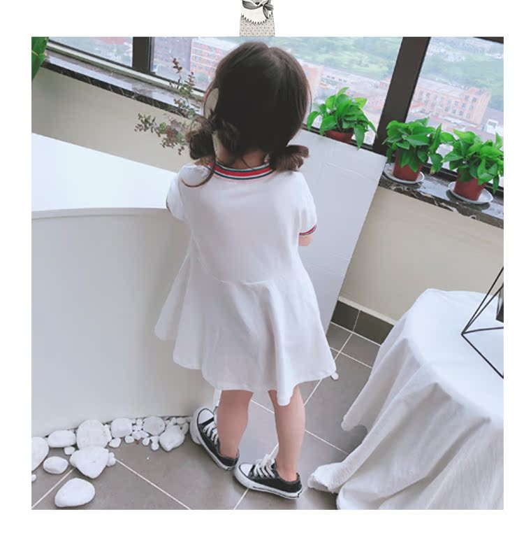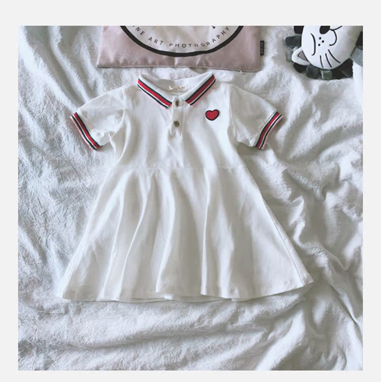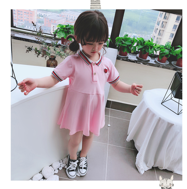 2019夏季新款 中小童氣質童裙 女童寶寶翻領小清新短袖連衣裙 潮1入