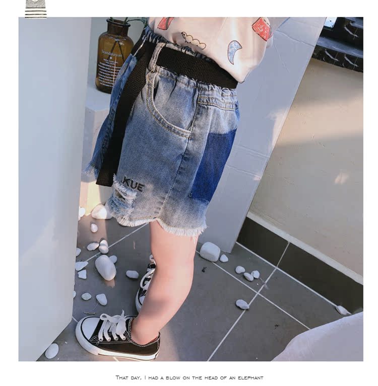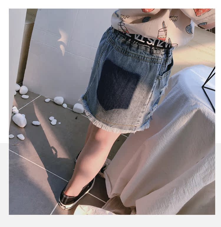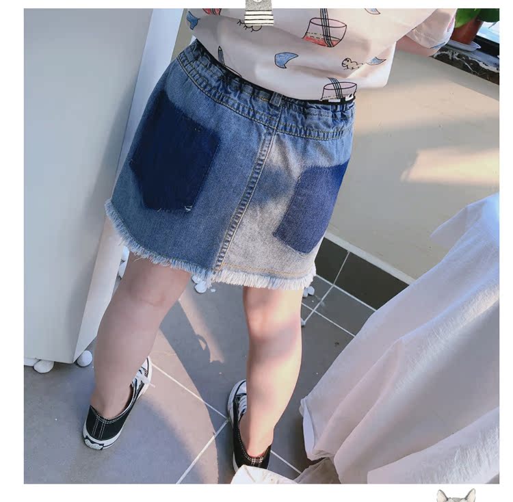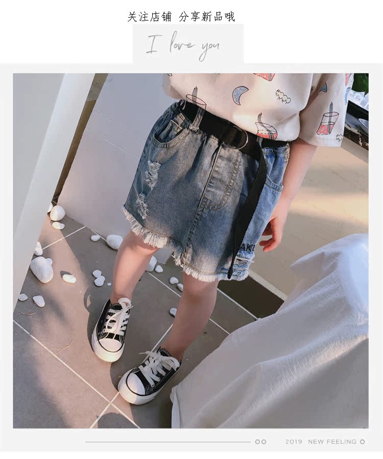 2019夏季新款 女童寶寶潮流破洞撞色牛仔裙 中小童個性洋氣半身裙1入
