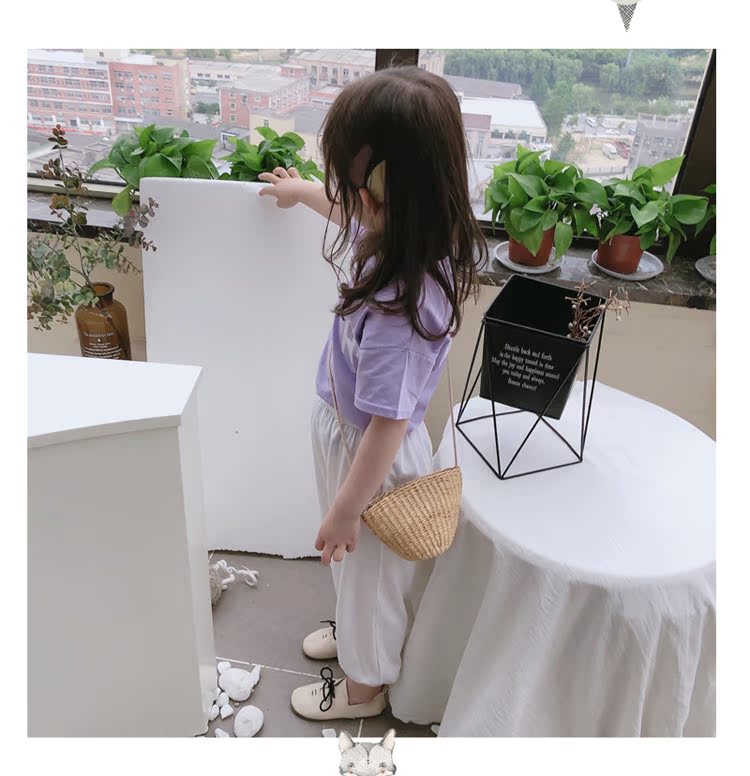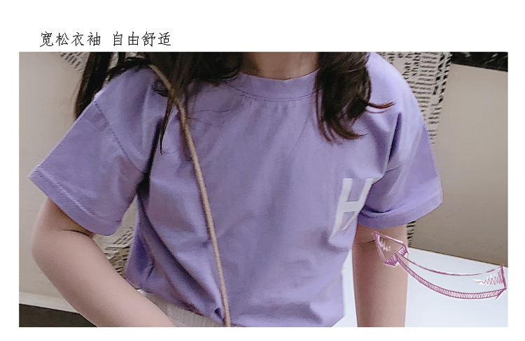 2019夏季新款童裝 中小童寬松舒適字母印花T恤 女童圓領套頭上衣1入
