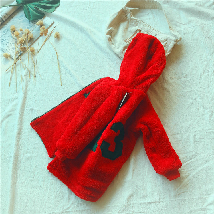 2018冬季新款雙面可穿加絨加厚兒童寶寶外套 中長款毛絨女童外衣1入