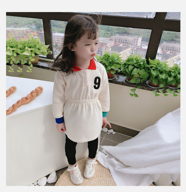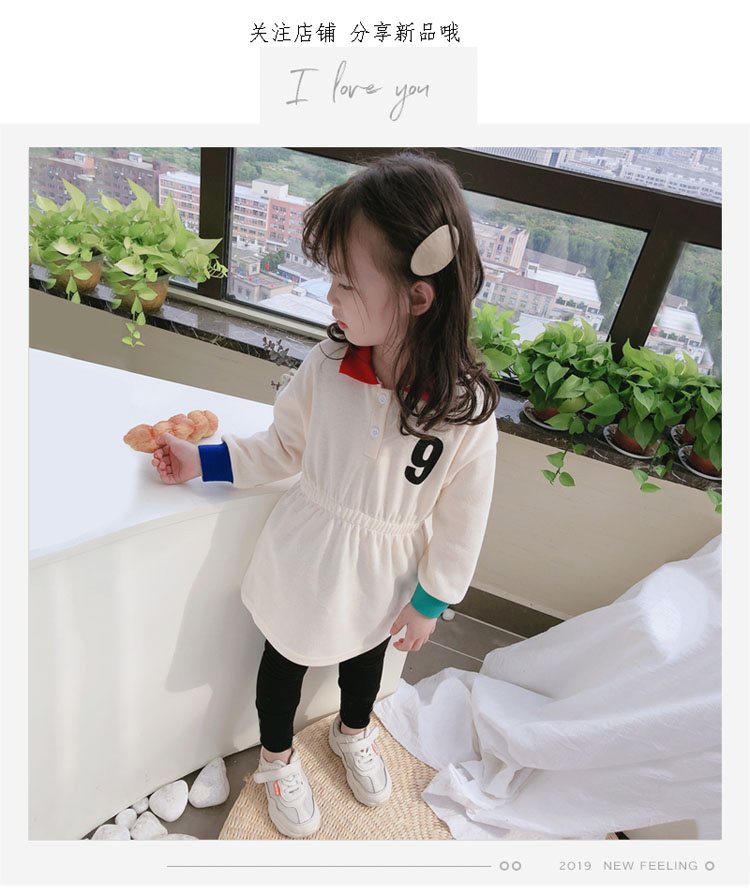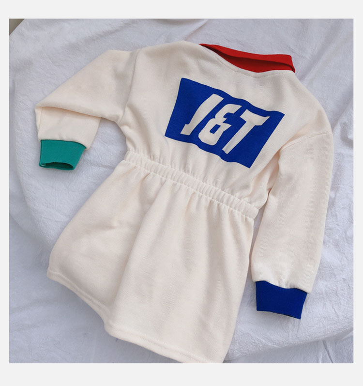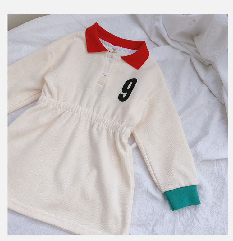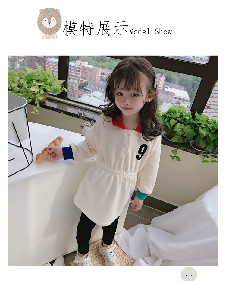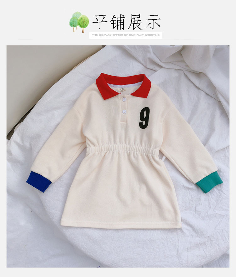 2019春秋季新款 女童中長款長袖運動風連衣裙 中小童撞色翻領裙子1入