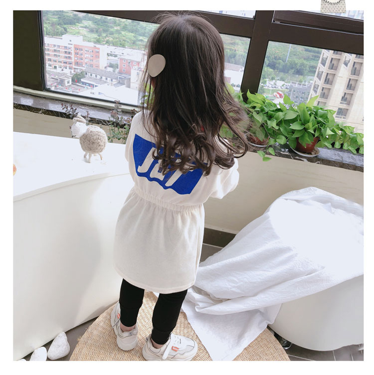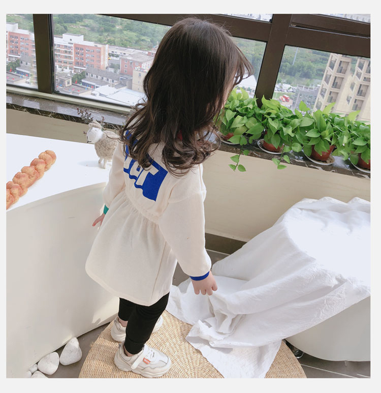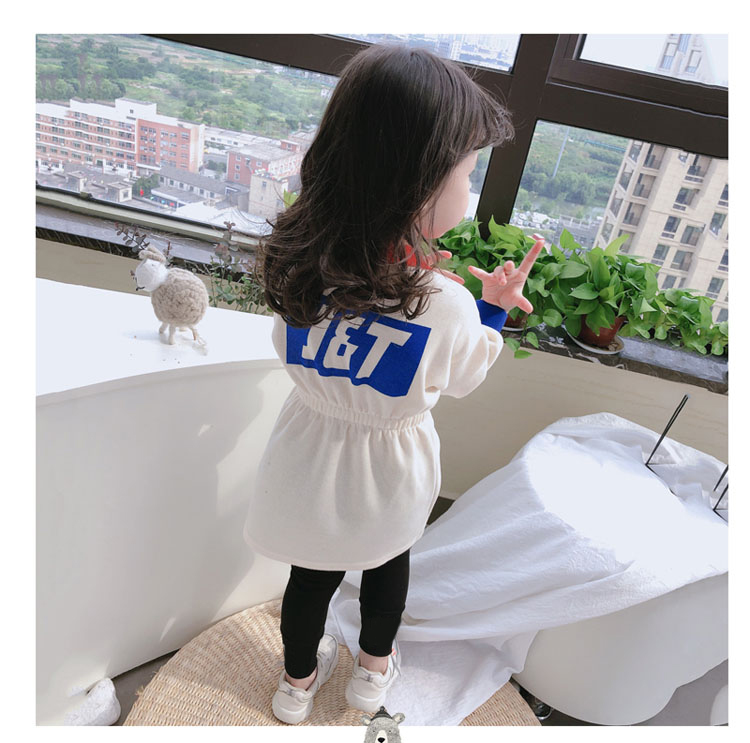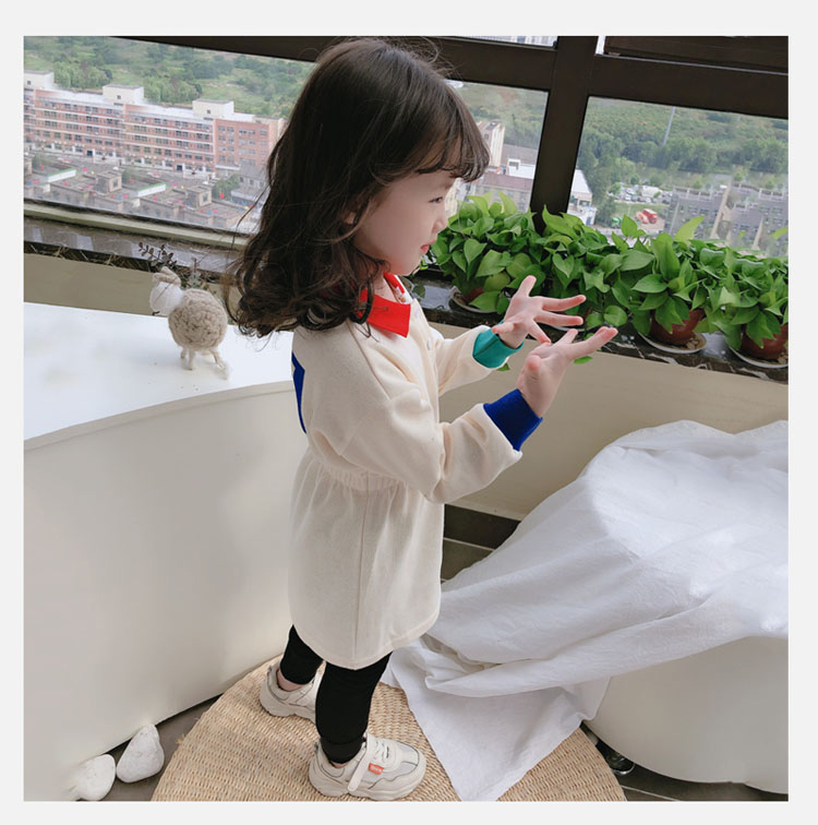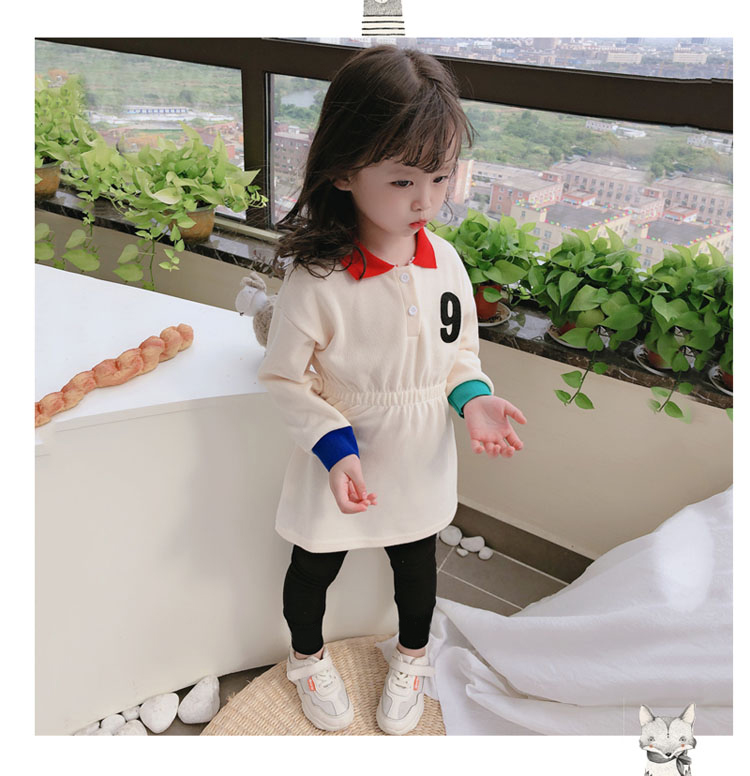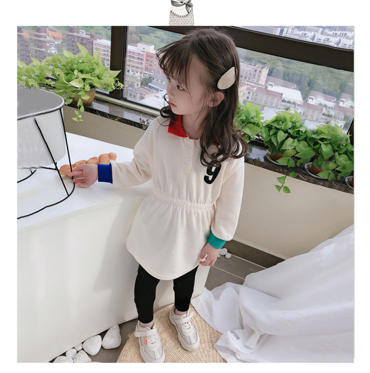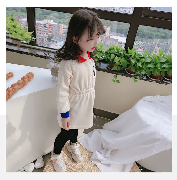 2019春秋季新款 女童中長款長袖運動風連衣裙 中小童撞色翻領裙子1入