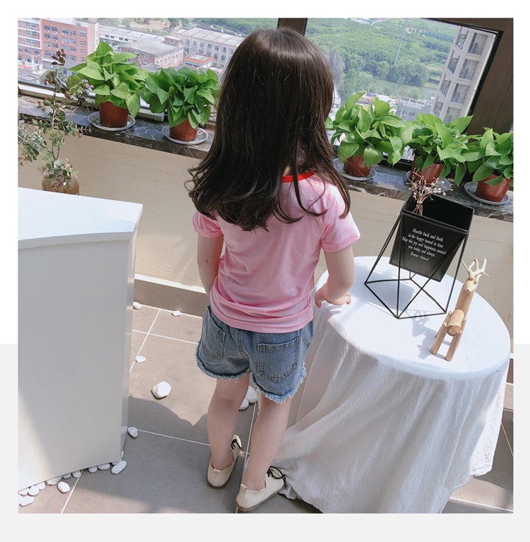 2019夏季新款 男女童舒適百搭T恤 兒童個性洋氣撞色圓領套頭上衣1入