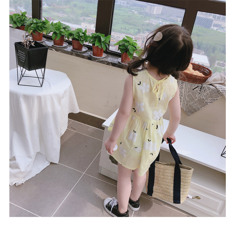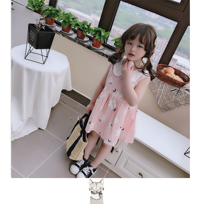 2019夏季 中小童花朵圖案小清新連衣裙 女童寶寶娃娃領可愛背心裙1入