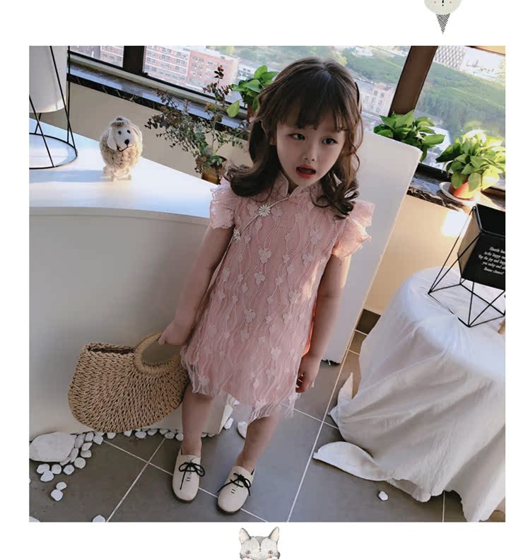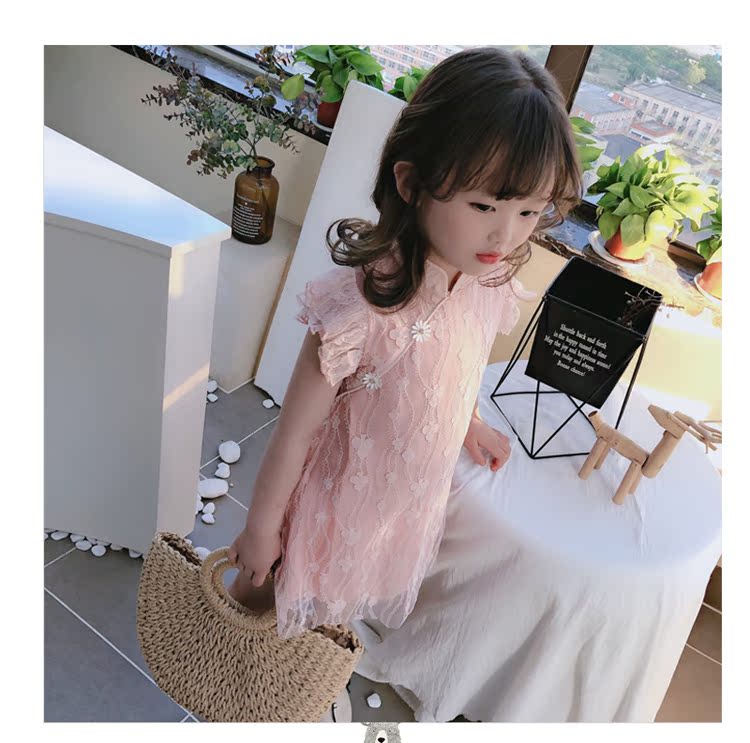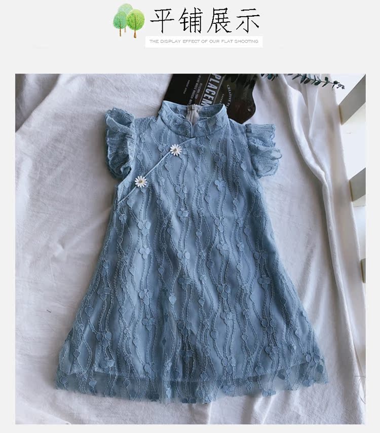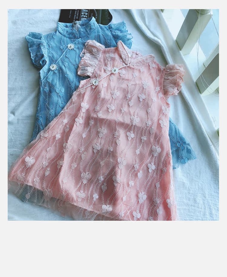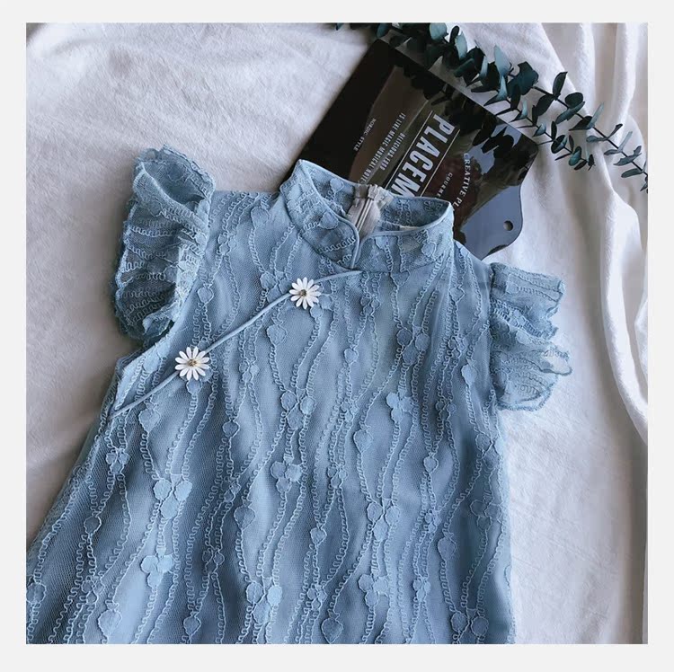 2019夏季新款 女童寶寶甜美可愛裙子 兒童復古田園風旗袍領連衣裙1入