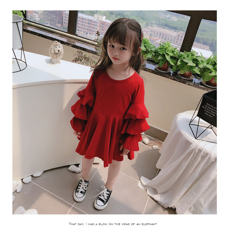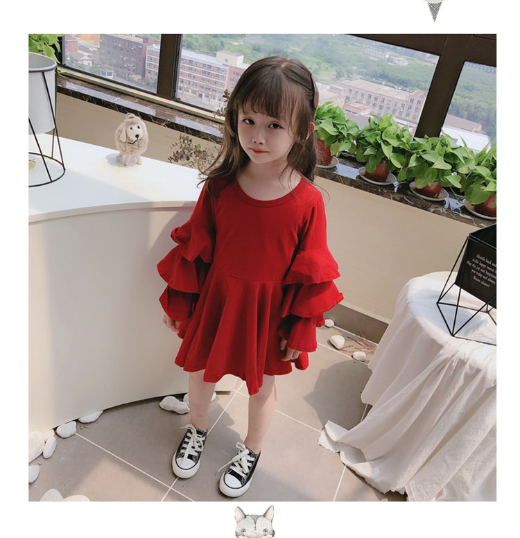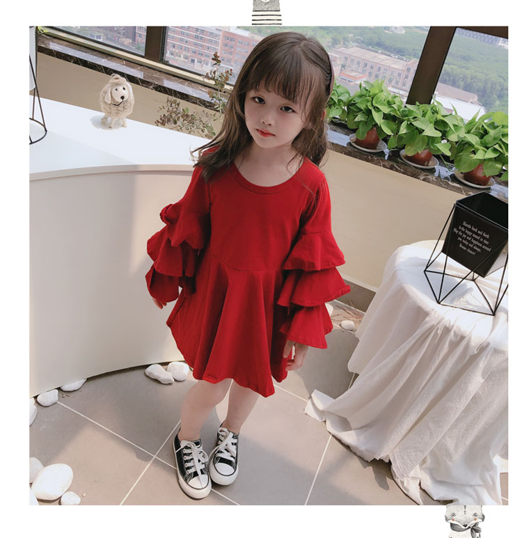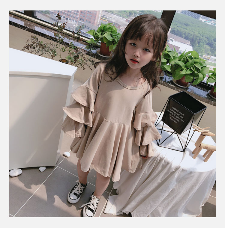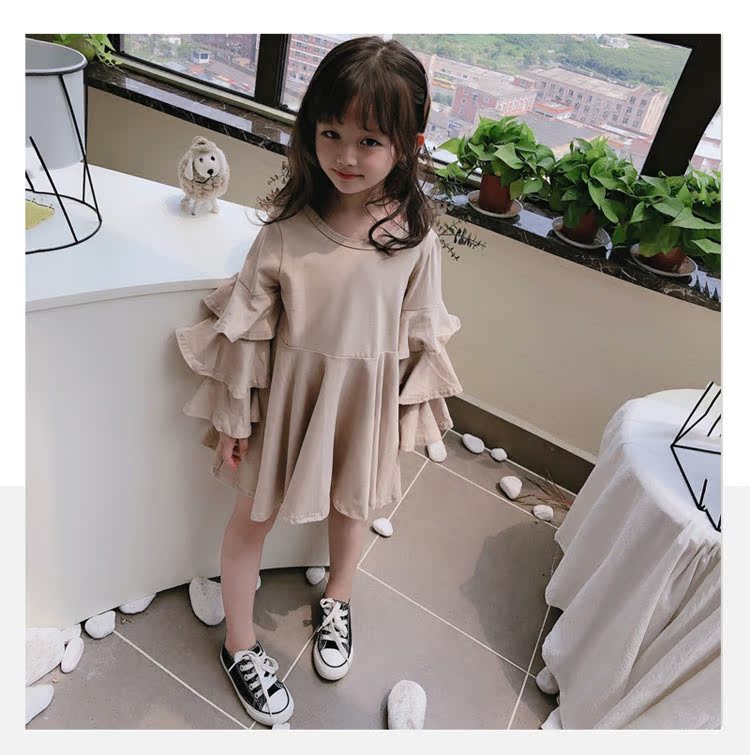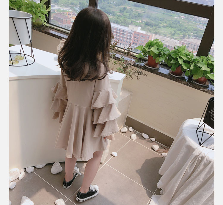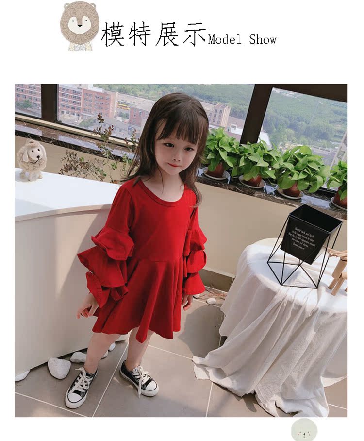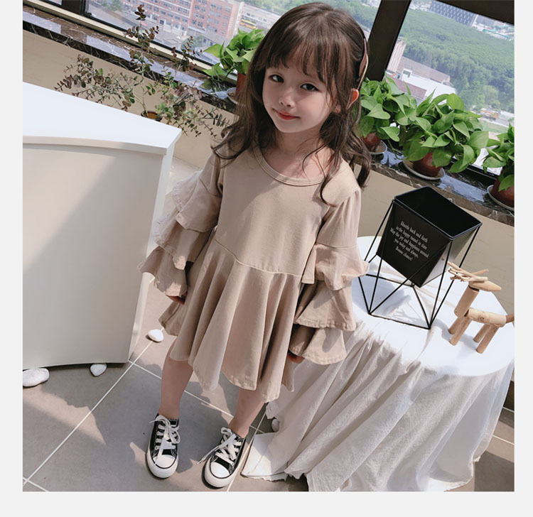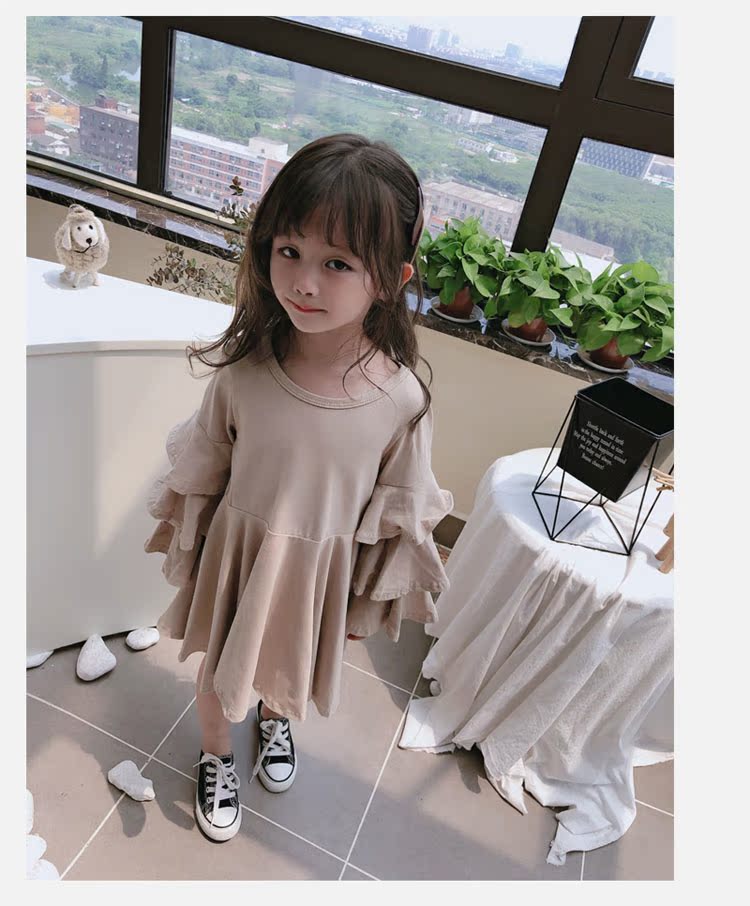 2019秋季童裝 中小童蛋糕袖荷葉邊女童寶寶公主裙 兒童長袖連衣裙1入