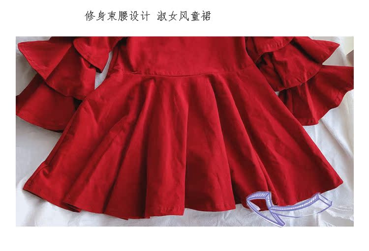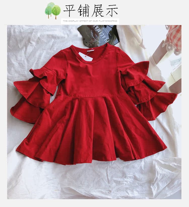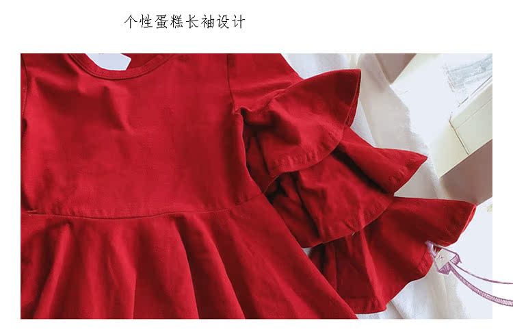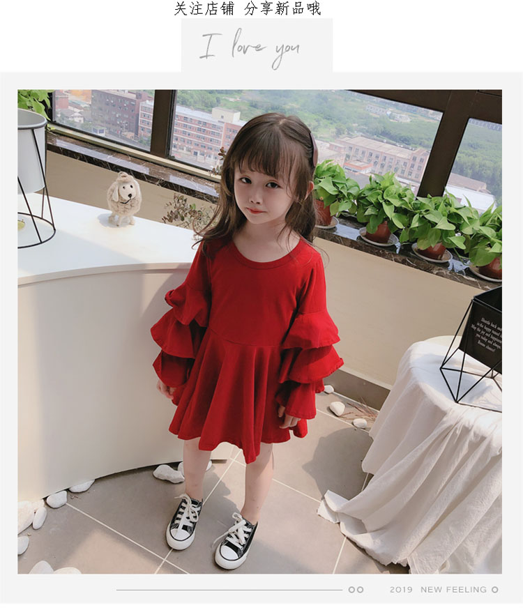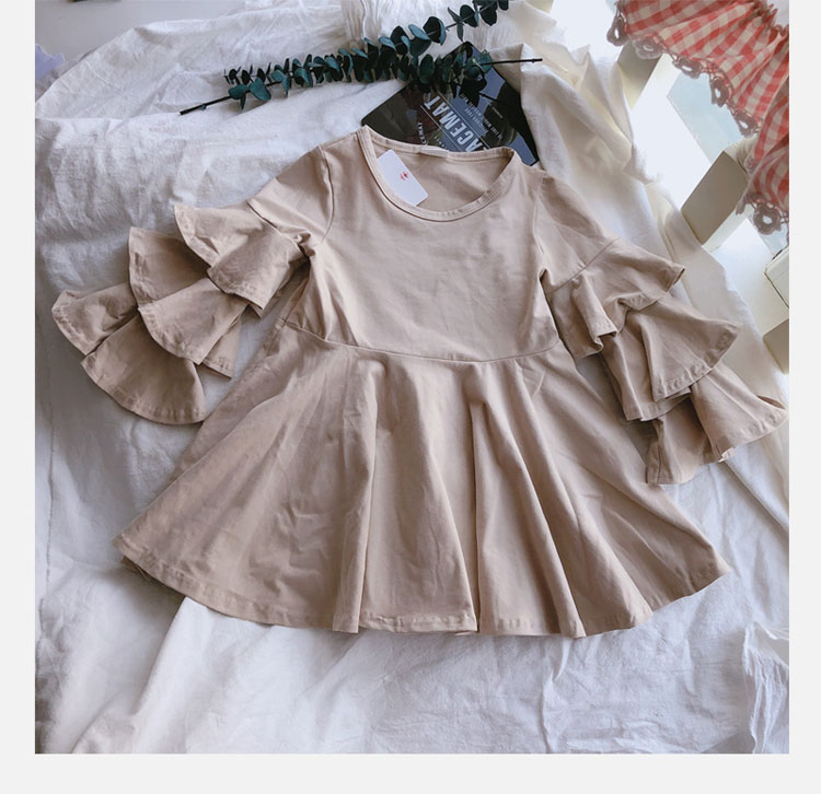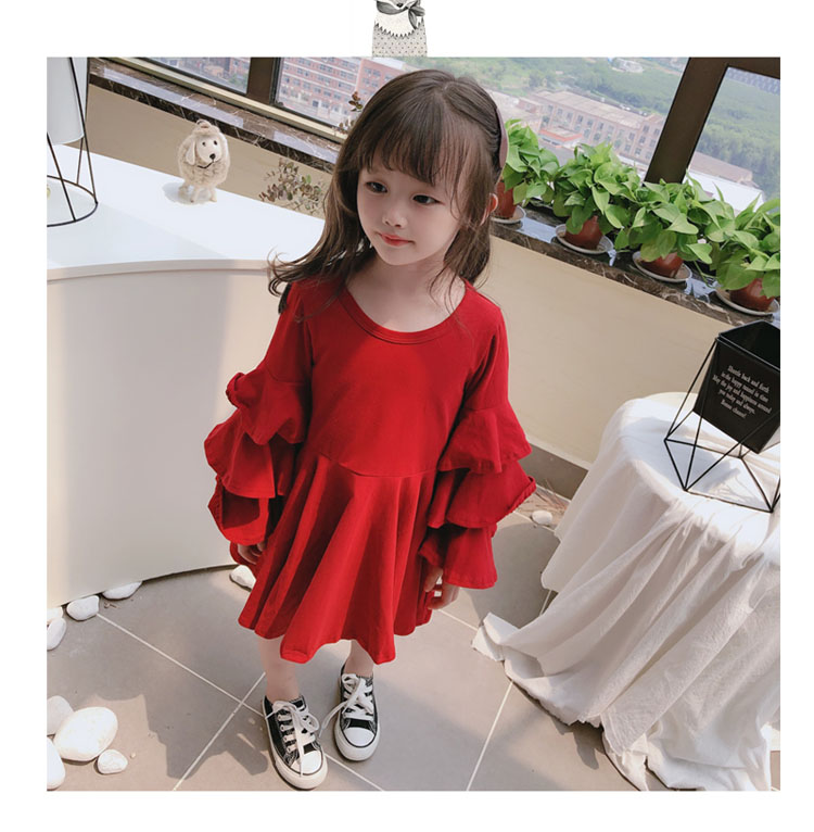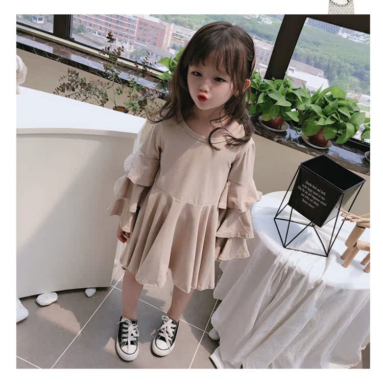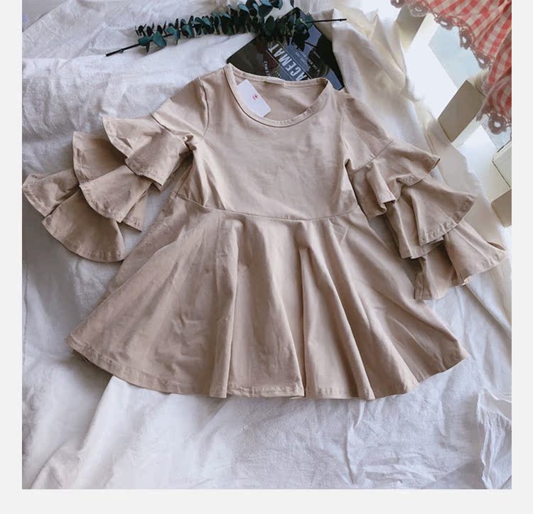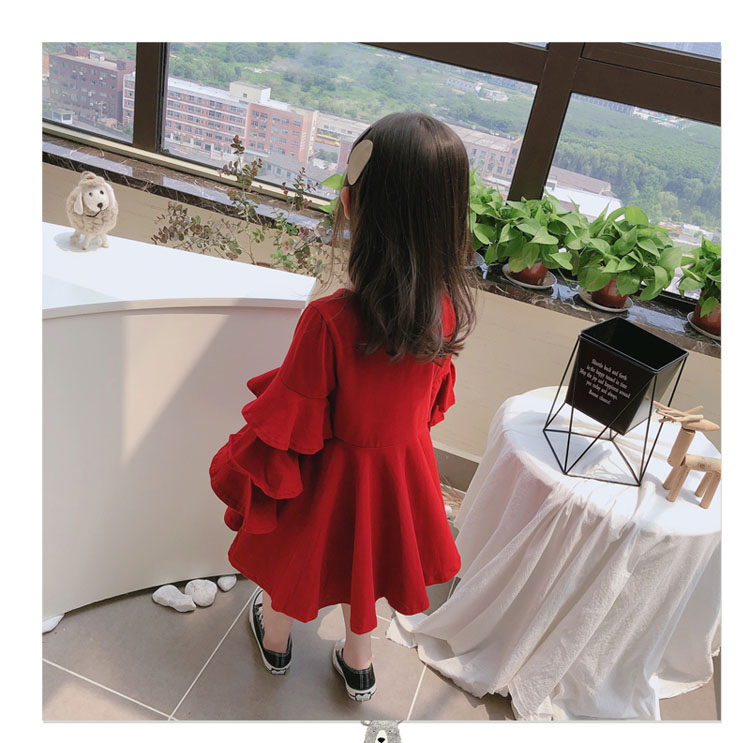 2019秋季童裝 中小童蛋糕袖荷葉邊女童寶寶公主裙 兒童長袖連衣裙1入