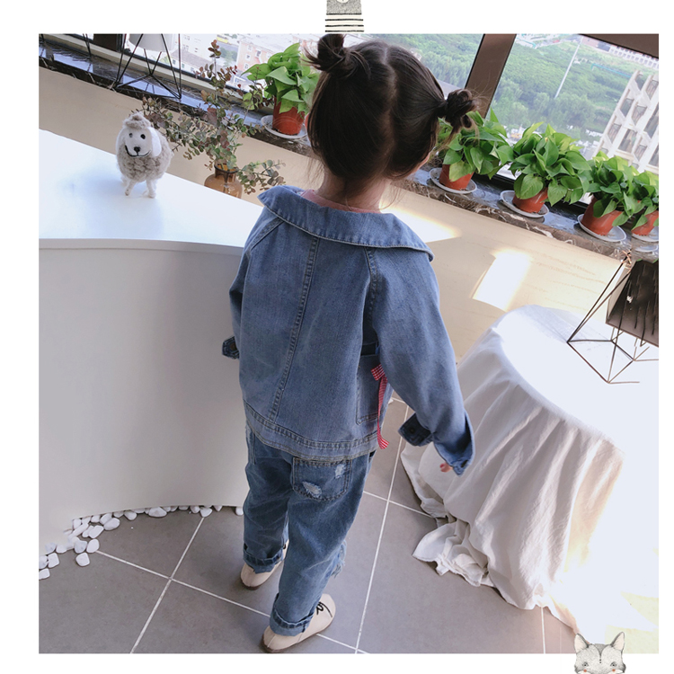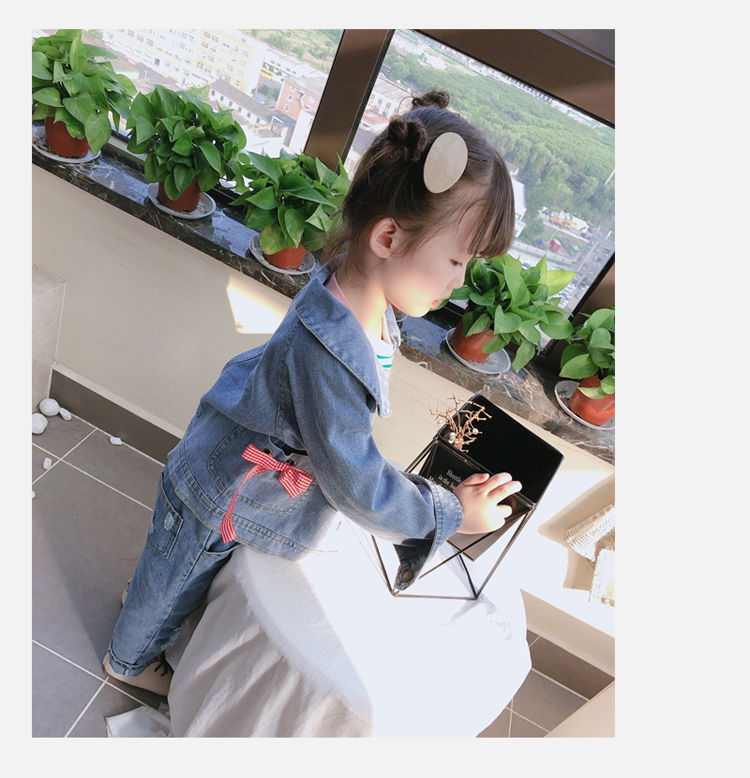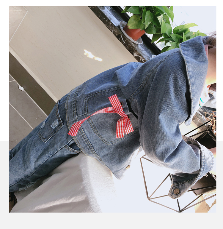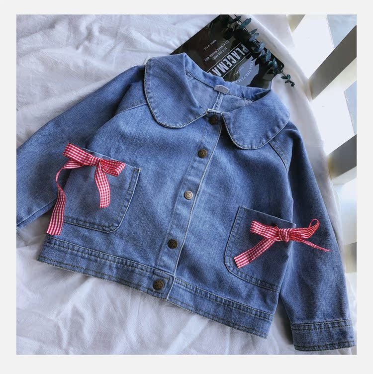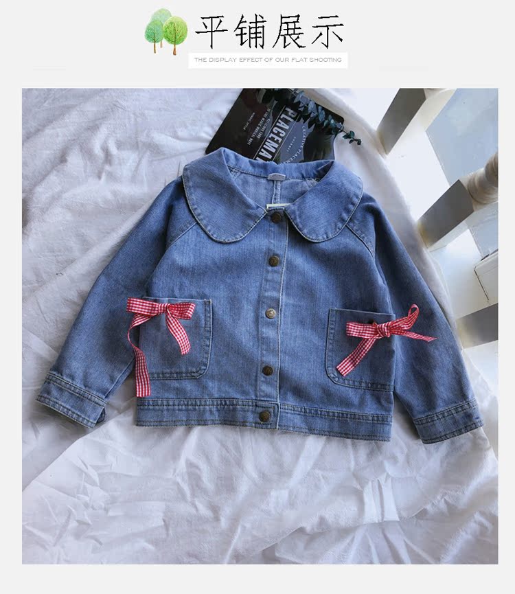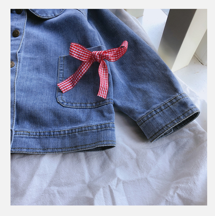 2019春秋季新款 女童可愛甜美牛仔外套 中小童個性洋氣蝴蝶結上衣1入
