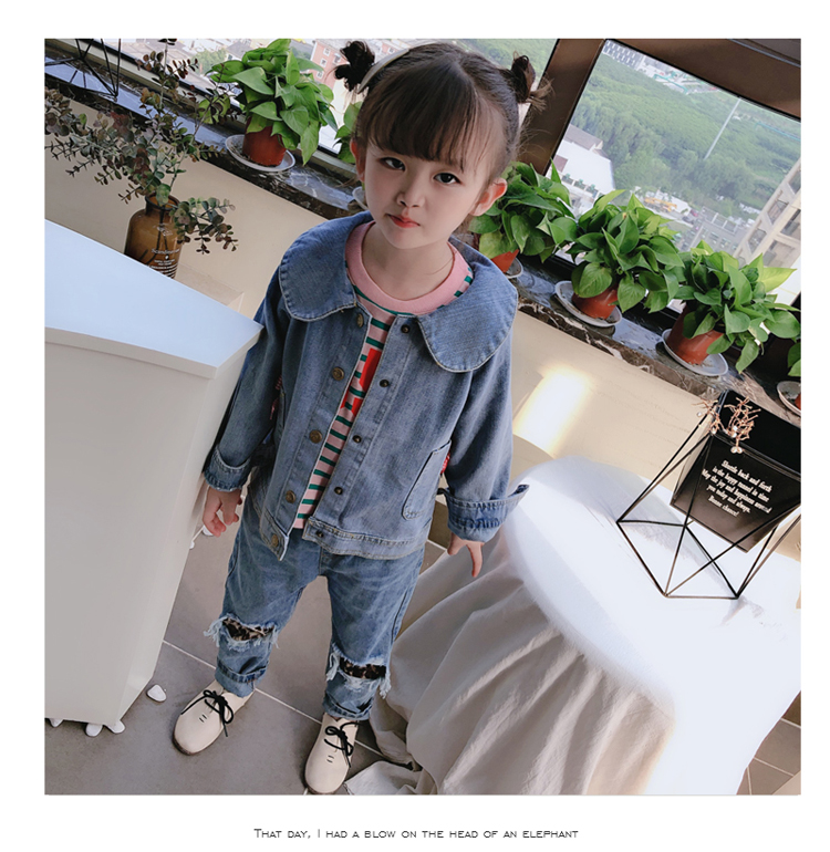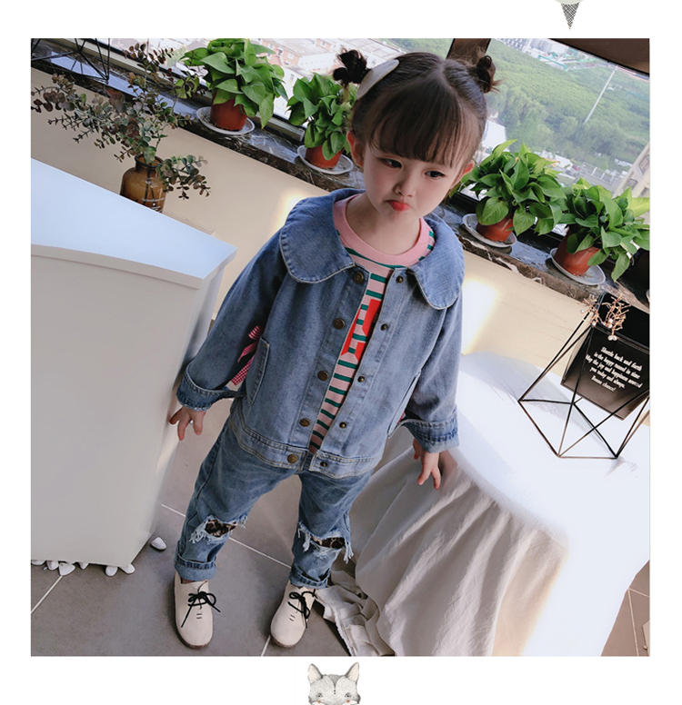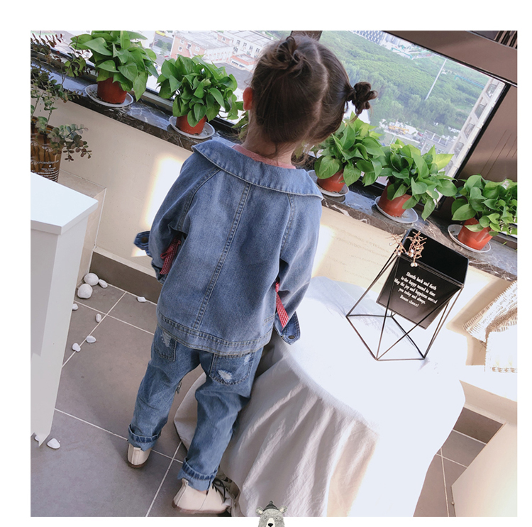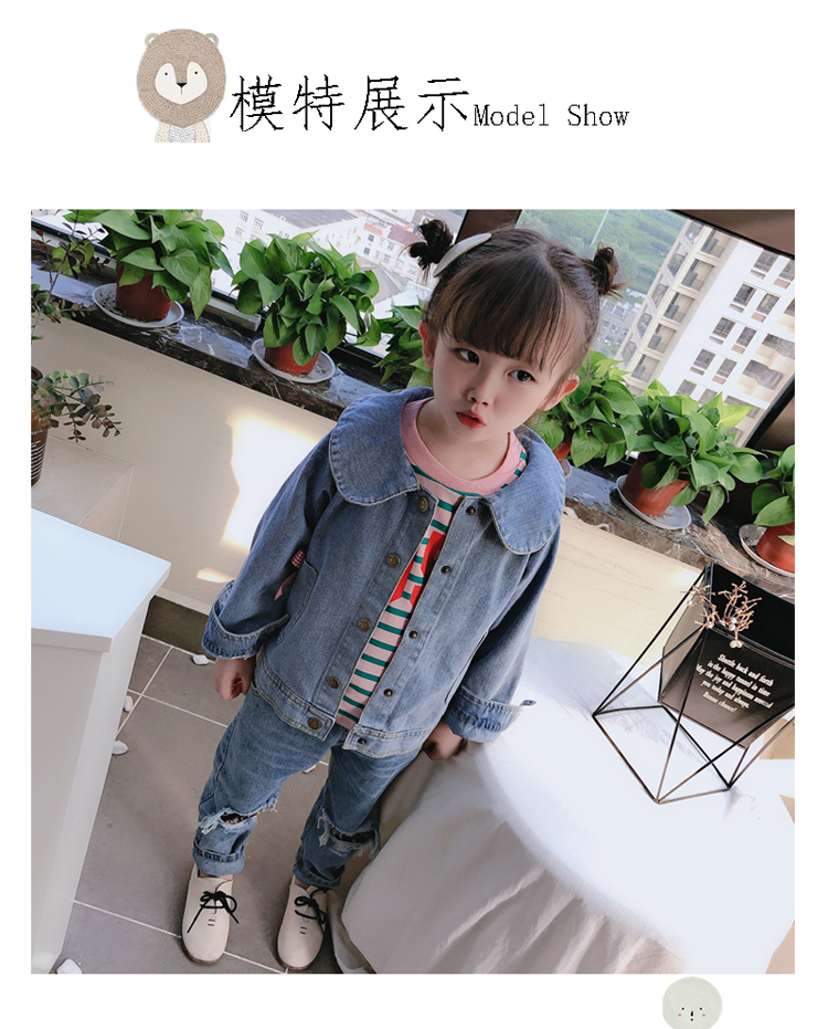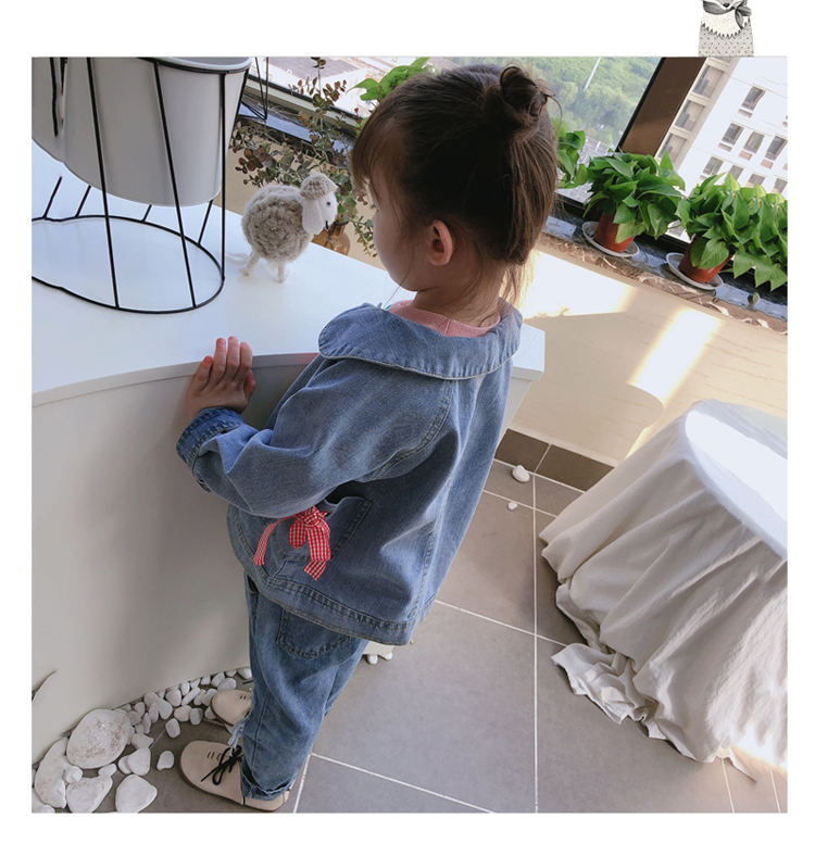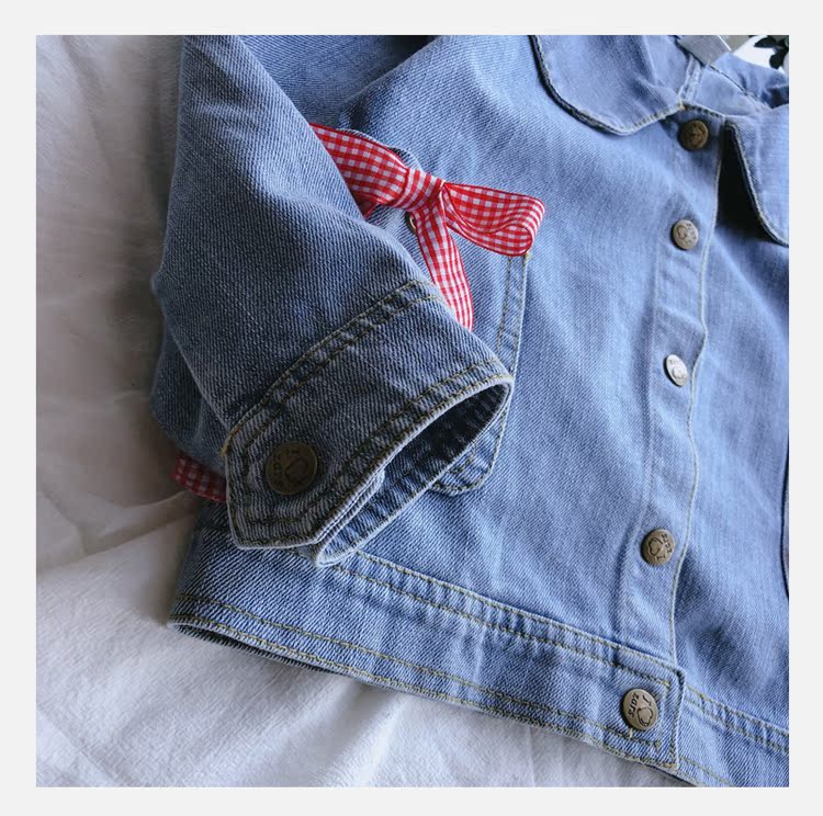 2019春秋季新款 女童可愛甜美牛仔外套 中小童個性洋氣蝴蝶結上衣1入