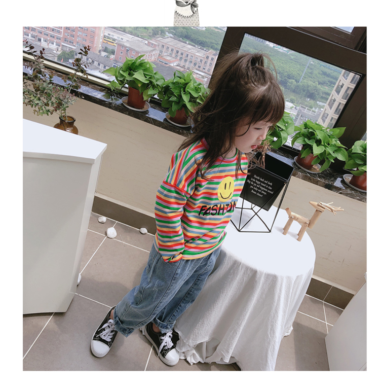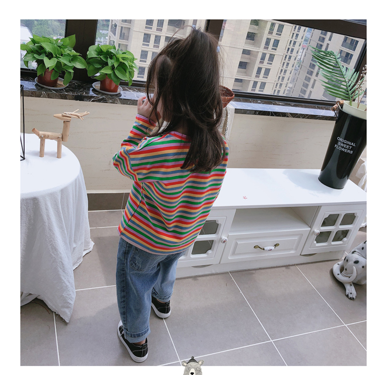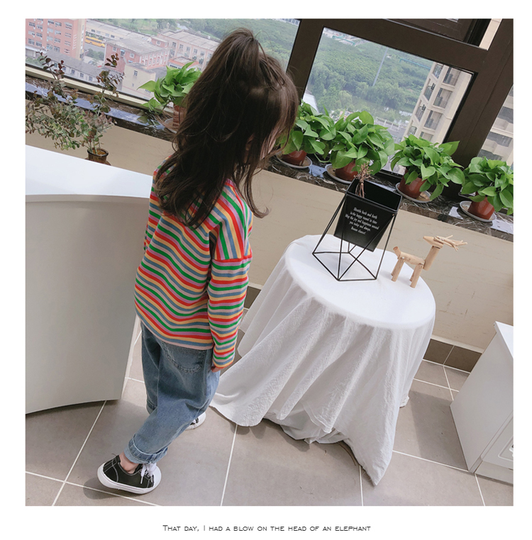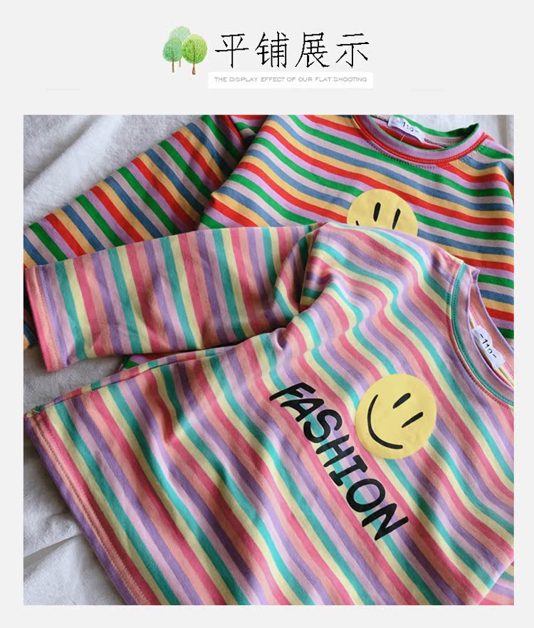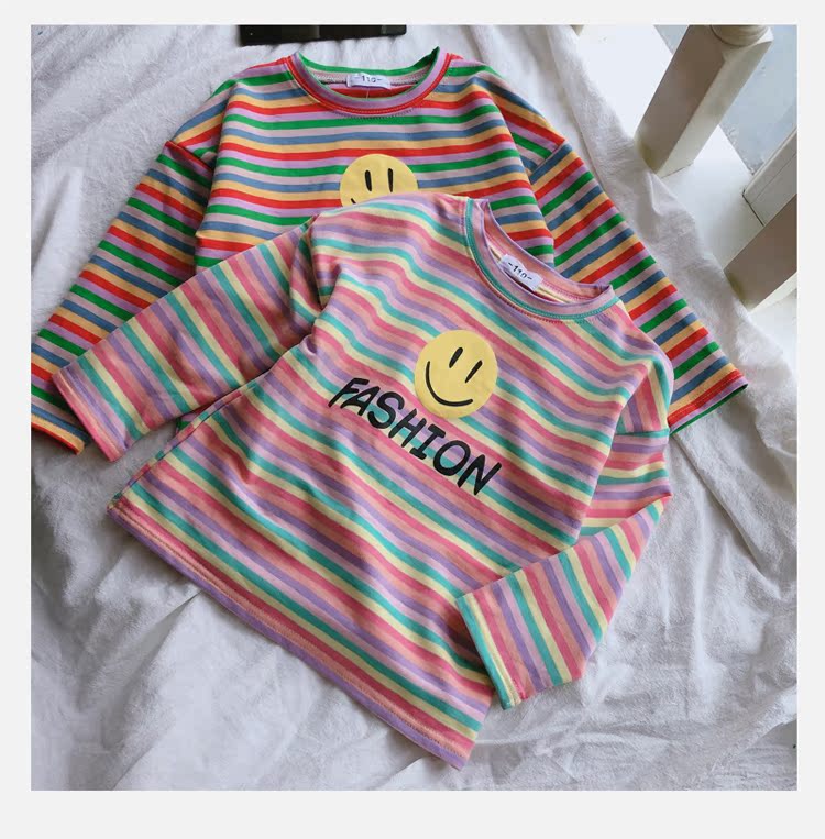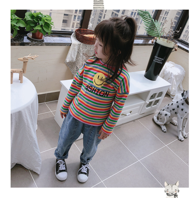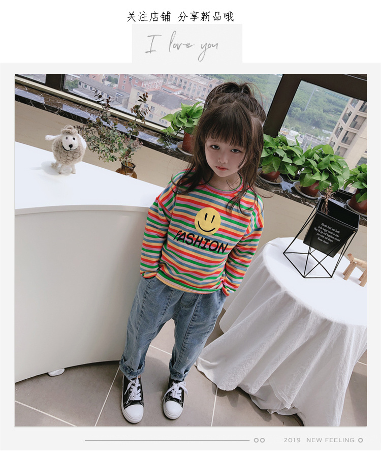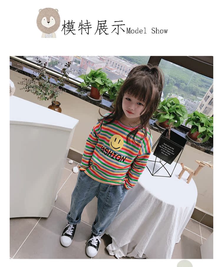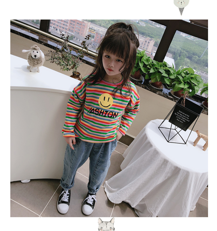 2019春秋季新款 男女童寶寶條紋T恤 兒童卡通印花打底衫上衣1入