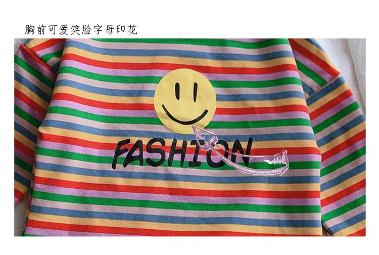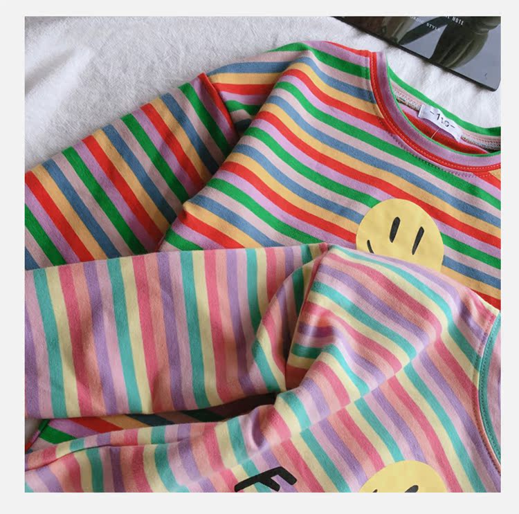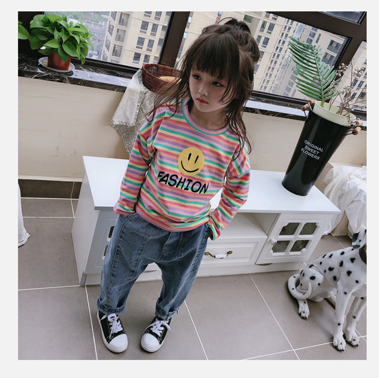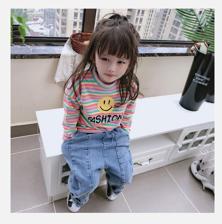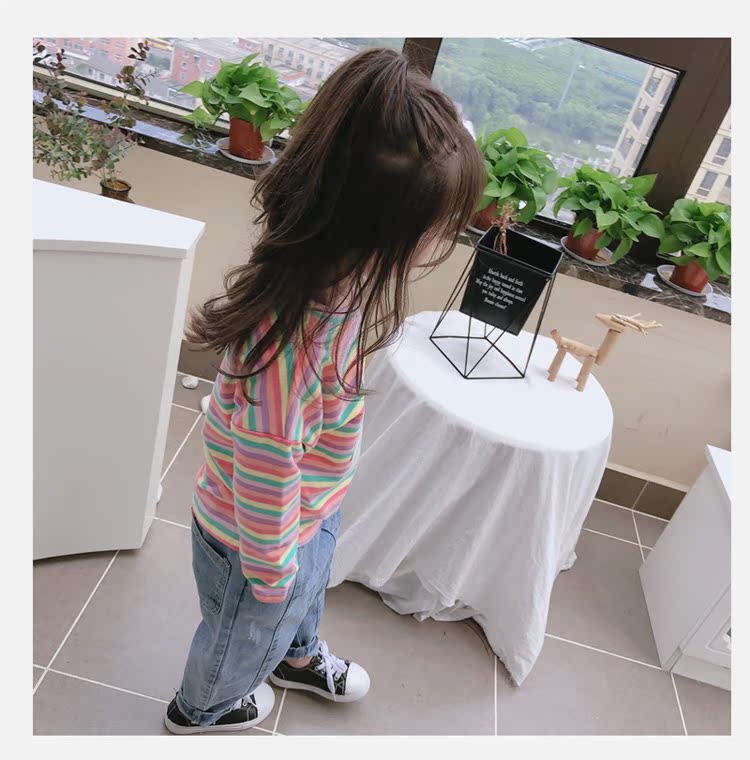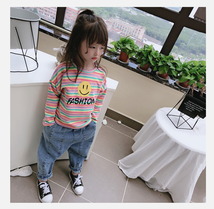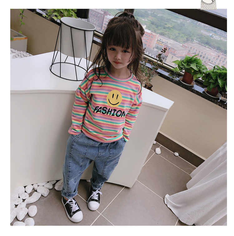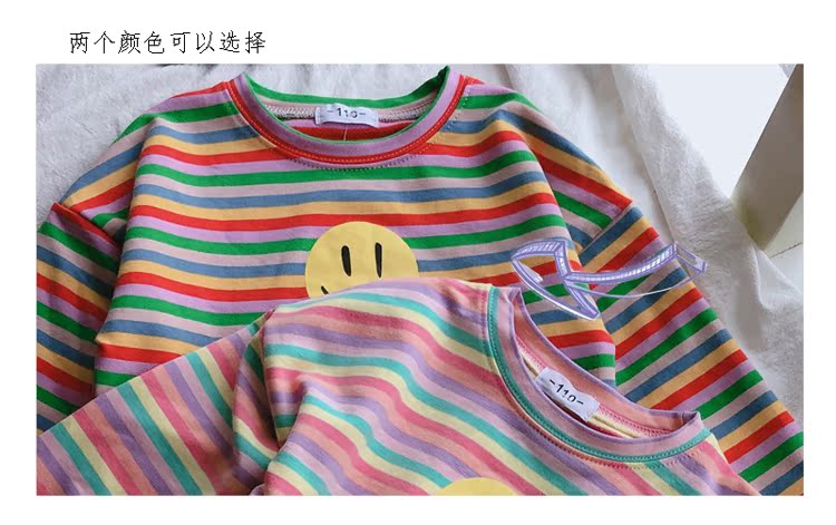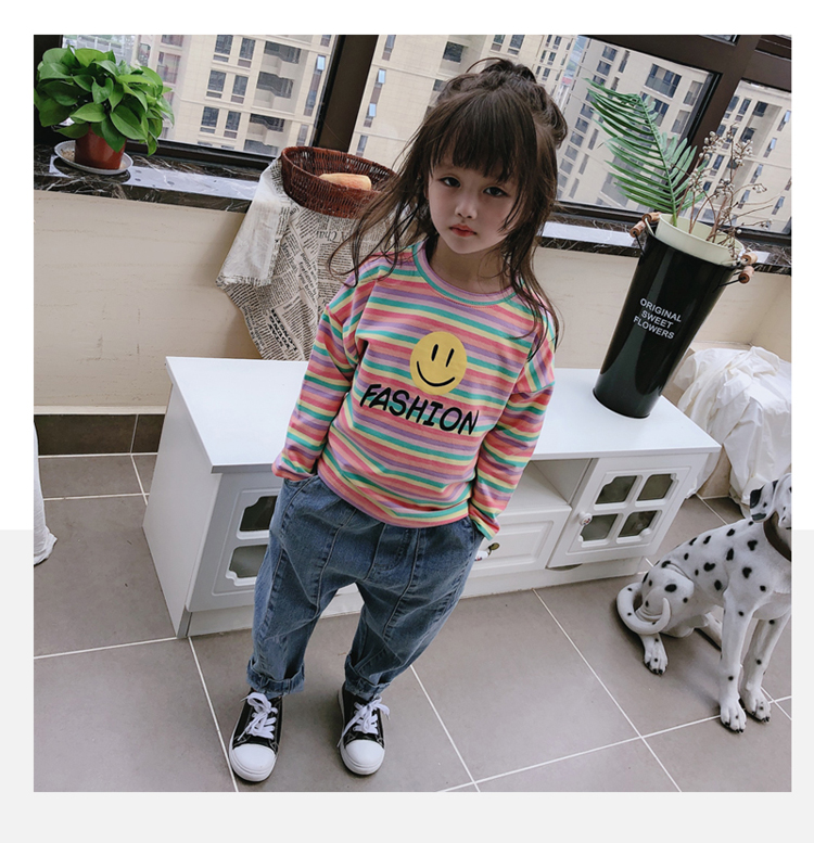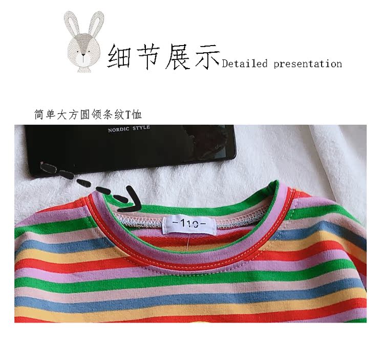2019春秋季新款 男女童寶寶條紋T恤 兒童卡通印花打底衫上衣1入