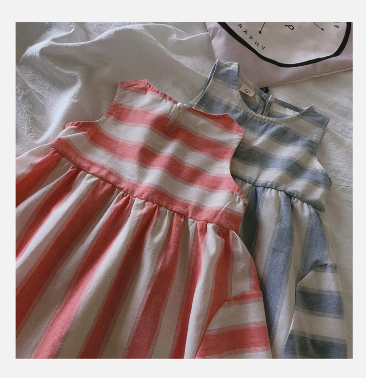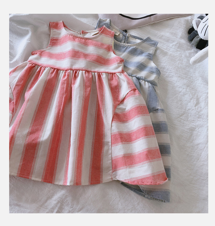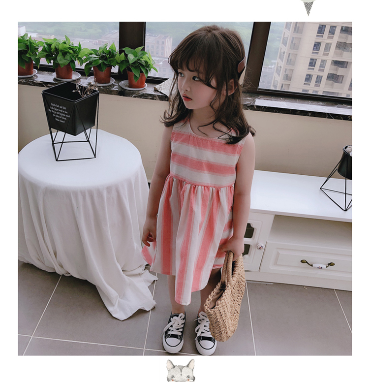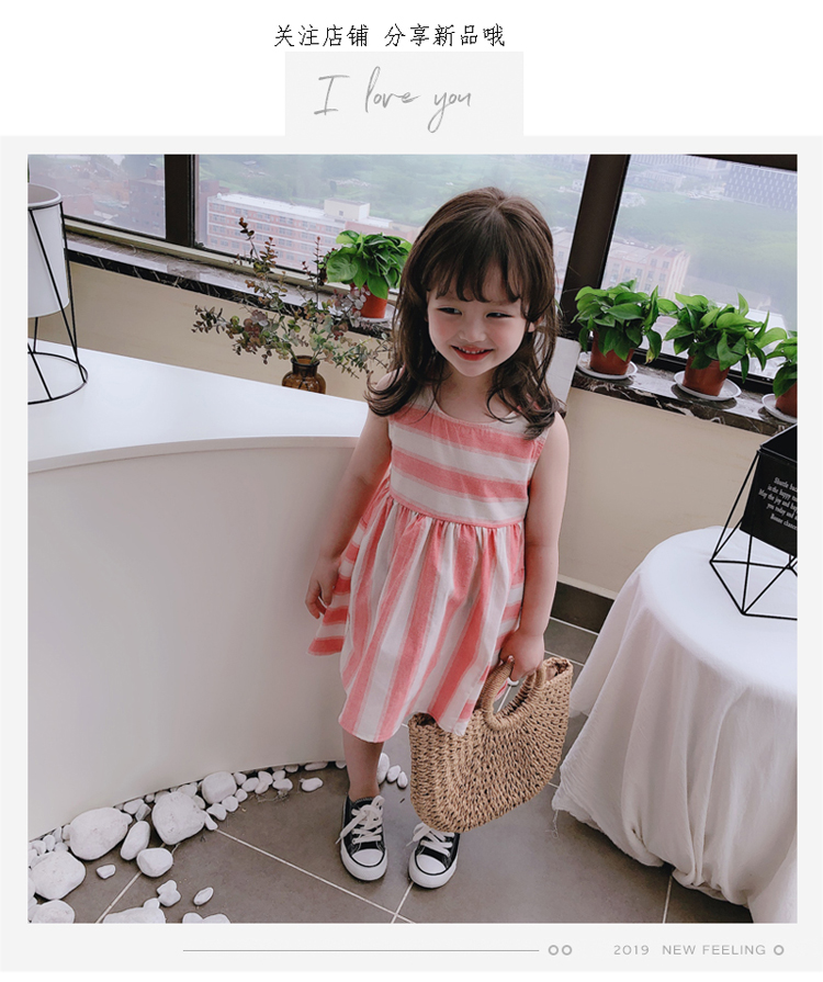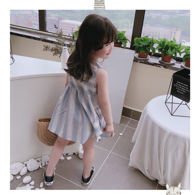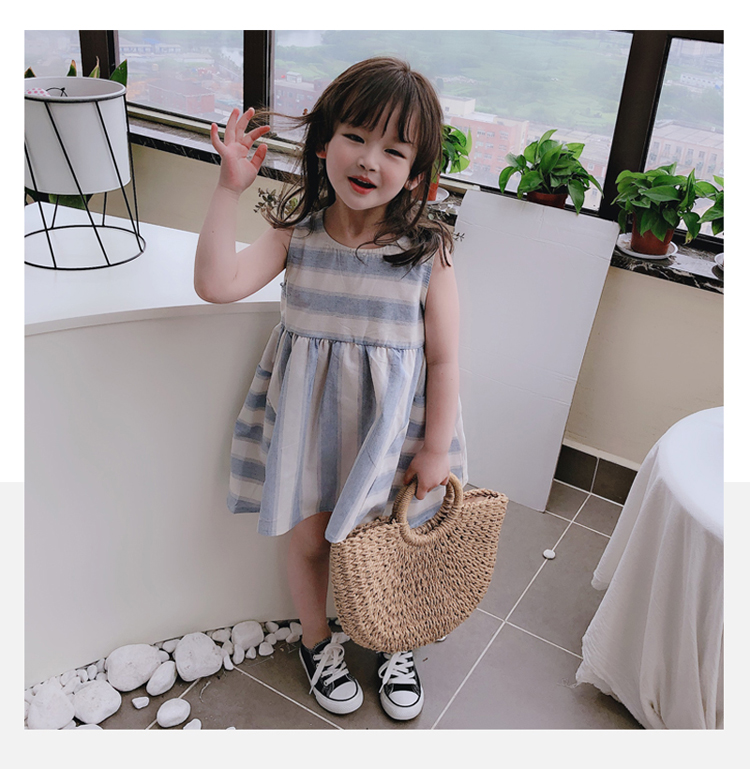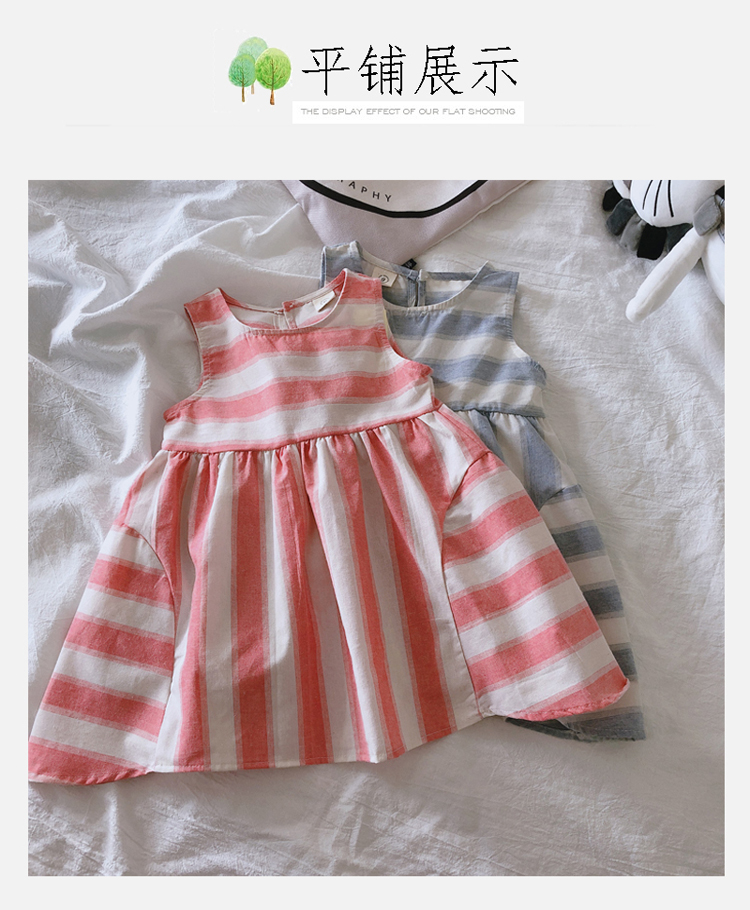 2019夏季新款 女童寶寶小清新無袖背心裙 兒童可愛甜美條紋連衣裙1入