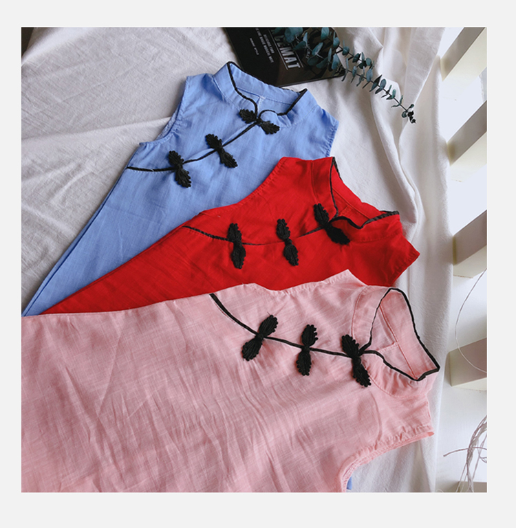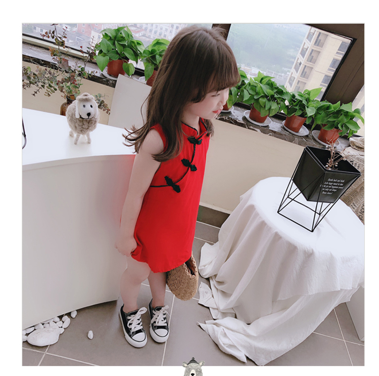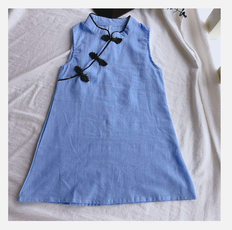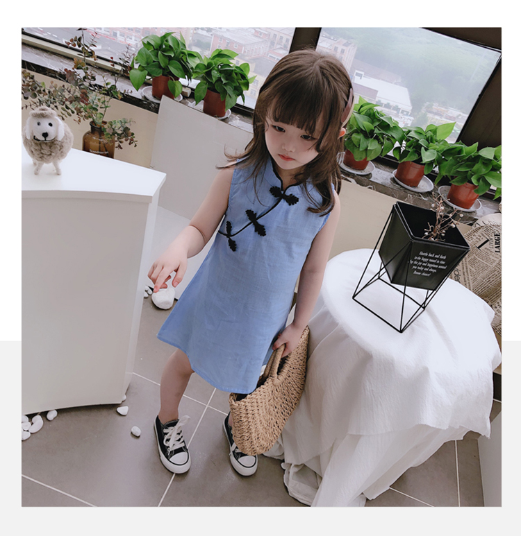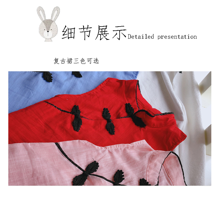 2019夏季新款 女童寶寶民族風盤扣連衣裙 中小童中國風復古裙子1入