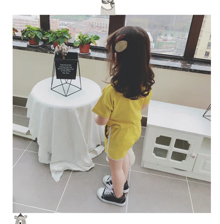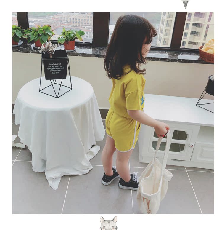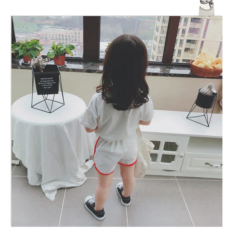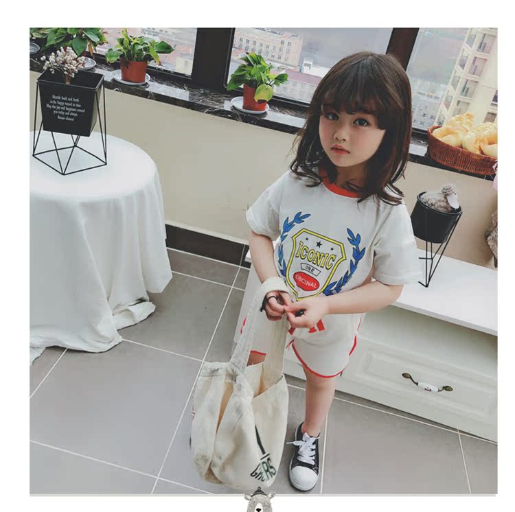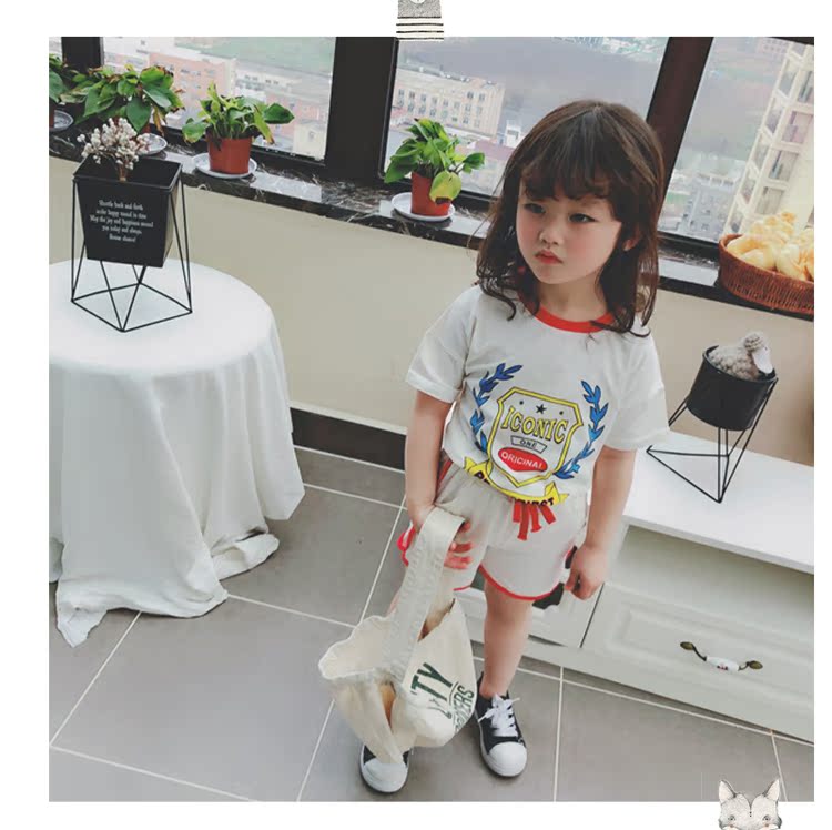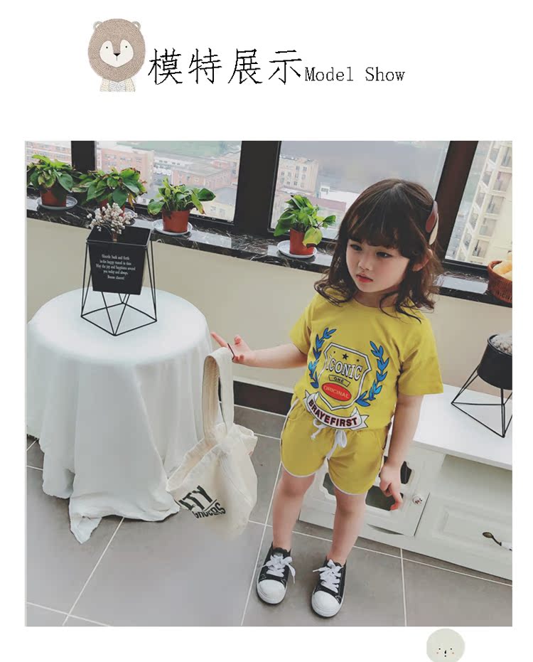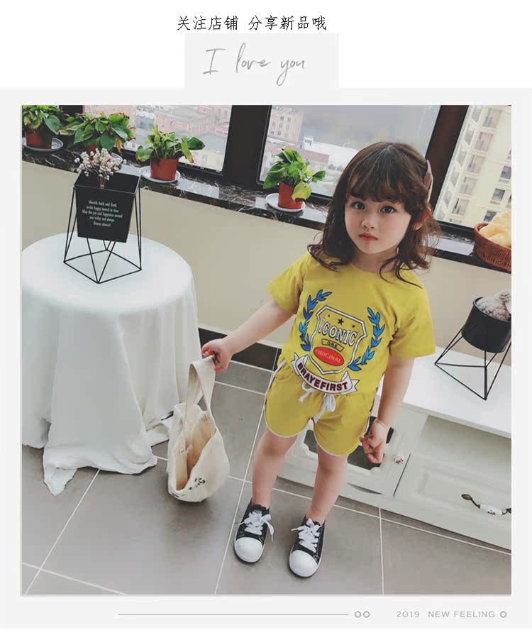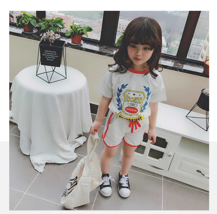 2019新款夏季童裝女童短袖T恤+中小童短褲套裝運動女寶寶兩件套1入