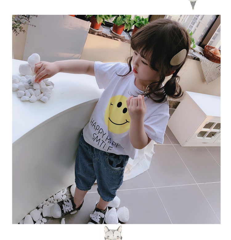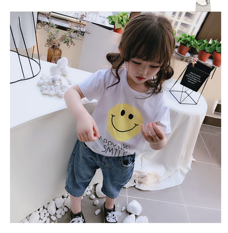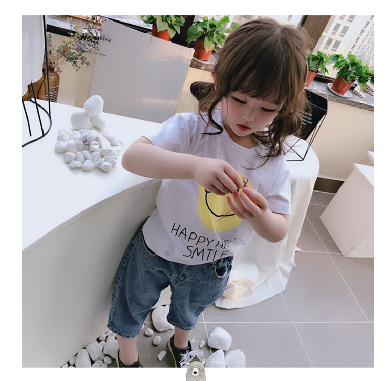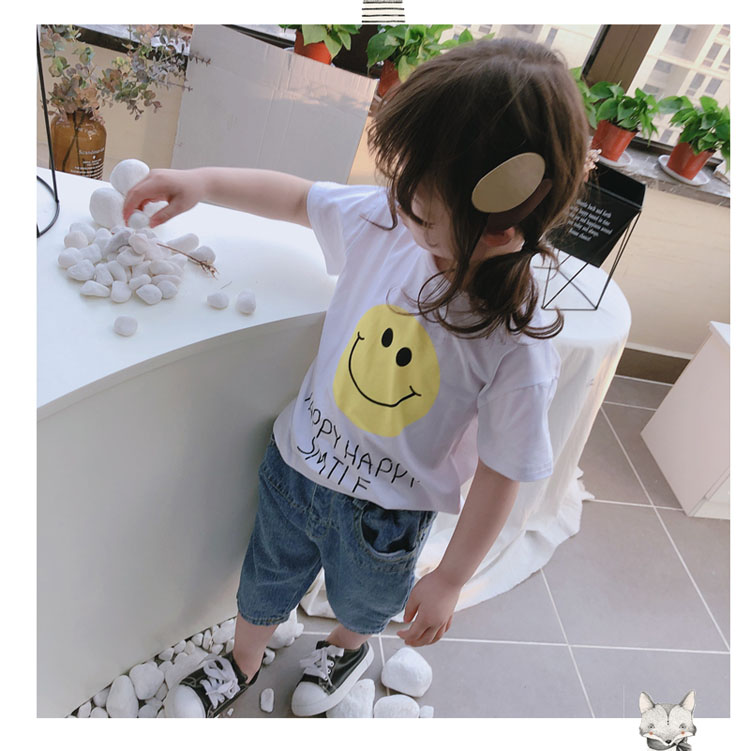 2019童裝夏季新款 男女童寶寶舒適百搭T恤 中小童可愛甜美笑臉T恤1入