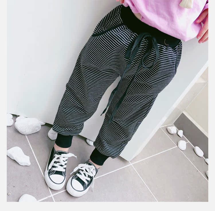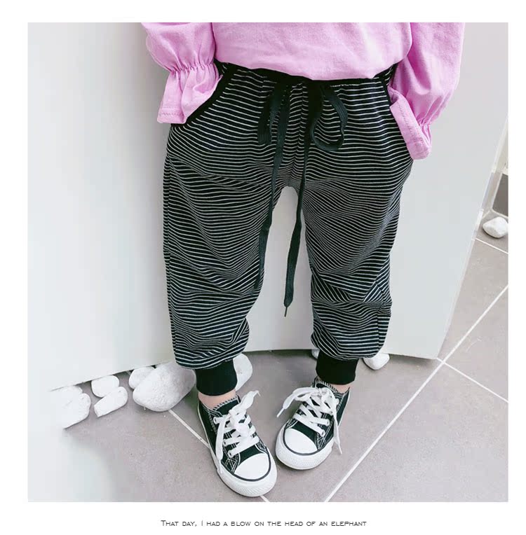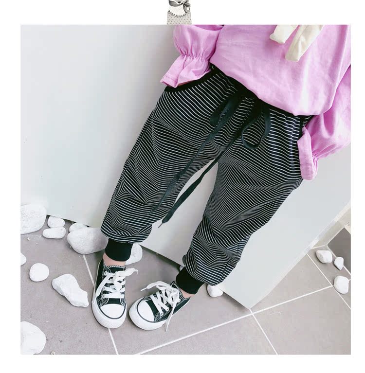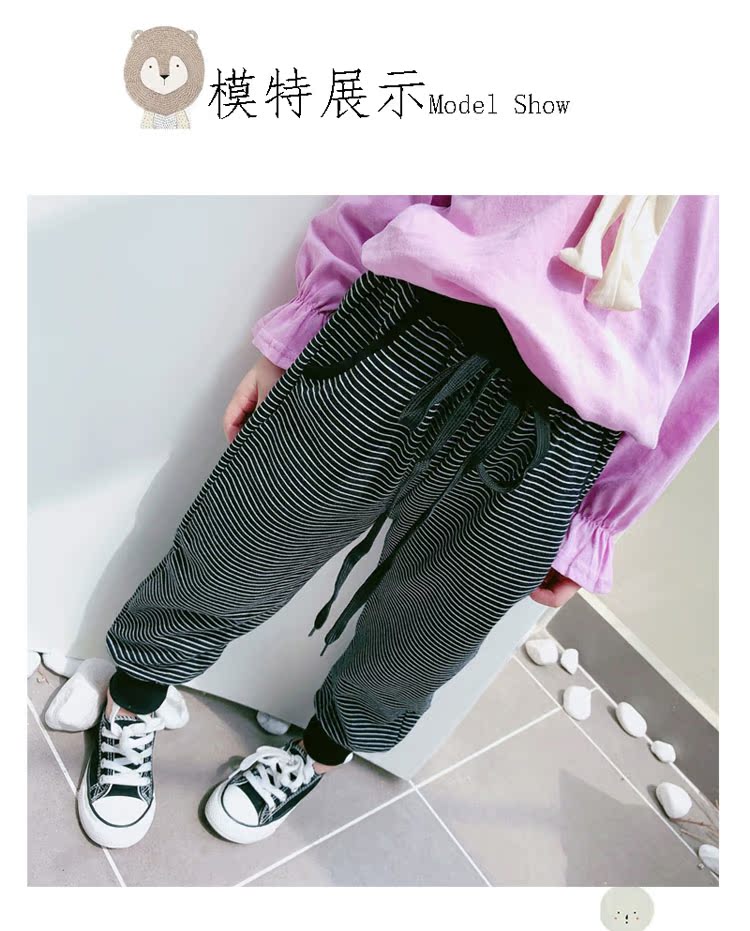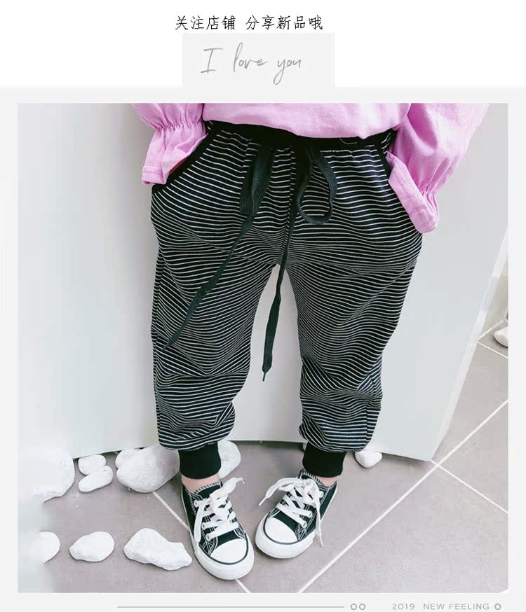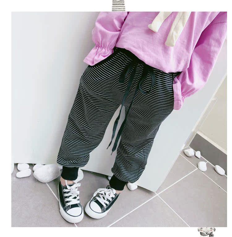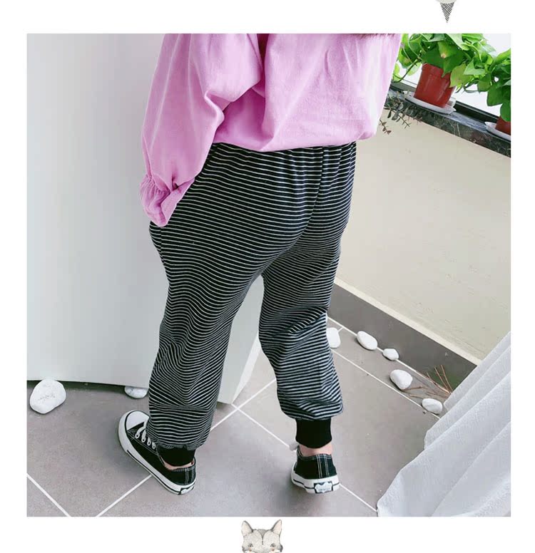 2019春秋季男女童寶寶條紋休閑褲 中小童寬松舒適兒童束腳蘿卜褲1入