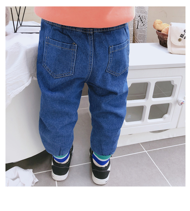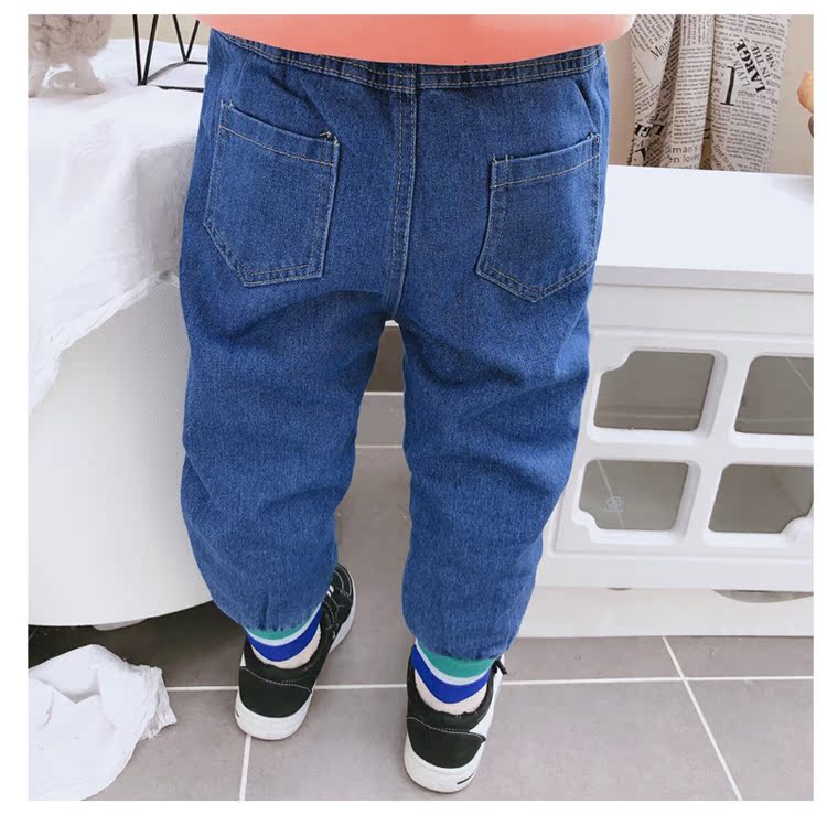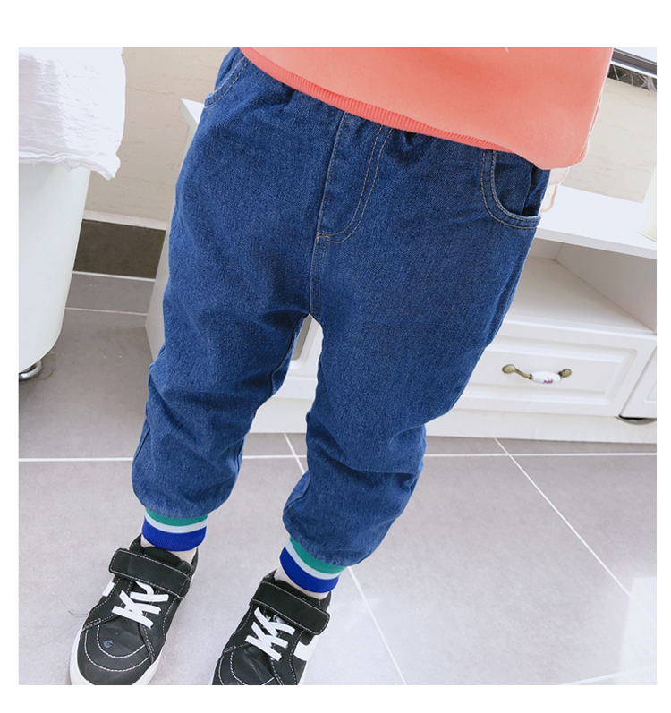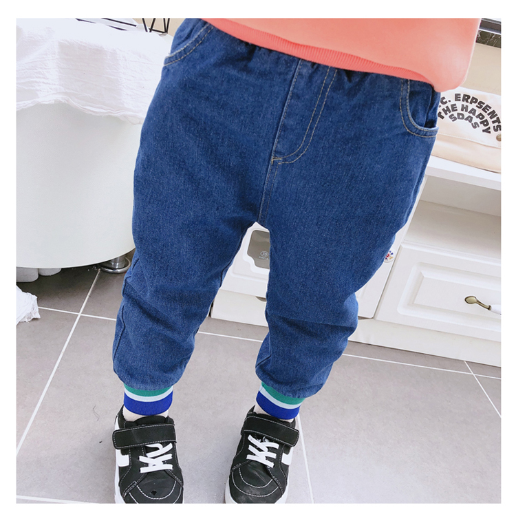 2019冬季新款 中小童個性拼接束口休閑褲 男女童寬松加厚牛仔褲1入