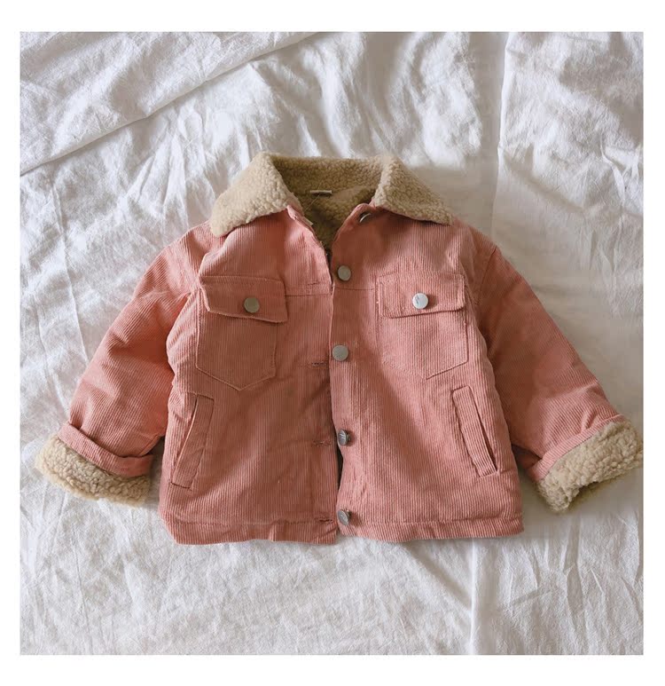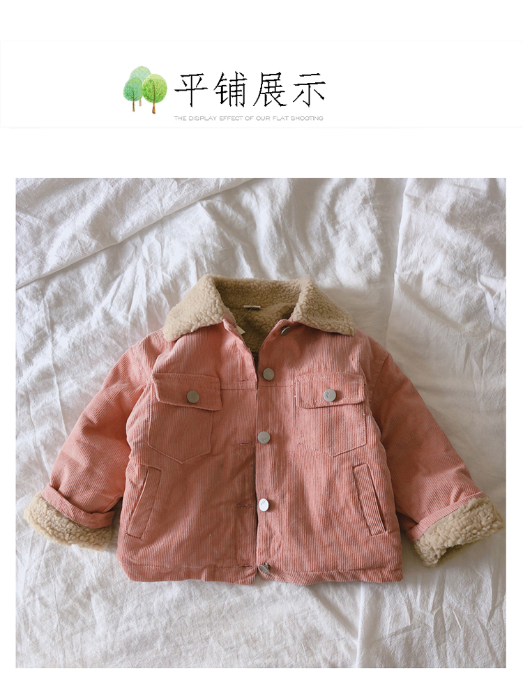 2019冬季新款 中小童舒適可愛毛絨翻領上衣 女童加絨加厚保暖外套1入