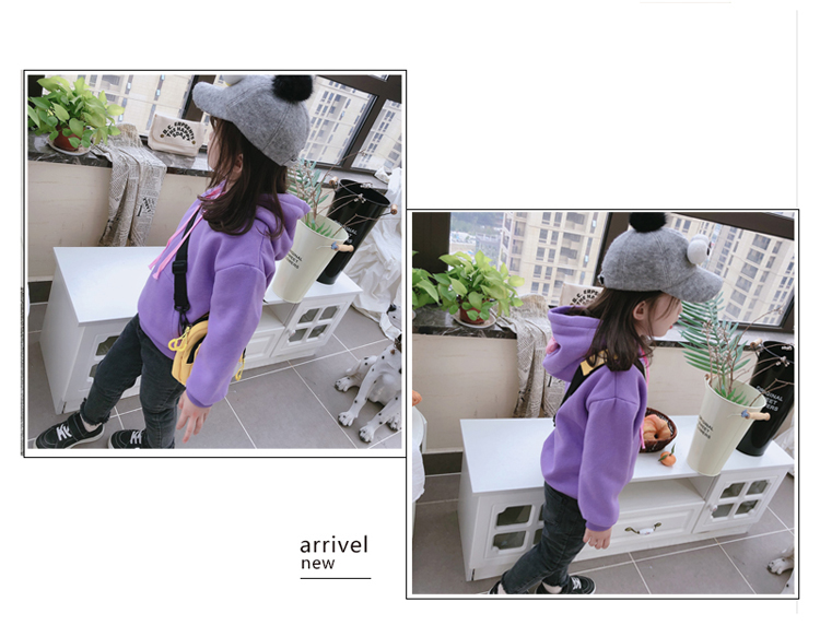2019冬季新款 中小童俏皮可愛卡通連帽衛衣 男女童保暖加厚上衣1入