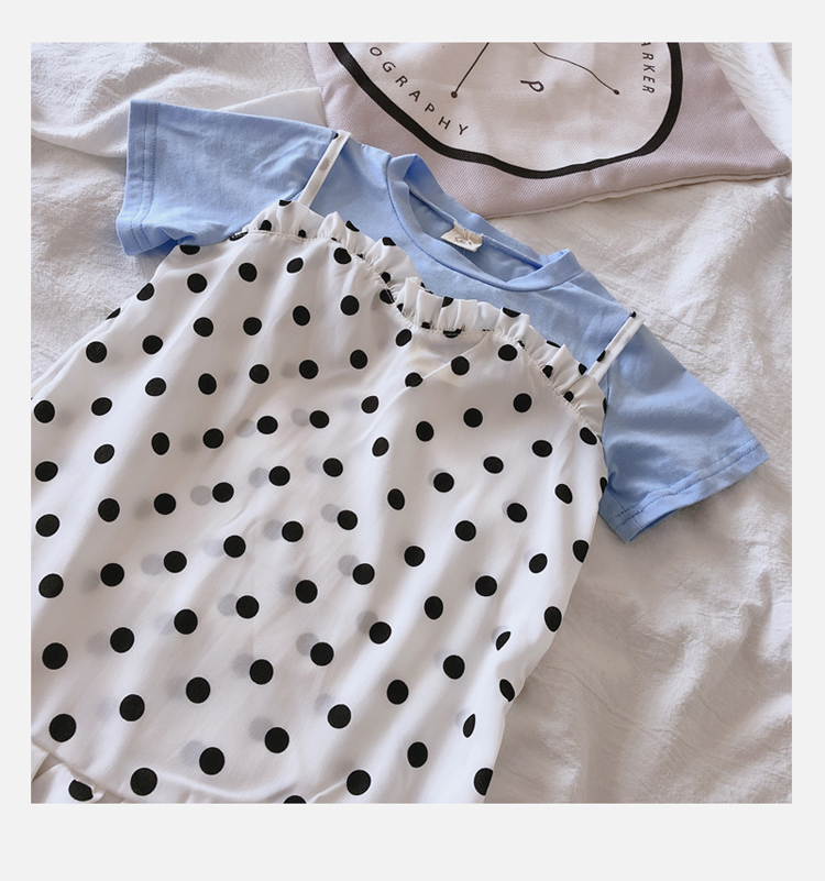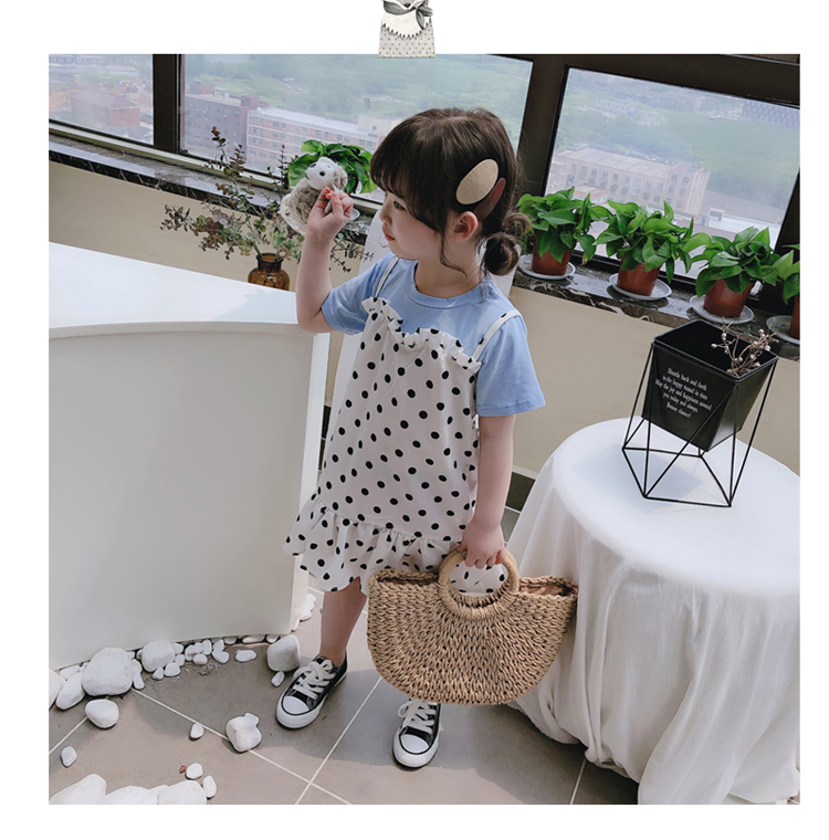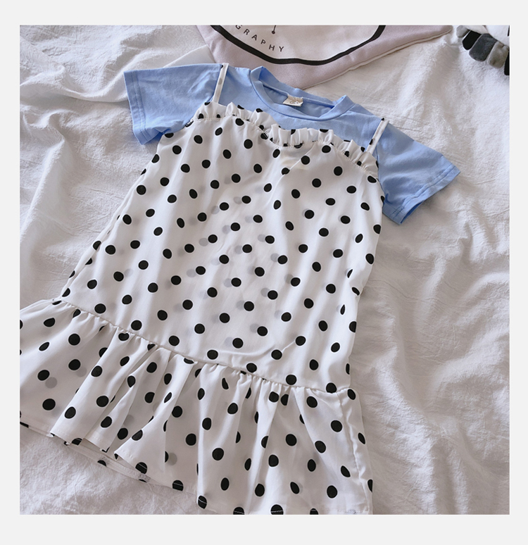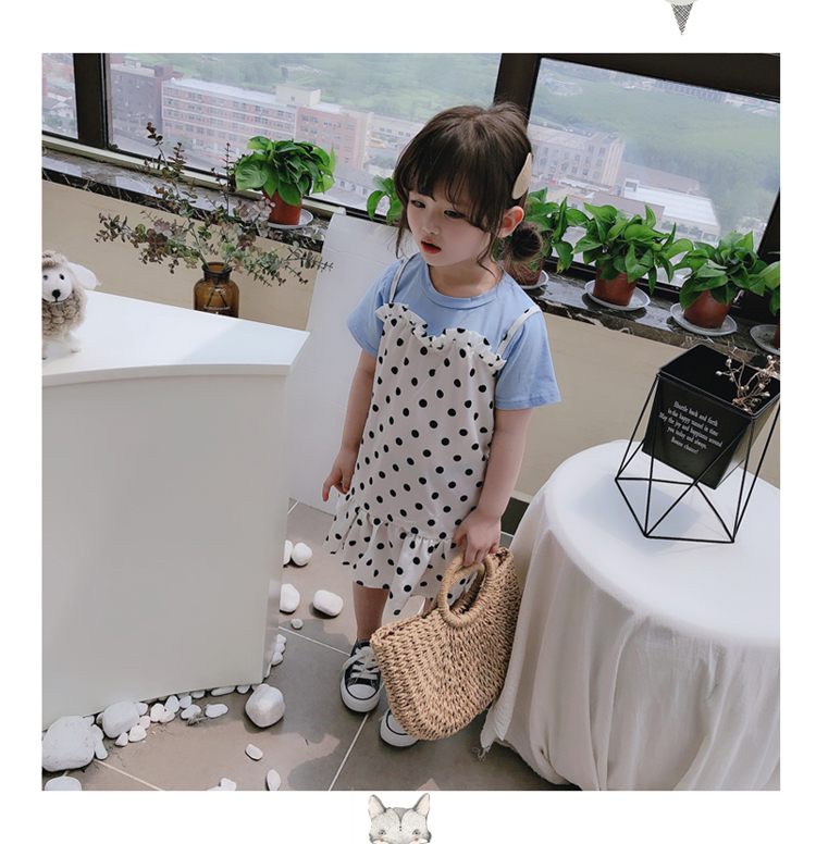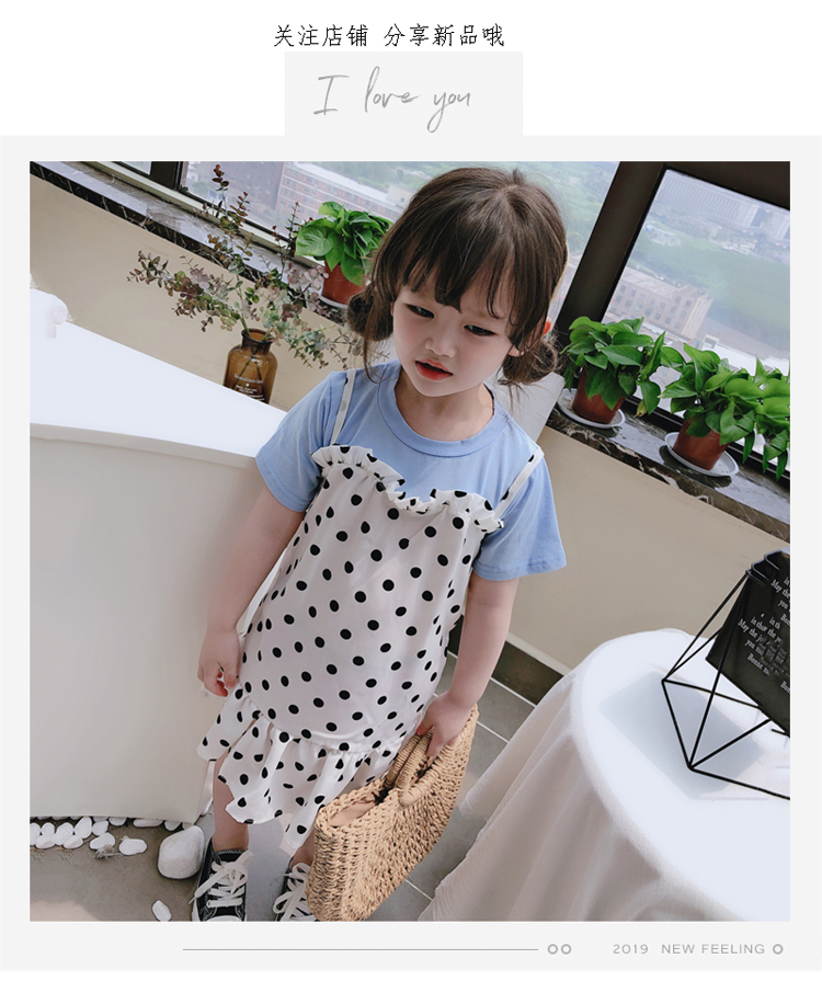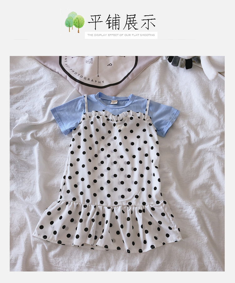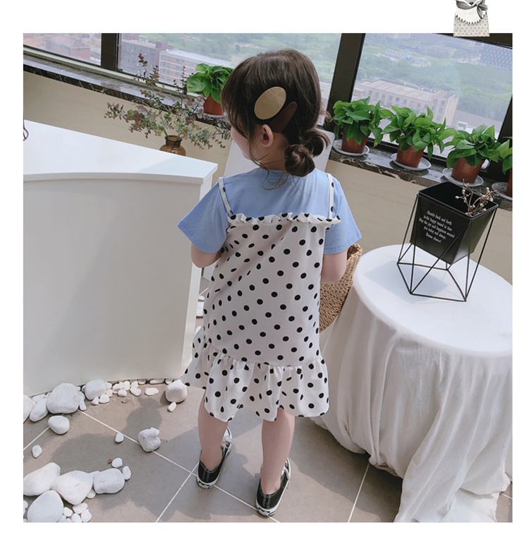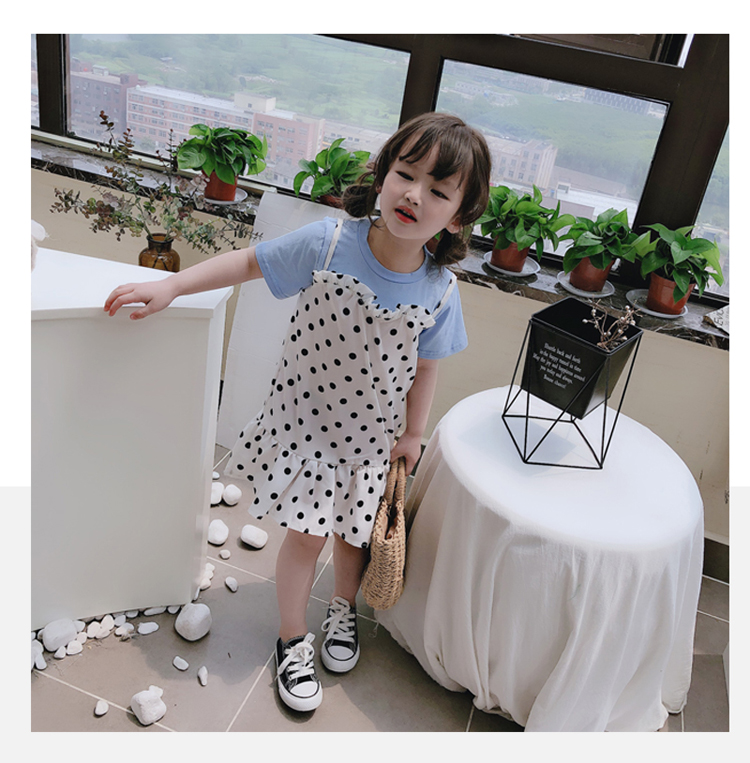 2019夏季新款 女童寶寶潮流個性假兩件裙子 中小童兒童舒適連衣裙1入