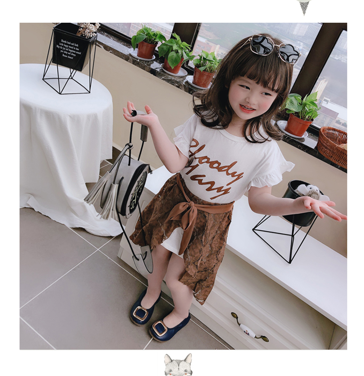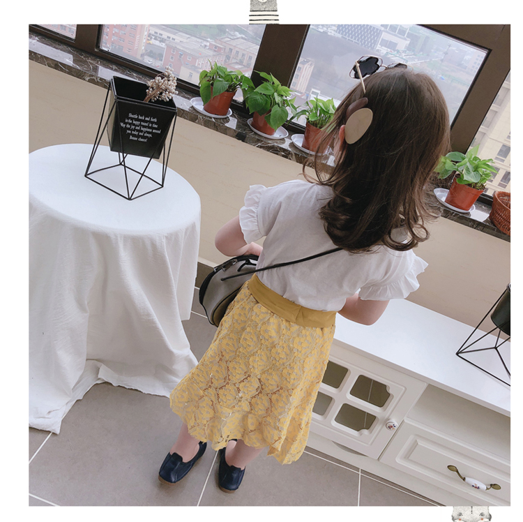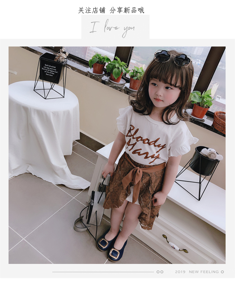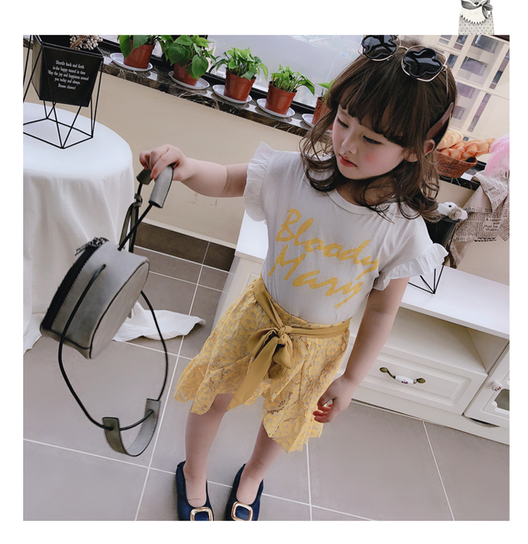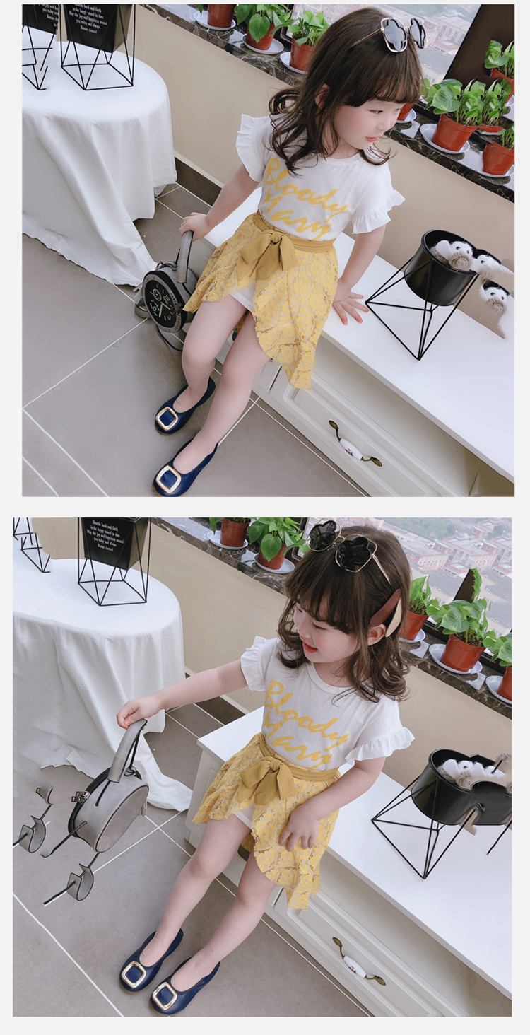 2019童裝夏裝新款休閑套裝 女寶寶時尚T恤+蕾絲系帶半身裙兩件套1入