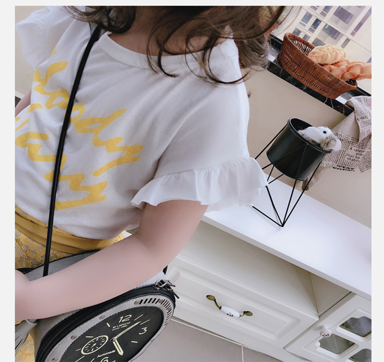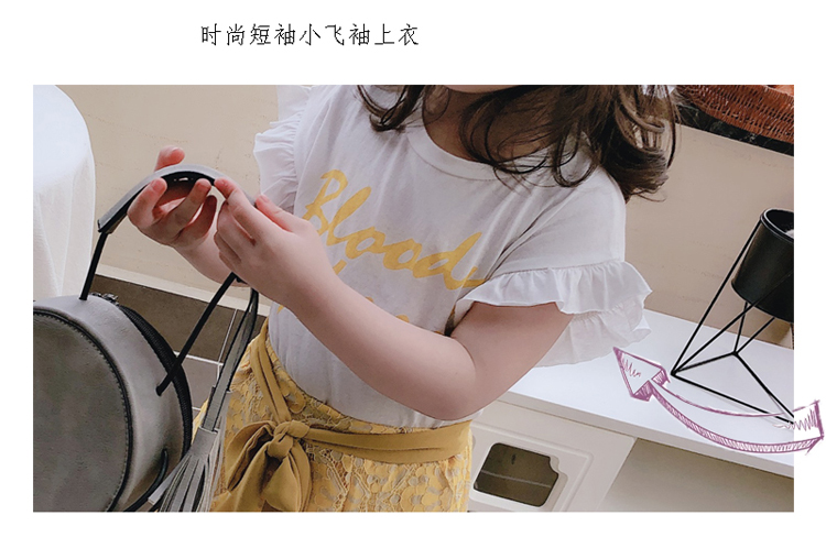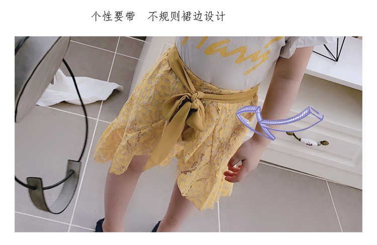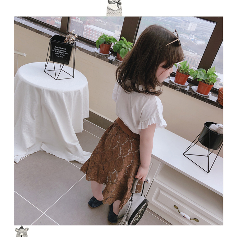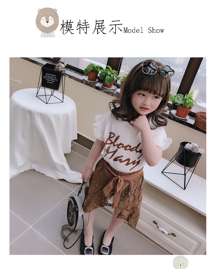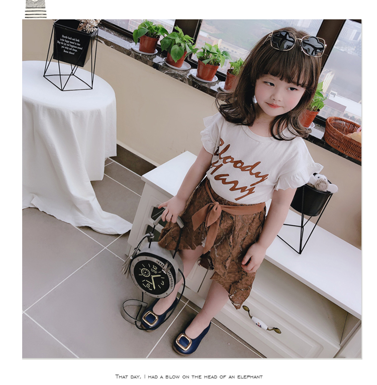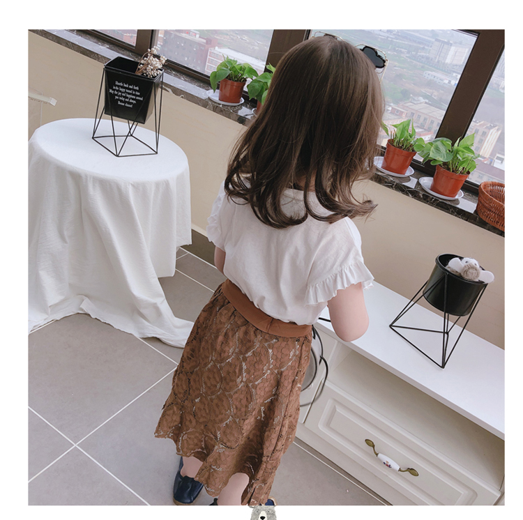 2019童裝夏裝新款休閑套裝 女寶寶時尚T恤+蕾絲系帶半身裙兩件套1入