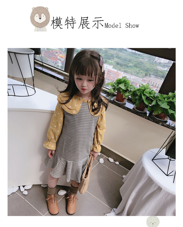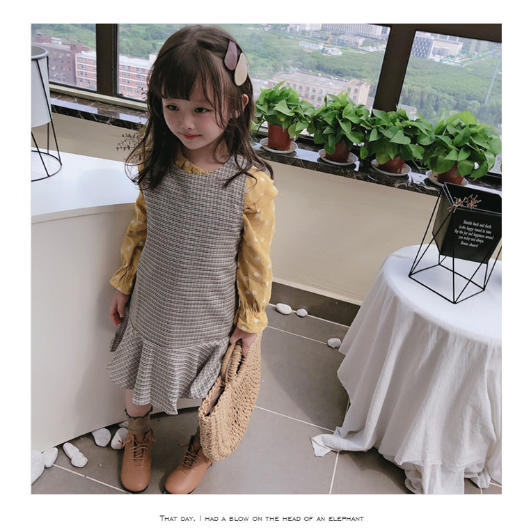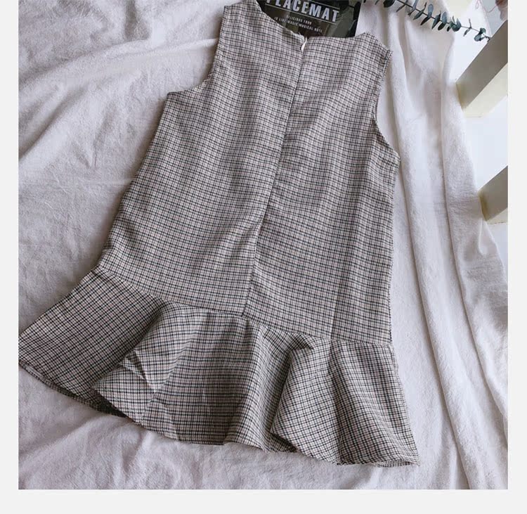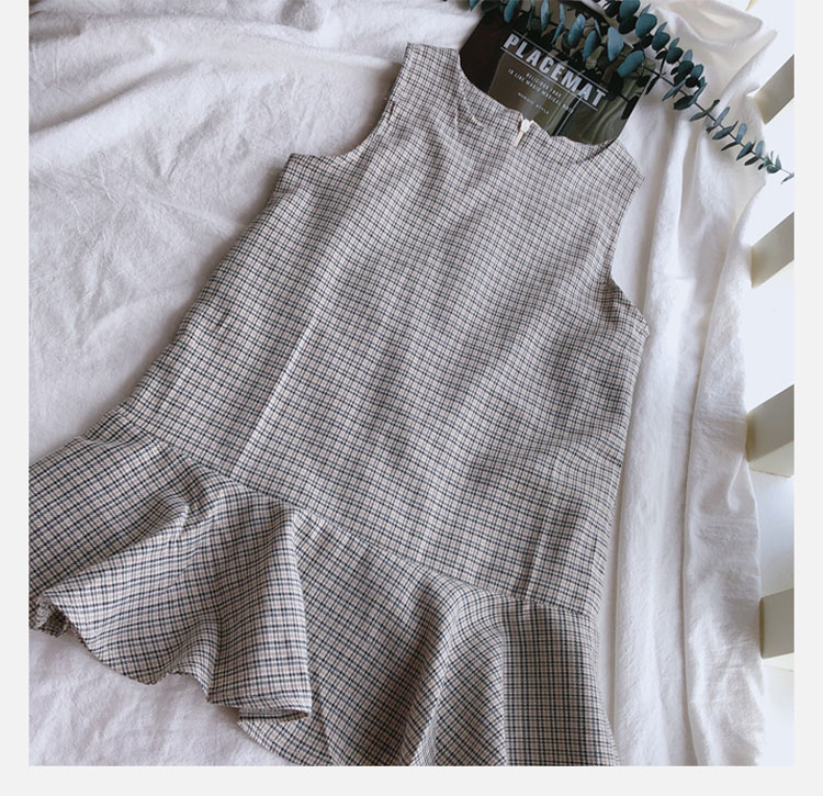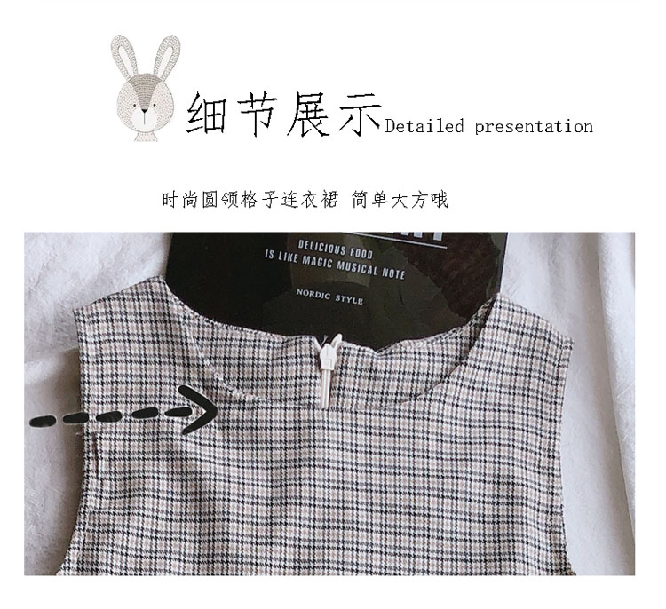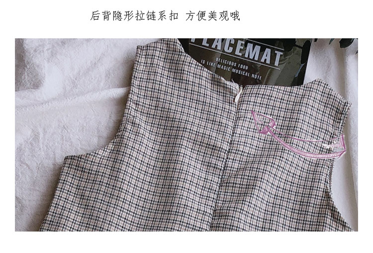 2019秋季新款 中小童氣質連衣裙 女童寶寶圓領千鳥格無袖背心裙1入