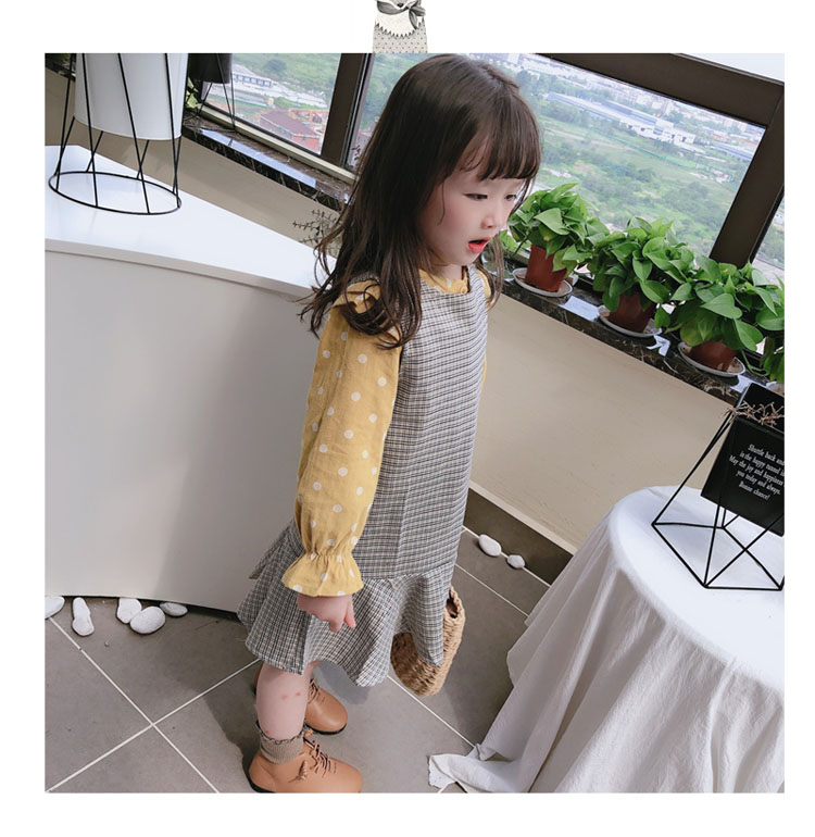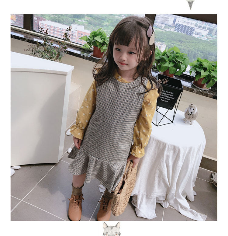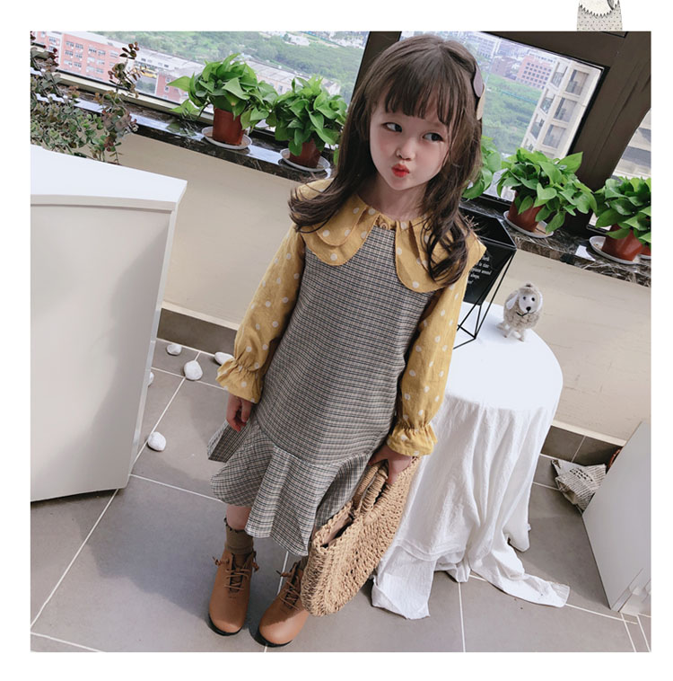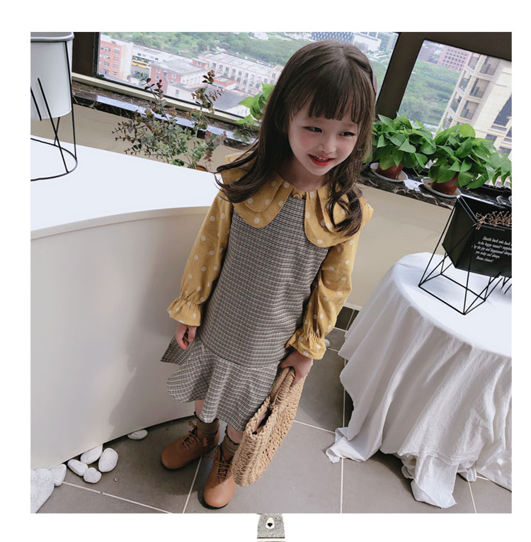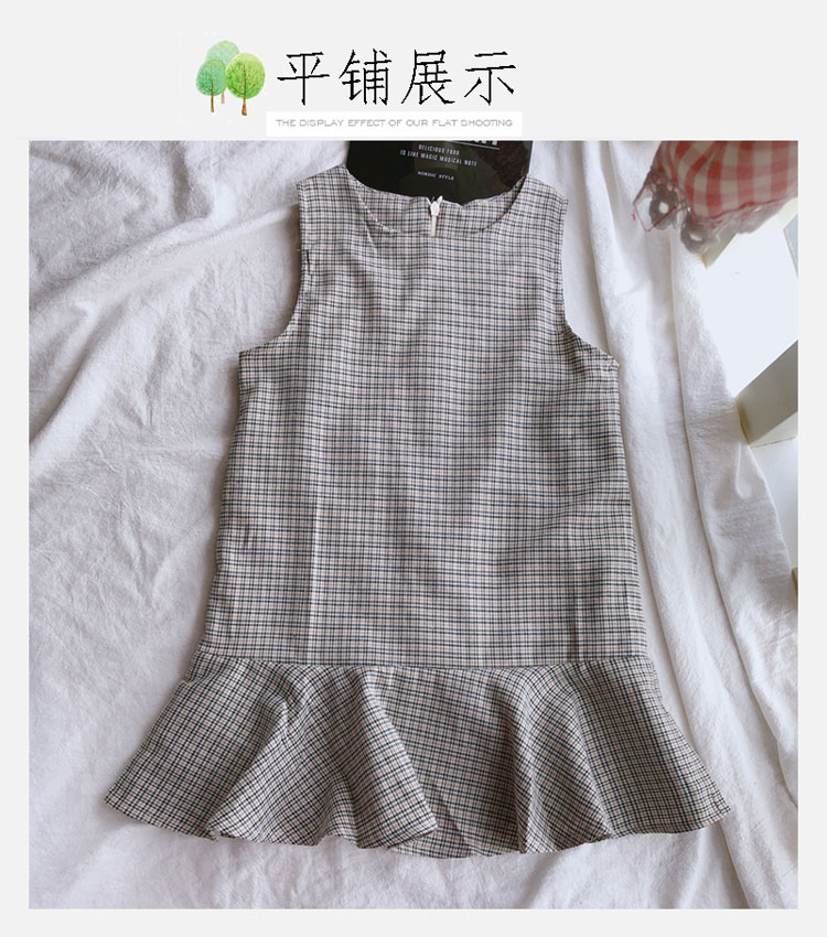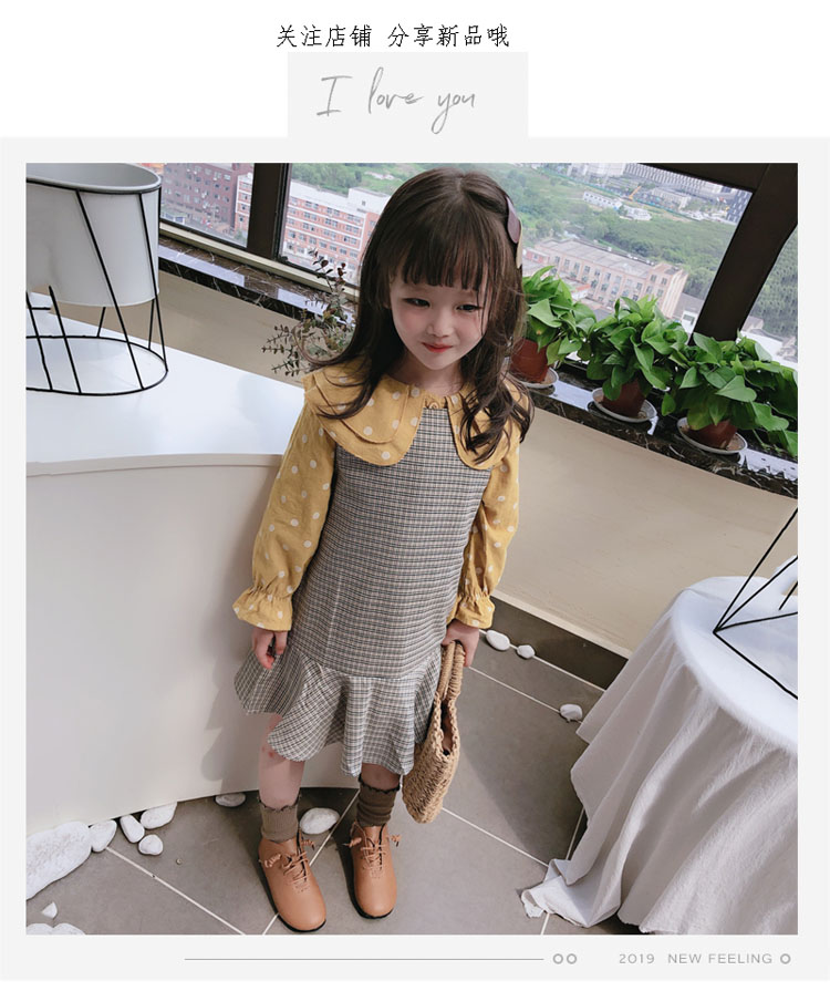 2019秋季新款 中小童氣質連衣裙 女童寶寶圓領千鳥格無袖背心裙1入