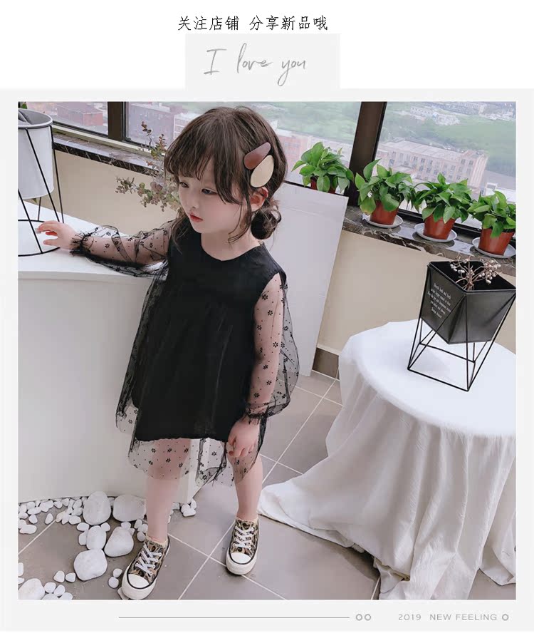 2019夏季新款 女童寶寶甜美蕾絲連衣裙 中小童網紗拼接款公主裙1入