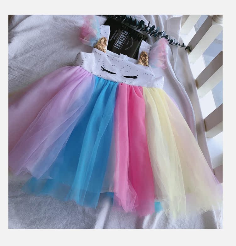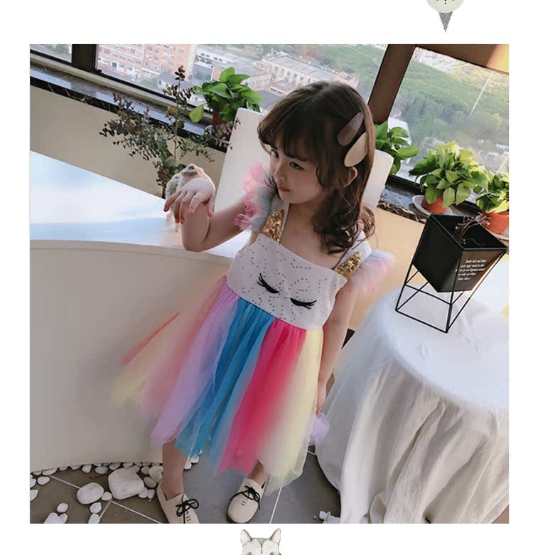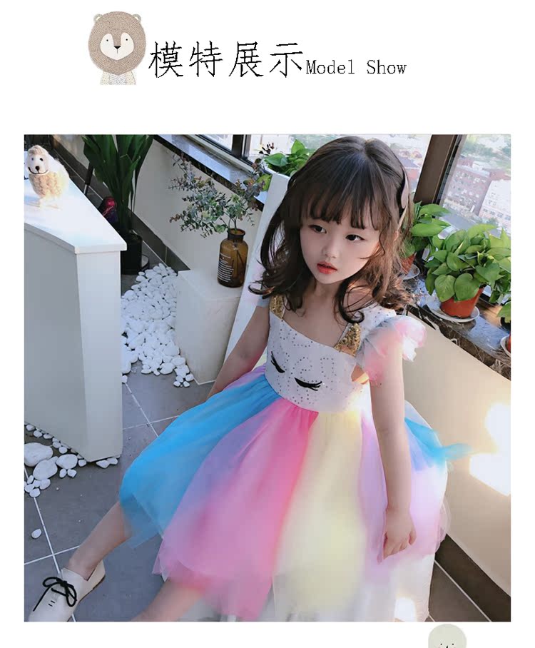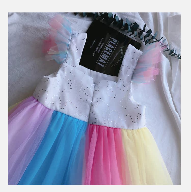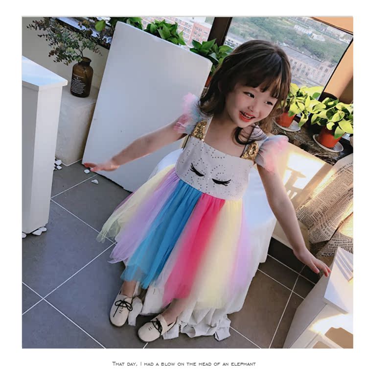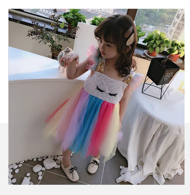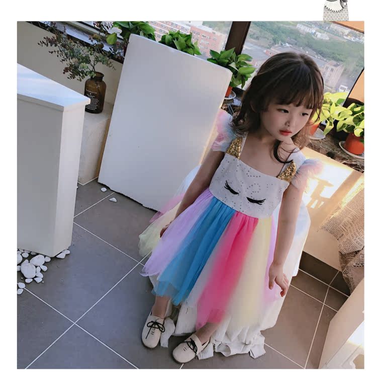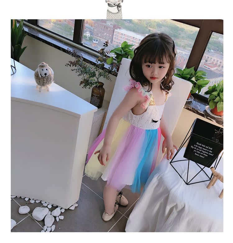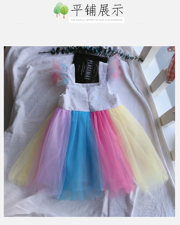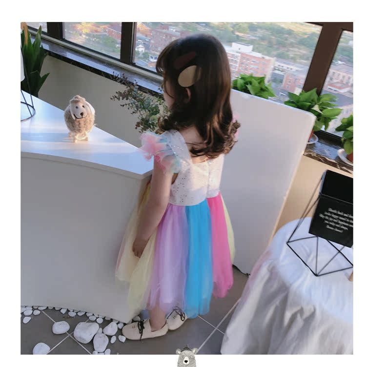 2019童裝夏季新款 女童寶寶七彩拼接連衣裙 中小童個性洋氣裙子1入